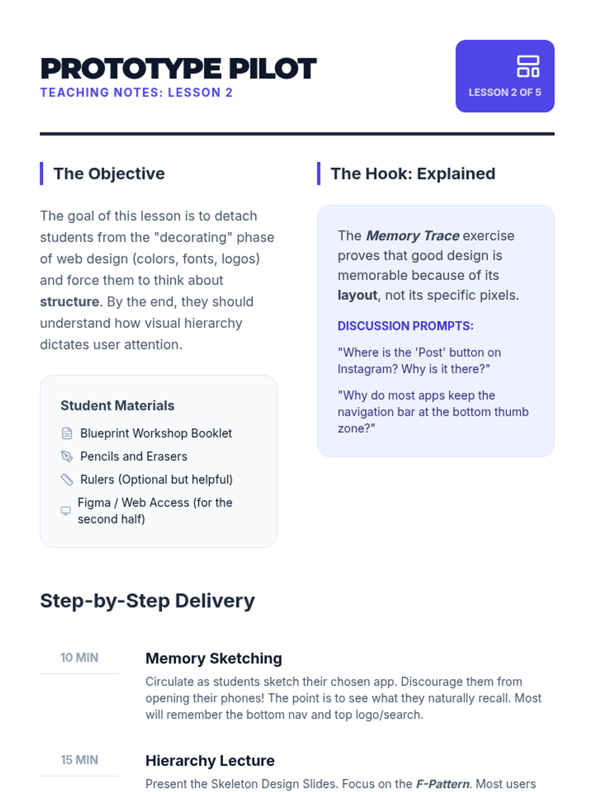 A comprehensive project-based learning unit where high school students apply design thinking to solve real-world problems, from initial discovery to final prototyping and pitching.