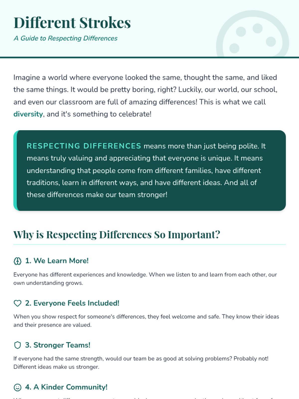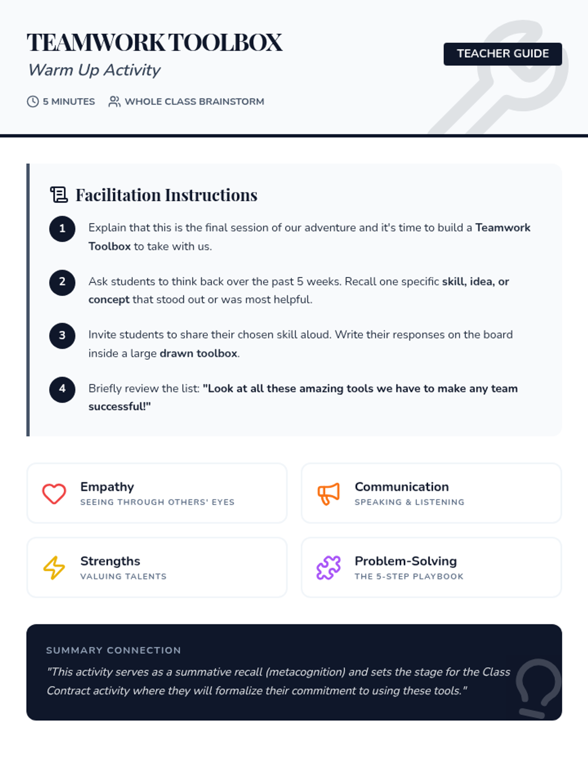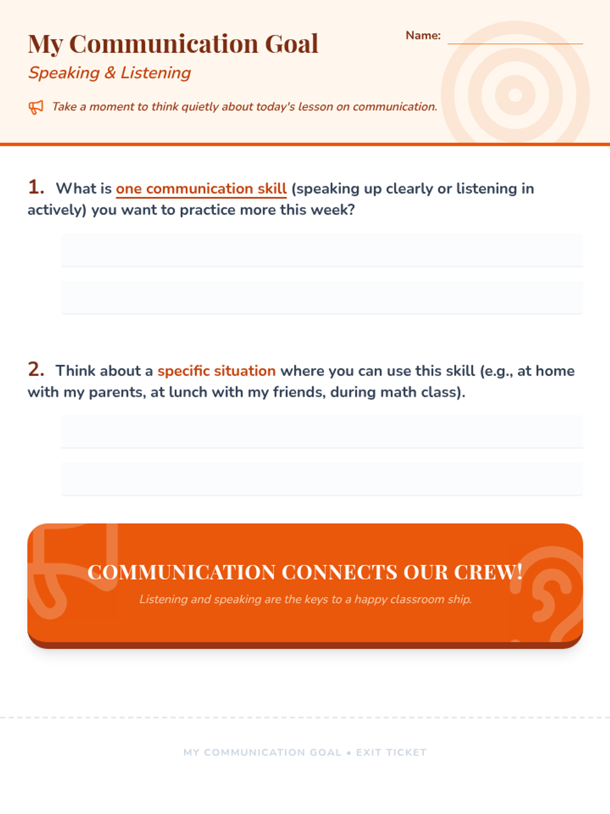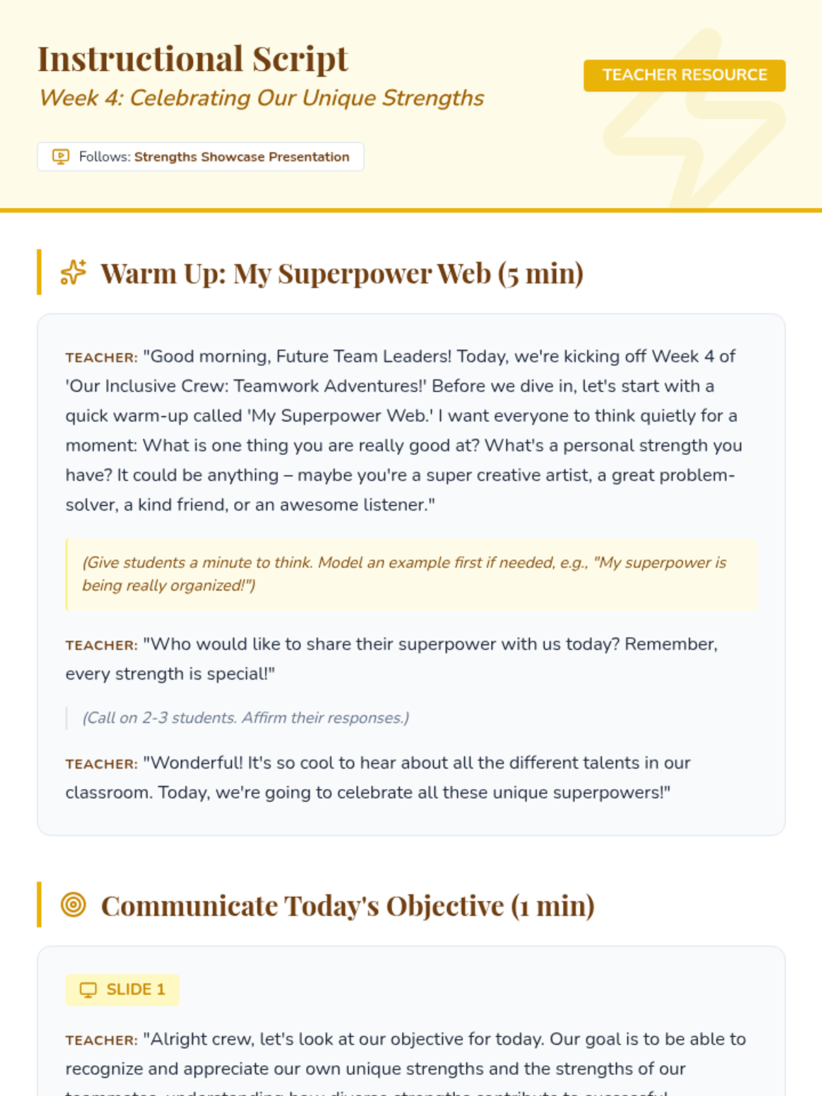 A 6-week social-emotional learning sequence for 4th graders focused on inclusion, communication, and collaborative teamwork. Students explore empathy, diversity, and problem-solving to build a supportive classroom 'crew'.