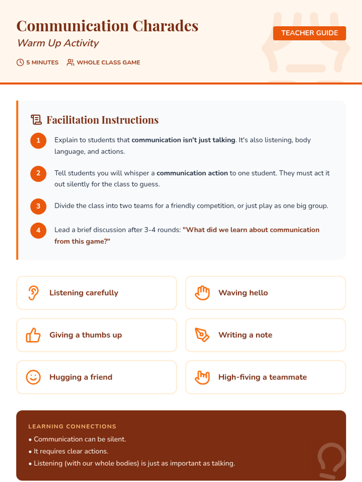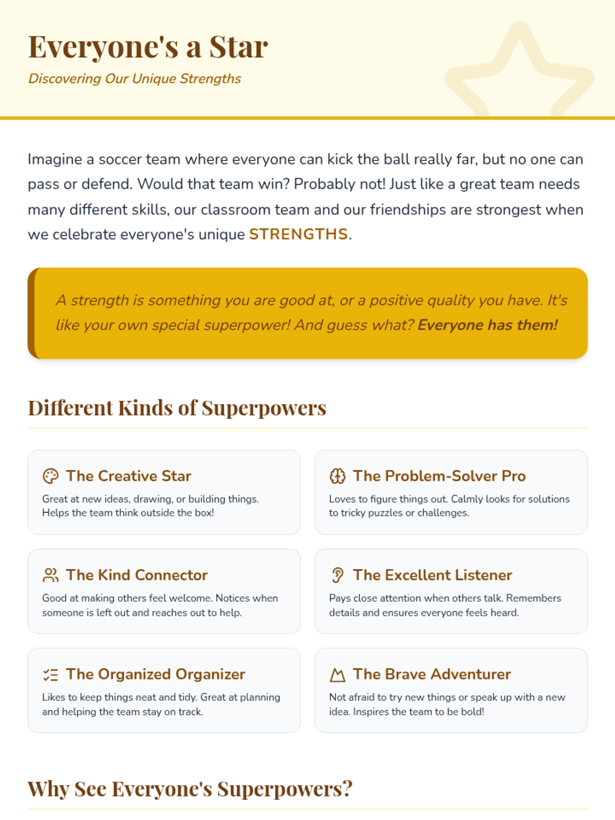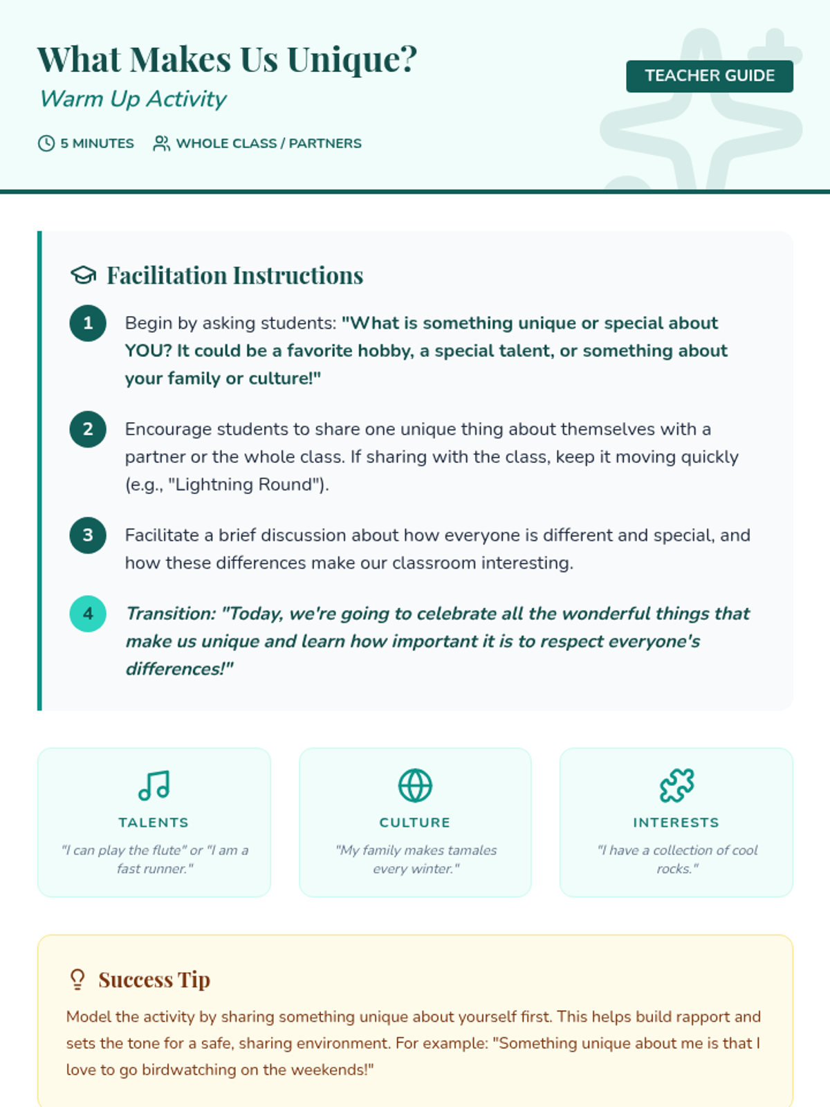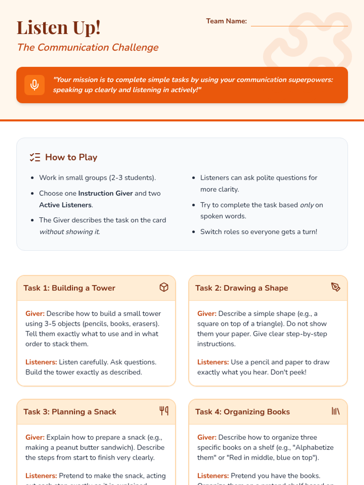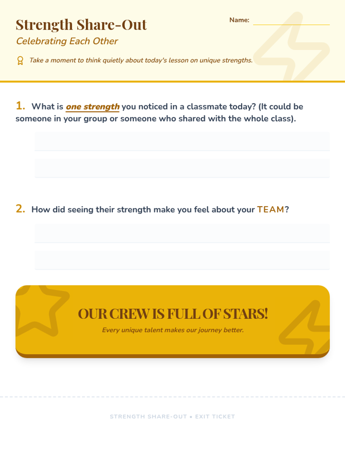 A 6-week social-emotional learning sequence for 4th graders focused on inclusion, communication, and collaborative teamwork. Students explore empathy, diversity, and problem-solving to build a supportive classroom 'crew'.