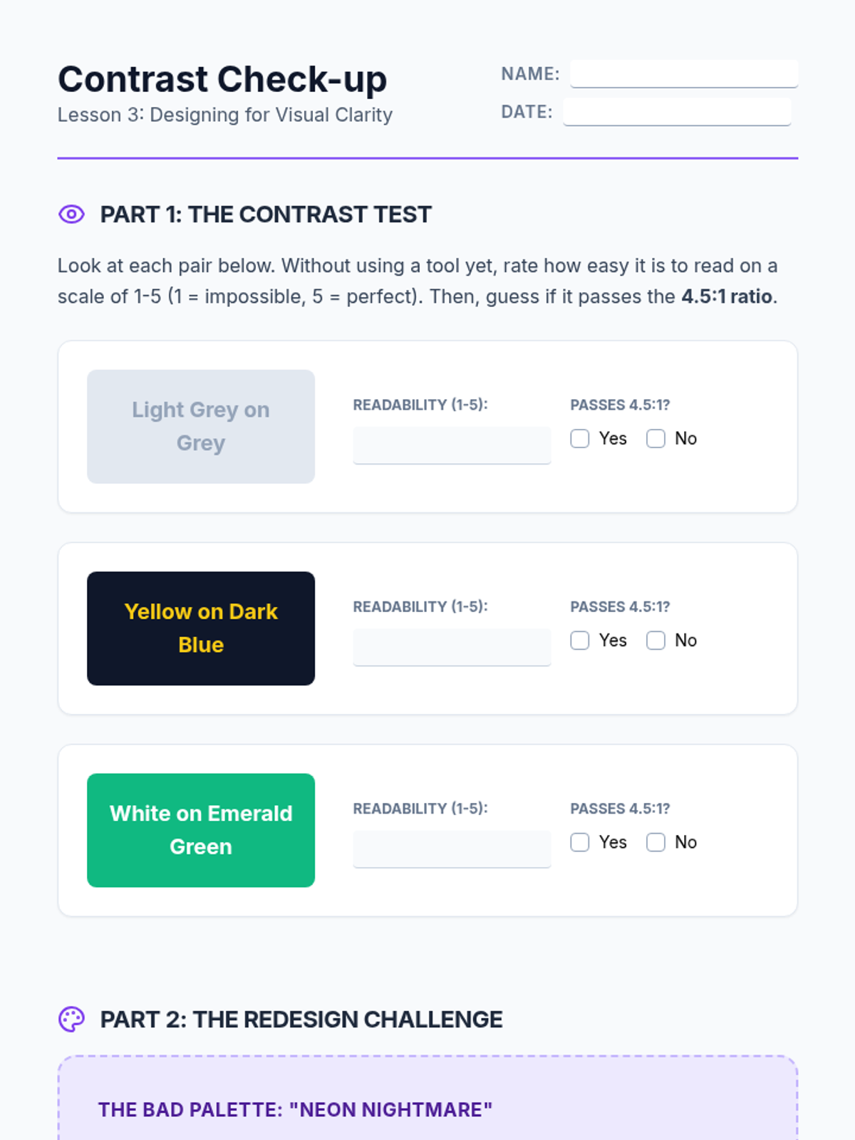 This sequence shifts focus from writing code to designing for human needs through User Experience (UX) and User Interface (UI) principles. Students adopt the role of UX researchers, analyzing existing sites for usability and accessibility failures before they write a single line of code.