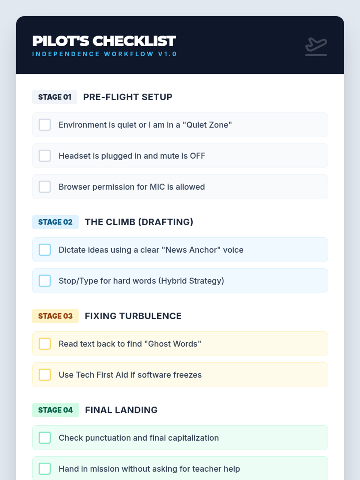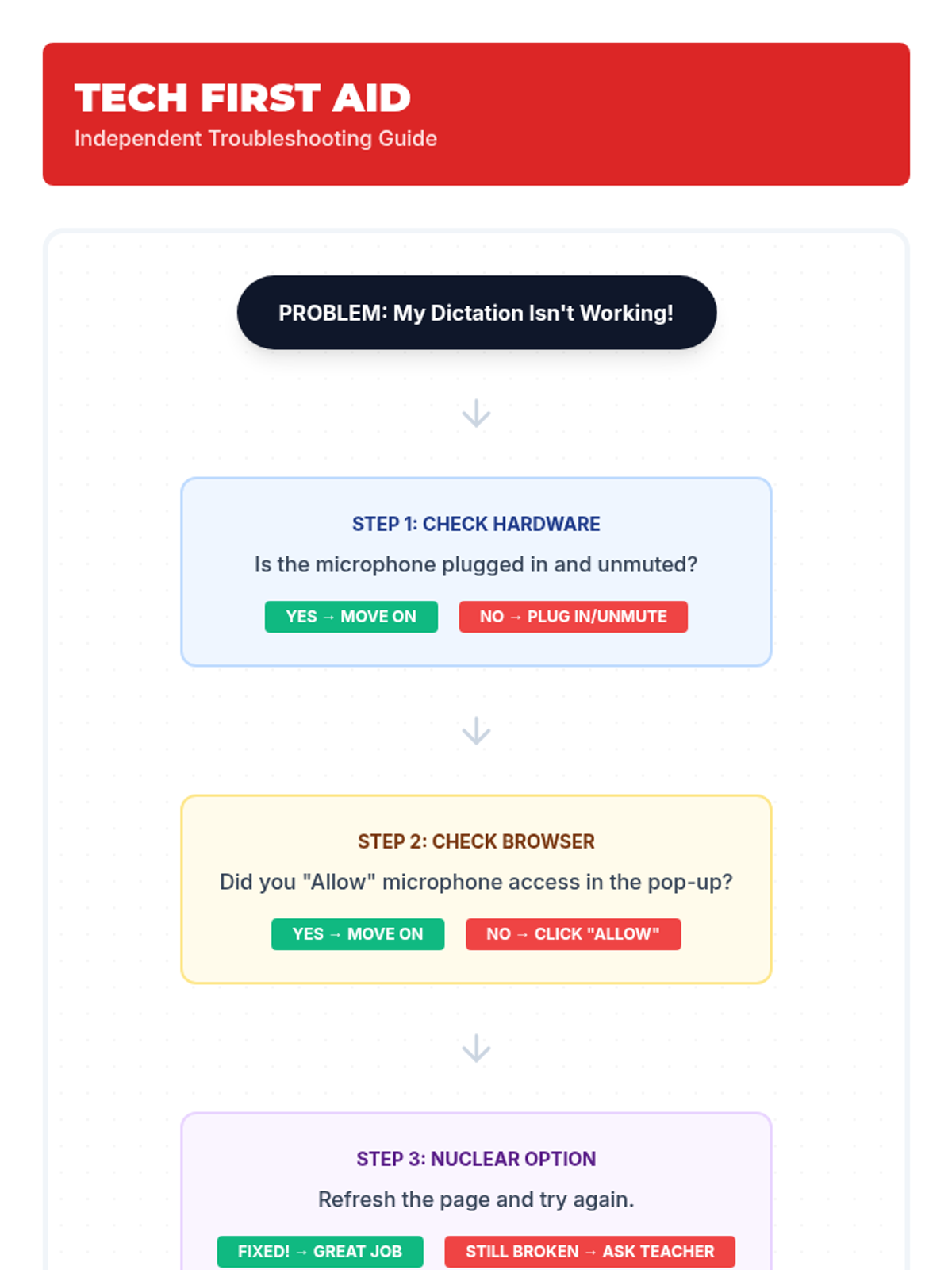 This sequence develops independence and troubleshooting skills for students using dictation software. Students learn to optimize their environment, solve technical glitches, handle complex vocabulary, and internalize a complete independent workflow.
