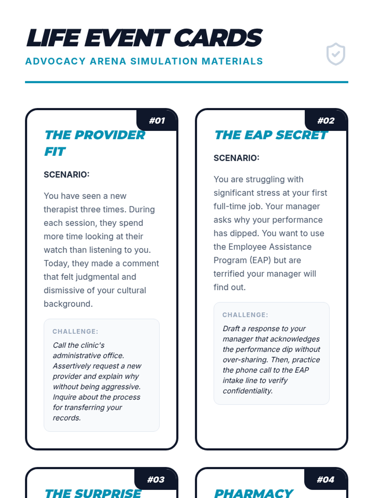 This sequence prepares graduating seniors for the transition to independent healthcare management. Students learn to navigate HIPAA, insurance, patient rights, and assertive communication in medical settings.