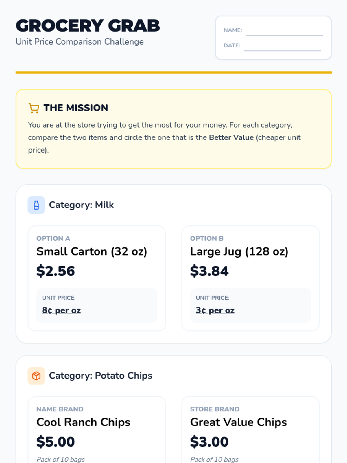 A series of functional math lessons focusing on essential life skills for independent living, starting with the Next Dollar Up method for purchasing items.
