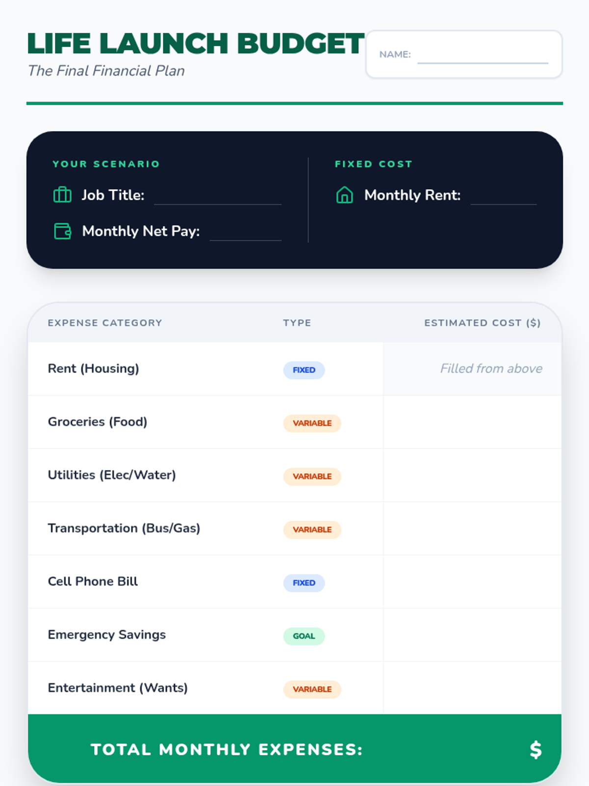 A comprehensive financial literacy sequence for Special Education students focusing on real-world budgeting, income analysis, and banking skills for independent living.