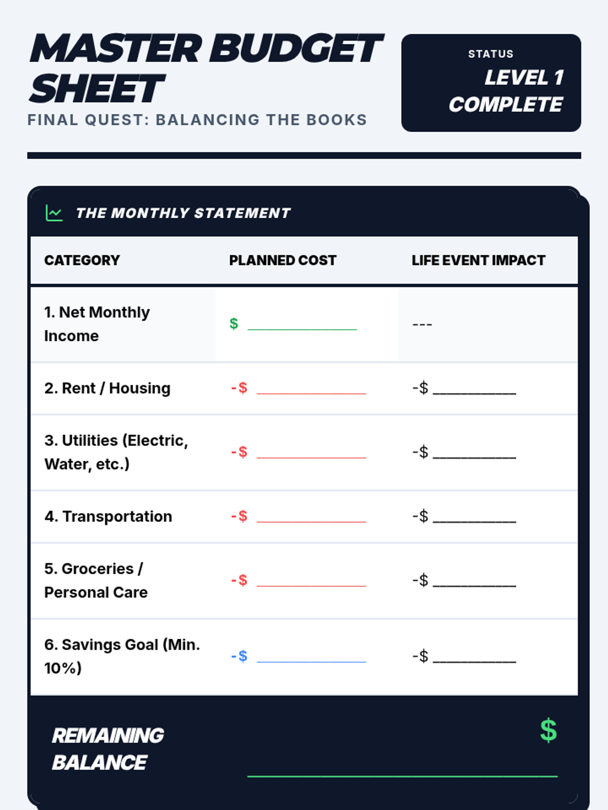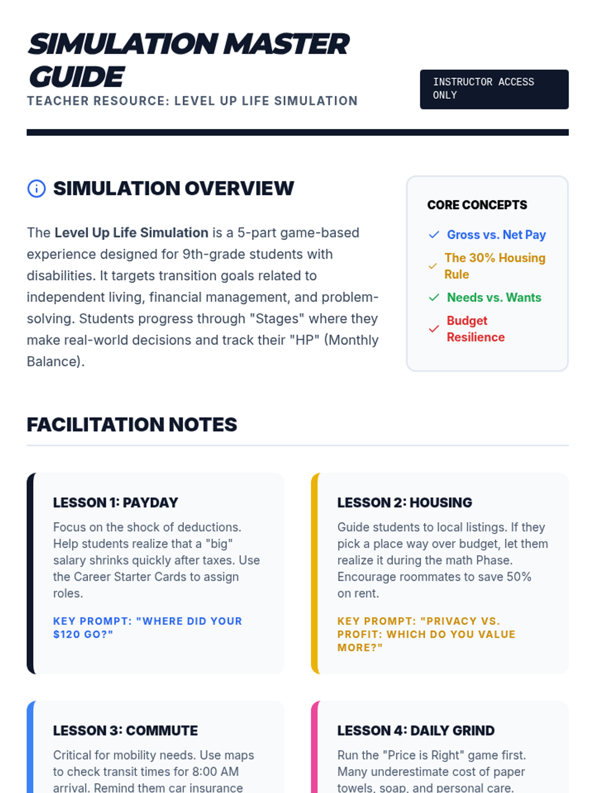 A game-based transition planning simulation where 9th-grade students manage a monthly budget, navigate adult responsibilities, and make decisions about housing, transportation, and daily living. This sequence integrates financial literacy with practical life skills tailored for students with disabilities.