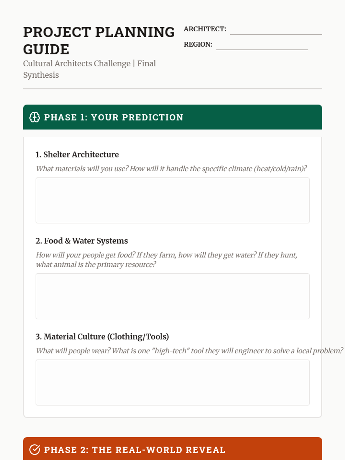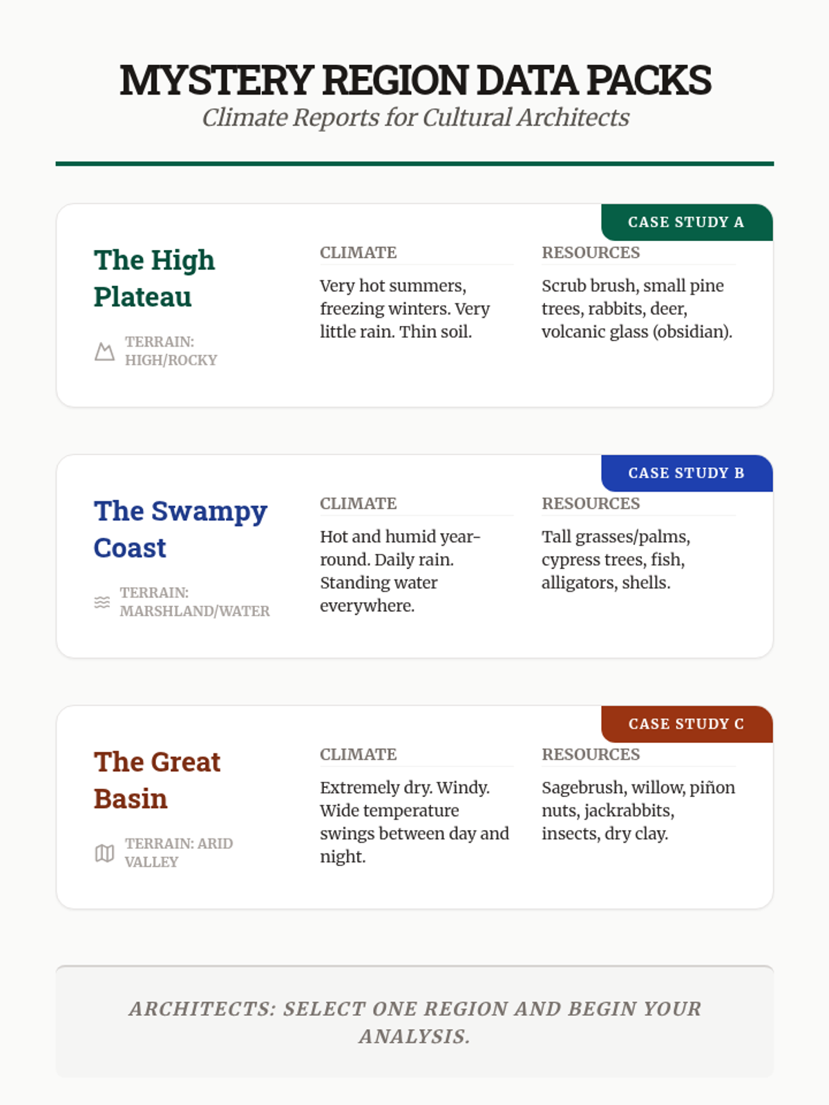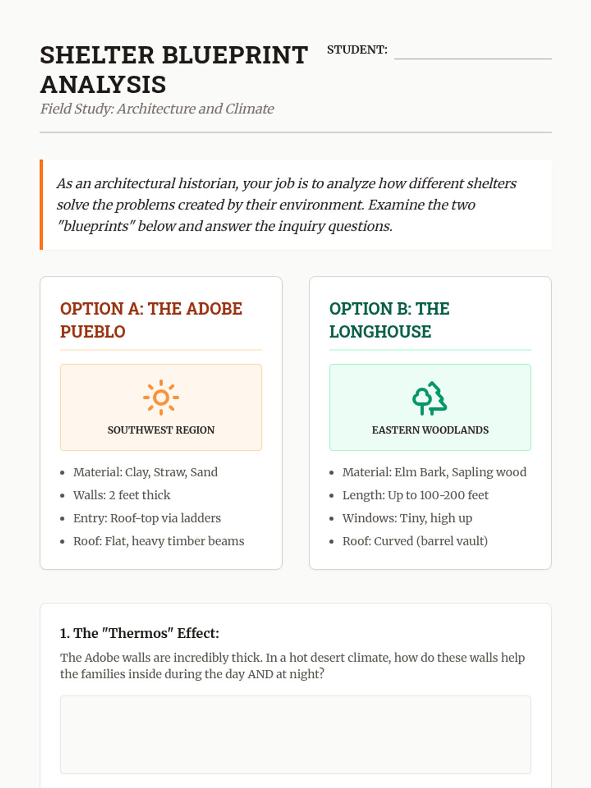 A 5th-grade inquiry-based unit exploring how the diverse physical environments of North America shaped the cultures, technologies, and lifestyles of Indigenous nations. Students analyze geography, resource utilization, and engineering to understand the relationship between humans and their environment.