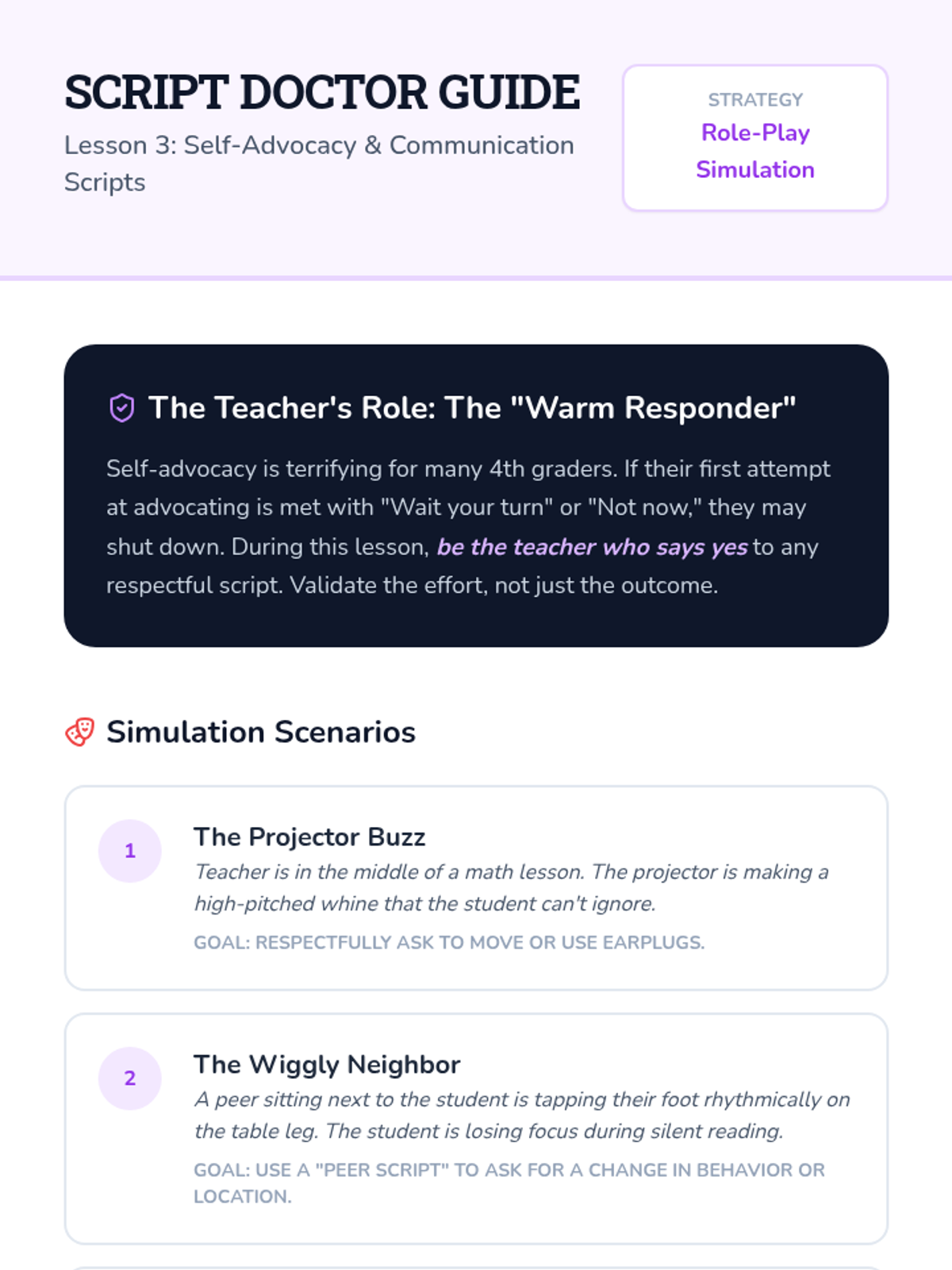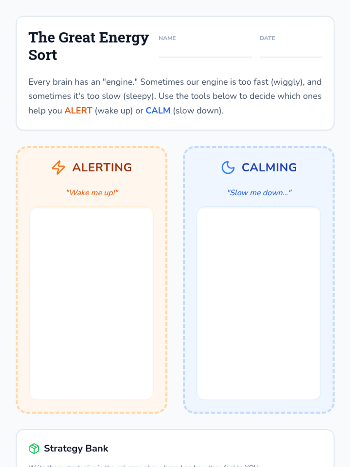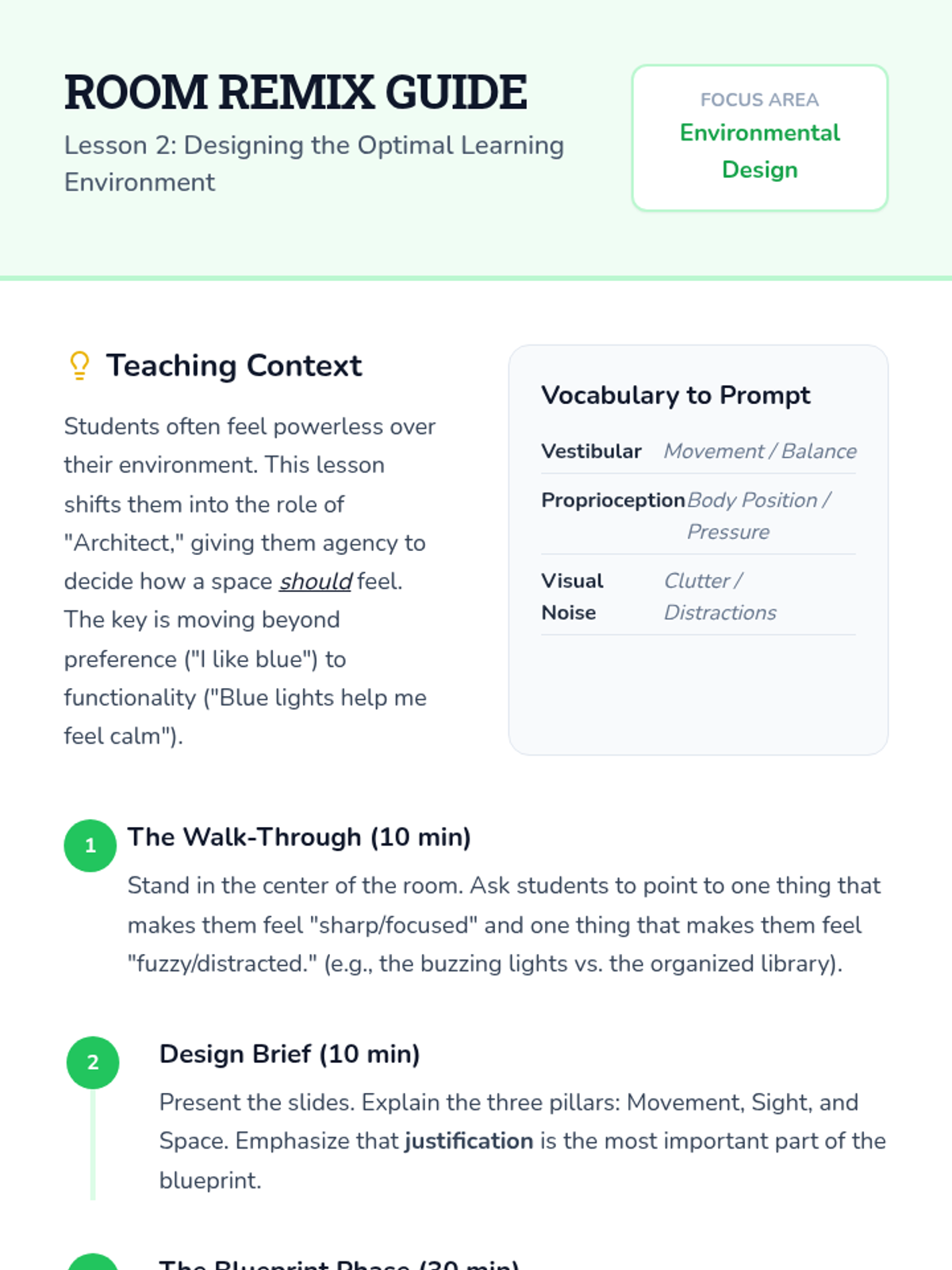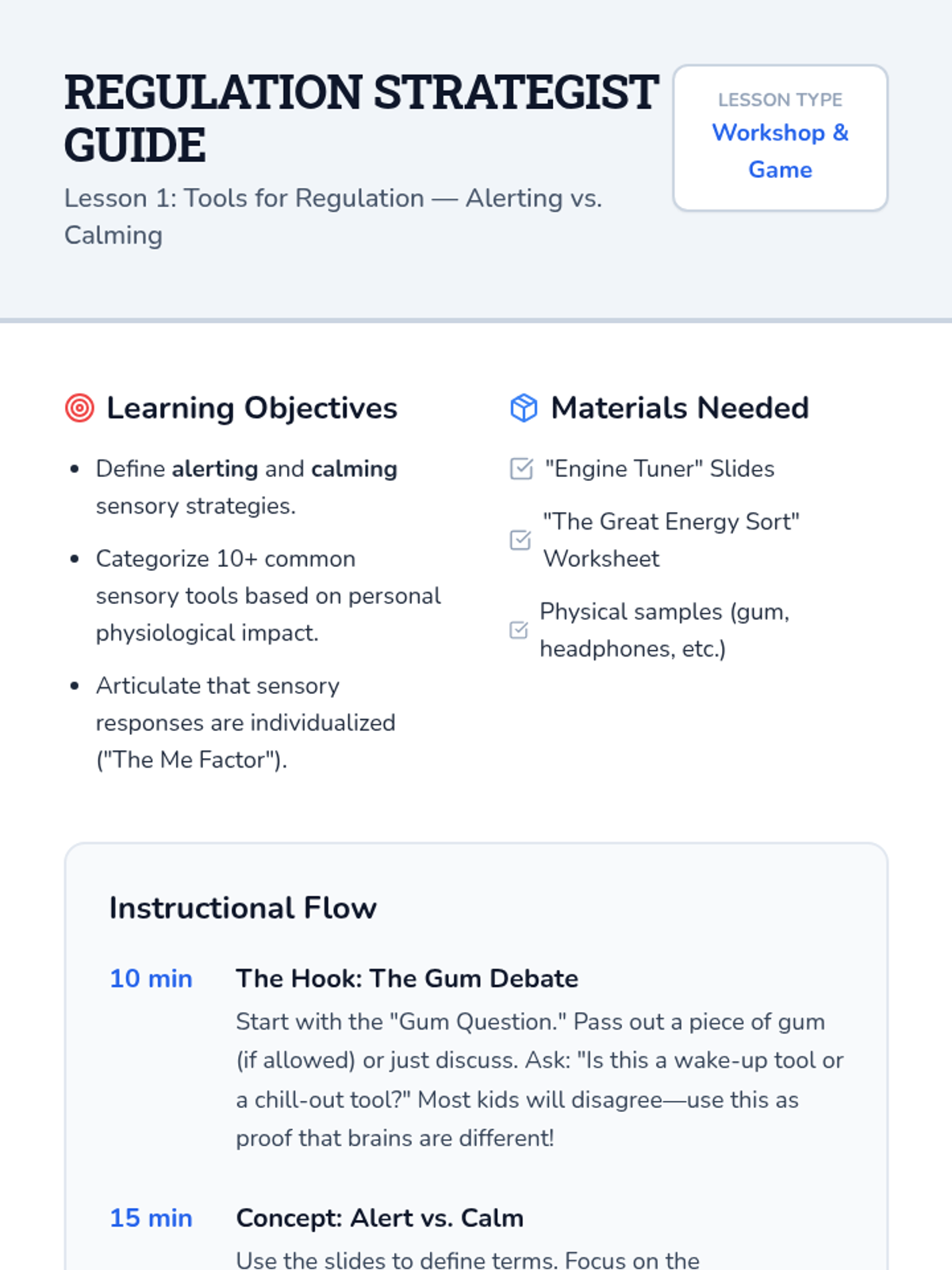 This project-based sequence empowers 4th-grade students to identify their sensory preferences and create actionable self-regulation strategies. Students transition from sensory awareness to self-advocacy, culminating in the creation of a 'Sensory Passport' to communicate their needs to others.