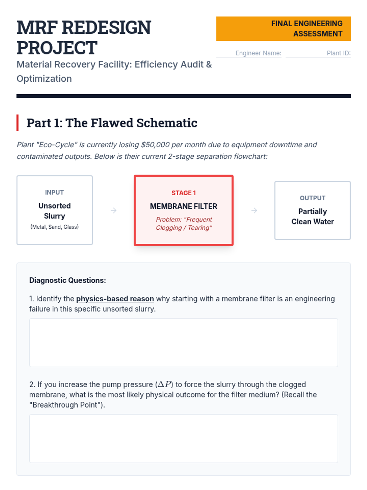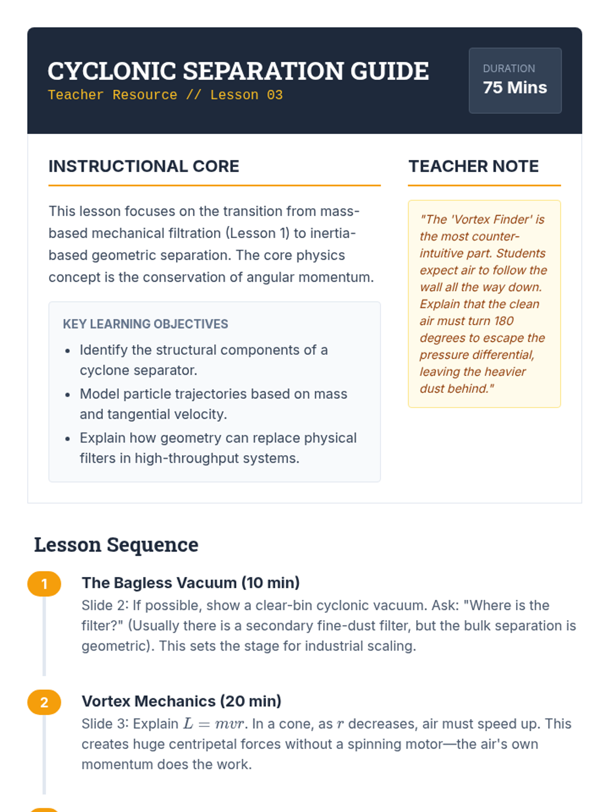 A high-level physics and engineering sequence focusing on the industrial mechanics of separating heterogeneous mixtures. Students analyze filtration, centrifugation, cyclonic separation, and energy efficiency through case studies and process optimization.
