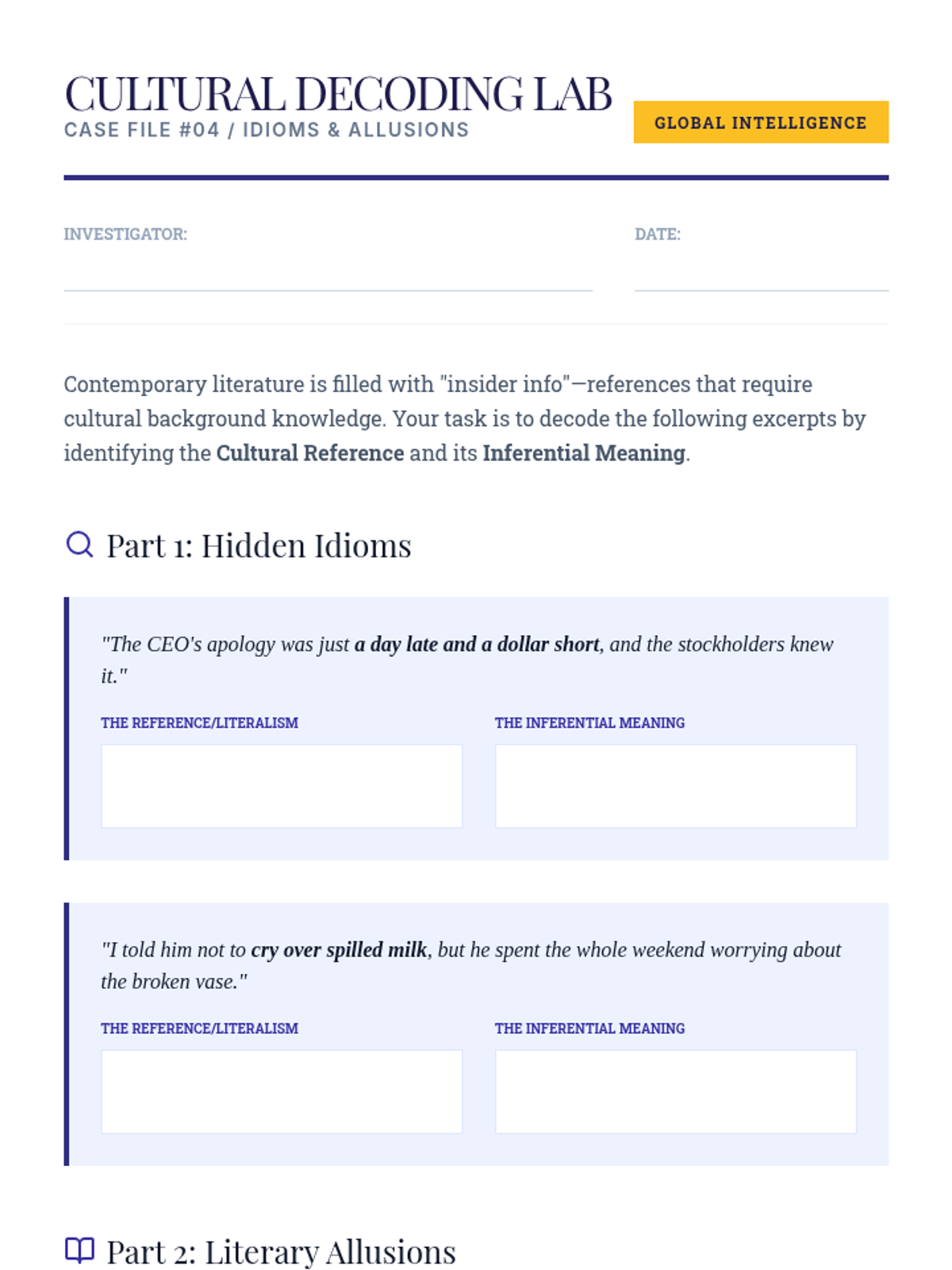 A comprehensive unit for undergraduate ESL/EFL students focusing on deep inferential comprehension in contemporary fiction, moving from basic logical deductions to complex analysis of subtext and cultural context.