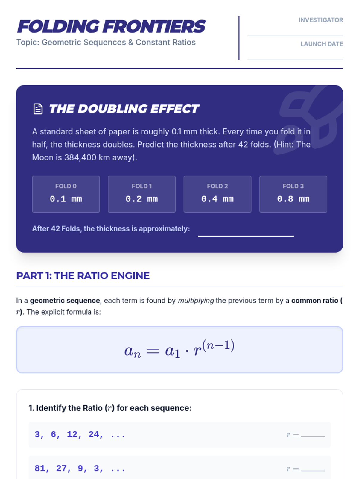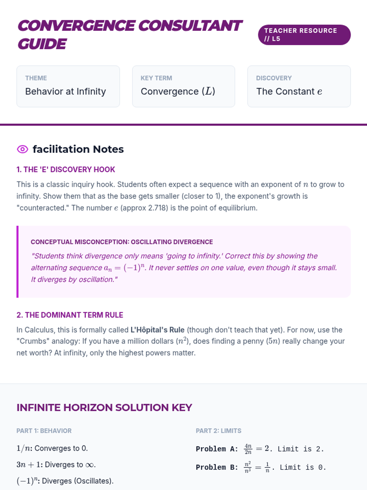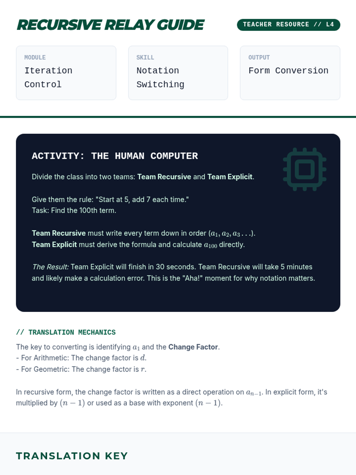 This sequence introduces 11th-grade students to the fundamental concepts of mathematical sequences, bridging the gap between algebra and calculus by exploring arithmetic and geometric progressions, recursive and explicit notation, and the behavior of sequences as they approach infinity.
