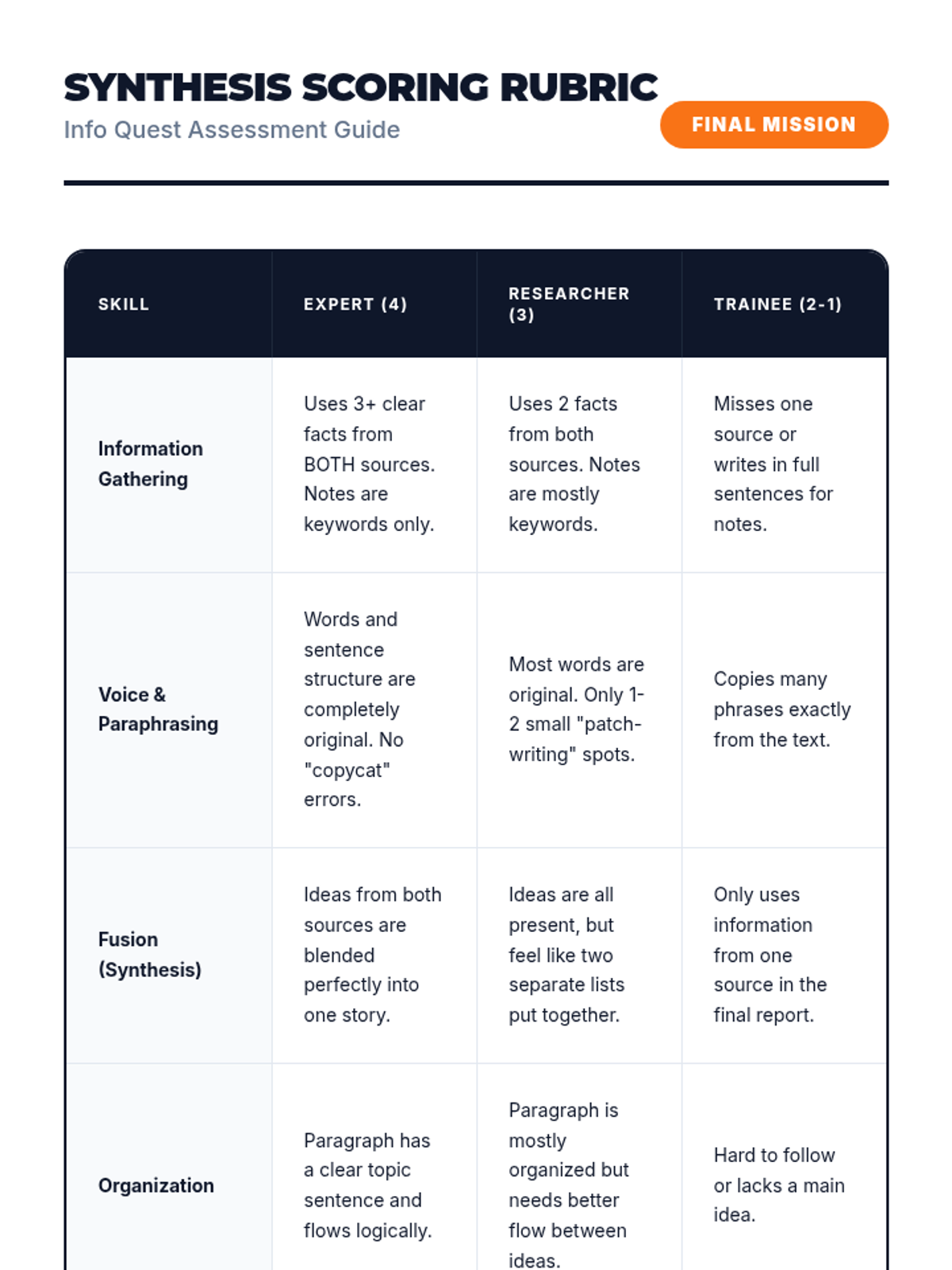 A comprehensive workshop-style sequence for 4th Grade ESL students to master academic research skills. Students progress from navigating text features to note-taking, paraphrasing, summarizing, and ultimately synthesizing information from multiple sources while avoiding plagiarism.