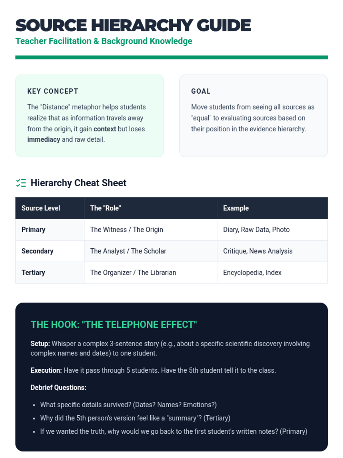 A comprehensive sequence for 9th-grade ELA students focused on information verification, cross-referencing, and the effective use of reference materials like encyclopedias, almanacs, and atlases. Students learn to distinguish between primary, secondary, and tertiary sources and build rigorous fact-checking habits through simulations and data-digging activities.