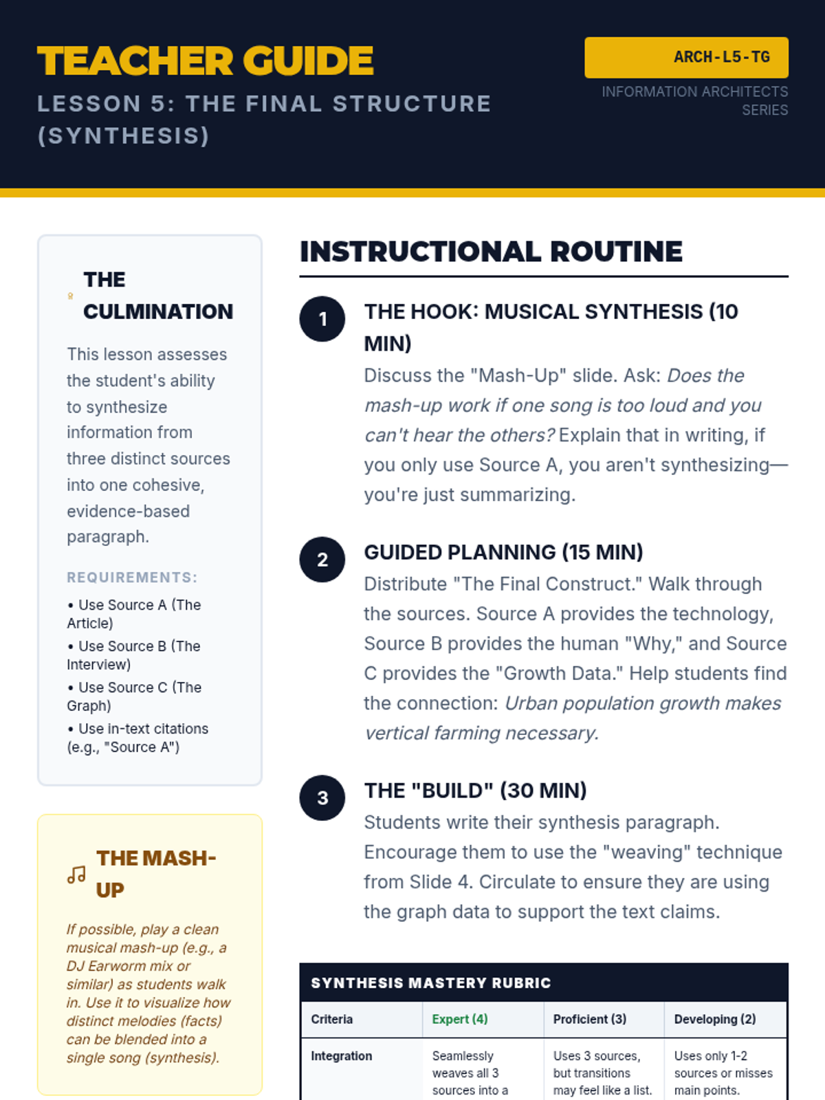 Students explore the art of synthesis by analyzing how information is presented across various mediums and perspectives. They will learn to identify conflicting accounts, integrate quantitative data with qualitative text, and ultimately construct a cohesive understanding of complex topics from multiple sources.