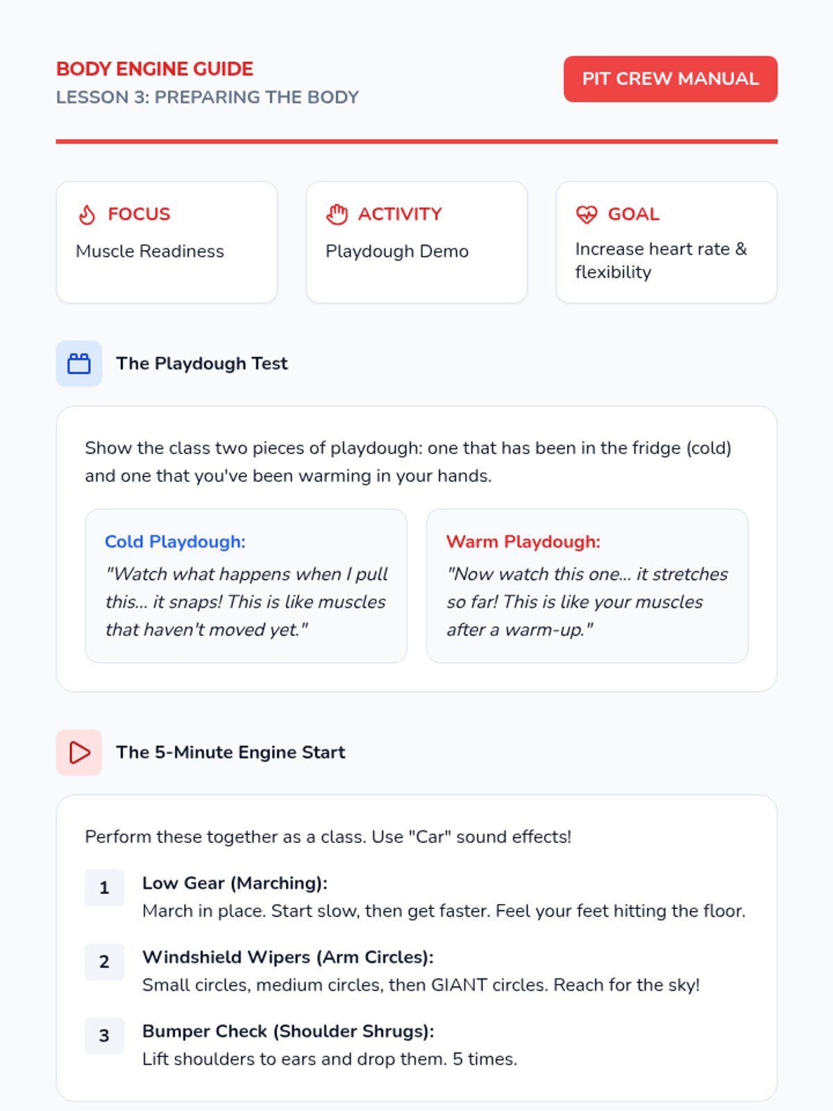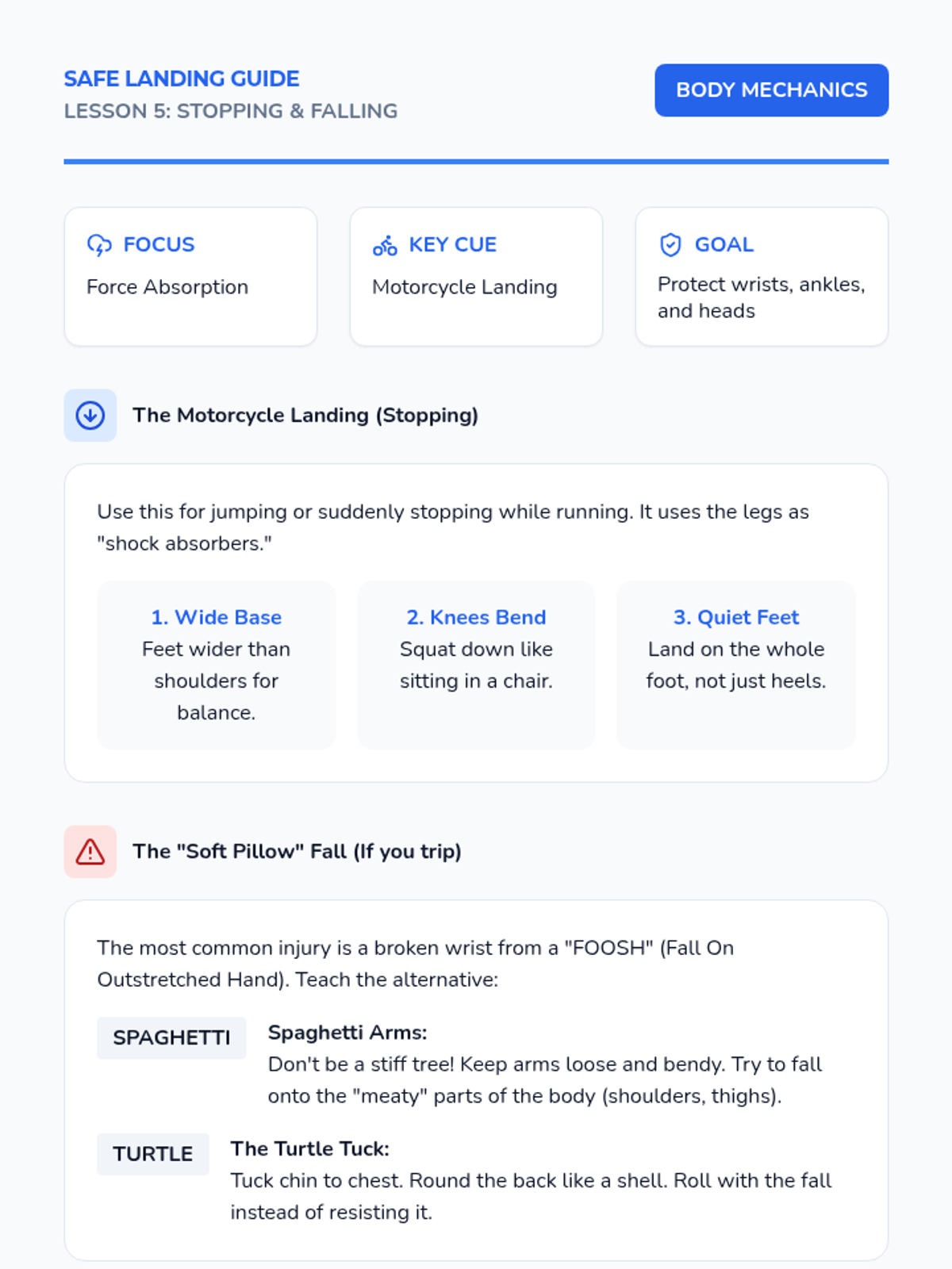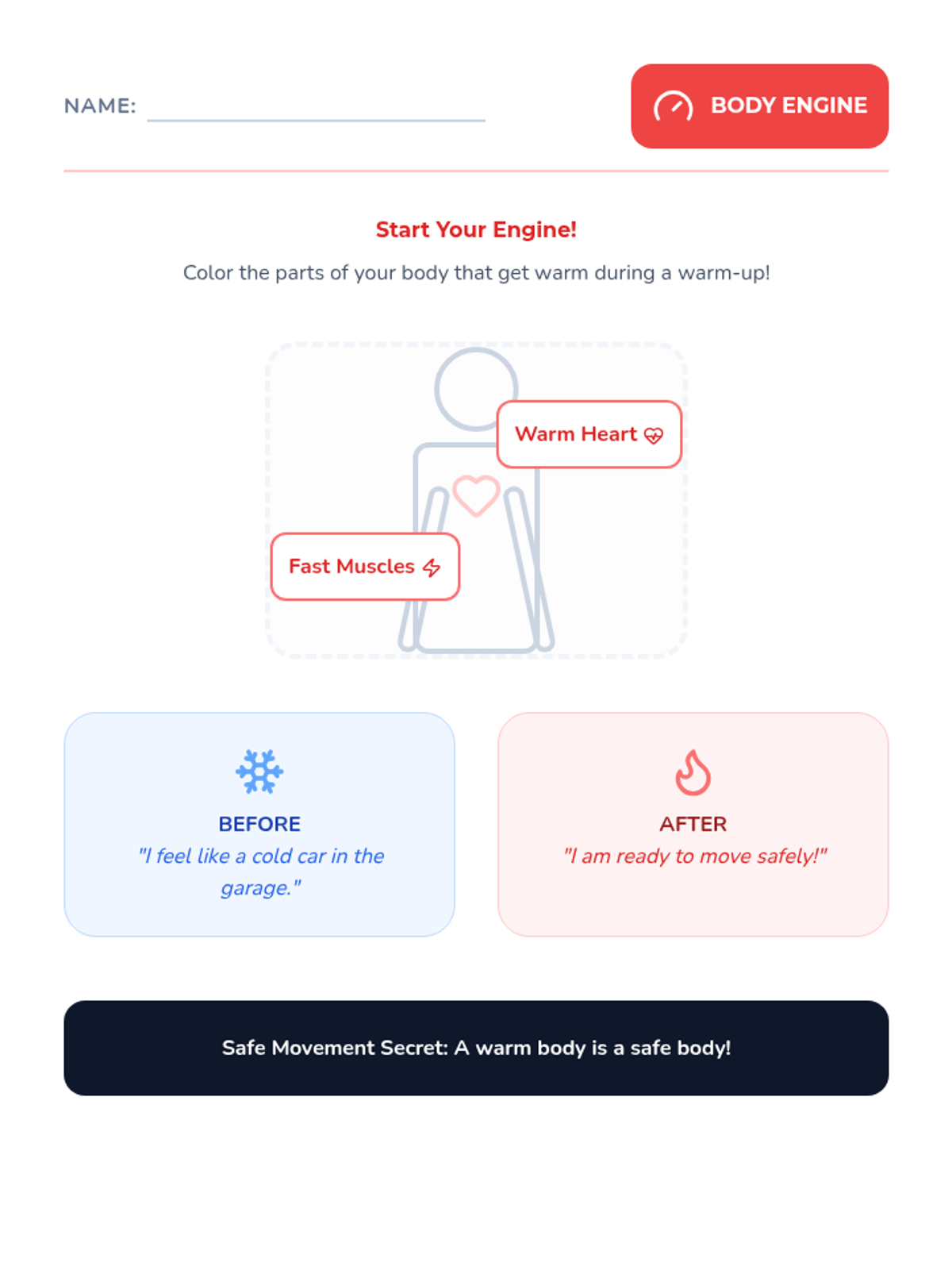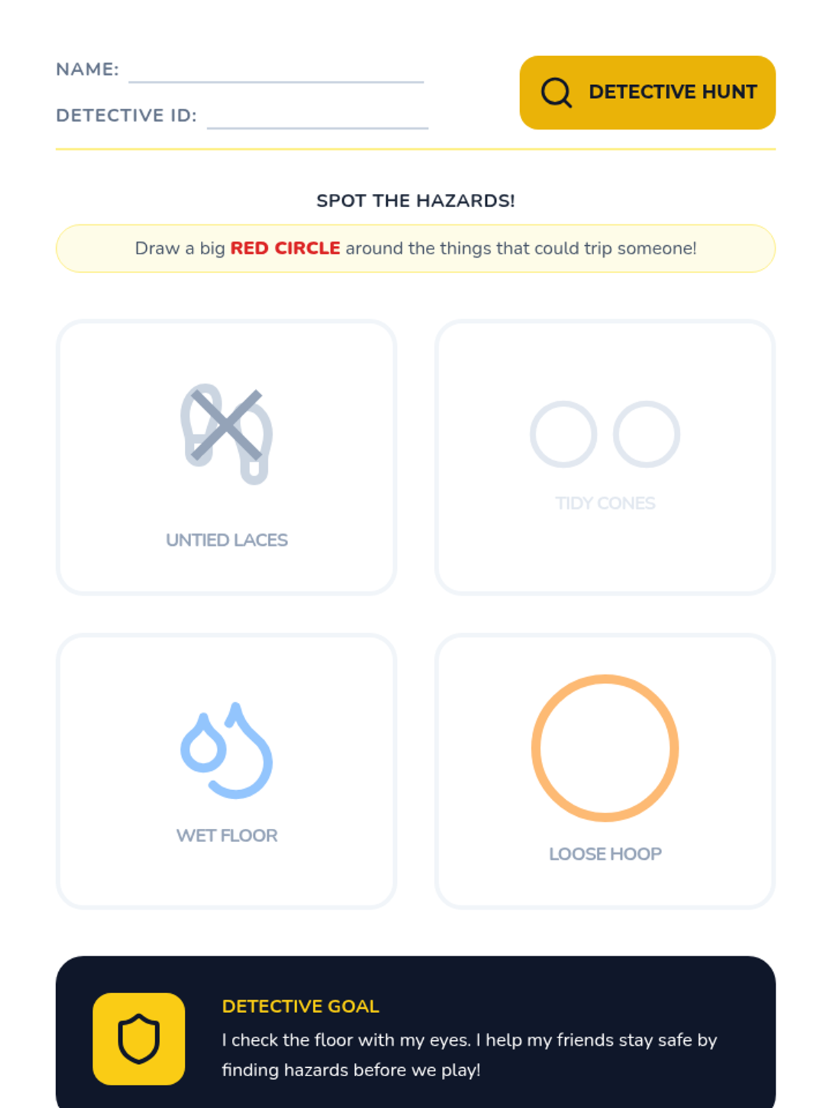 A Kindergarten sequence focused on injury prevention through spatial awareness, hazard identification, and safe movement techniques. Students learn to navigate physical activity safely by respecting personal space, recognizing environmental risks, and practicing safe body mechanics.
