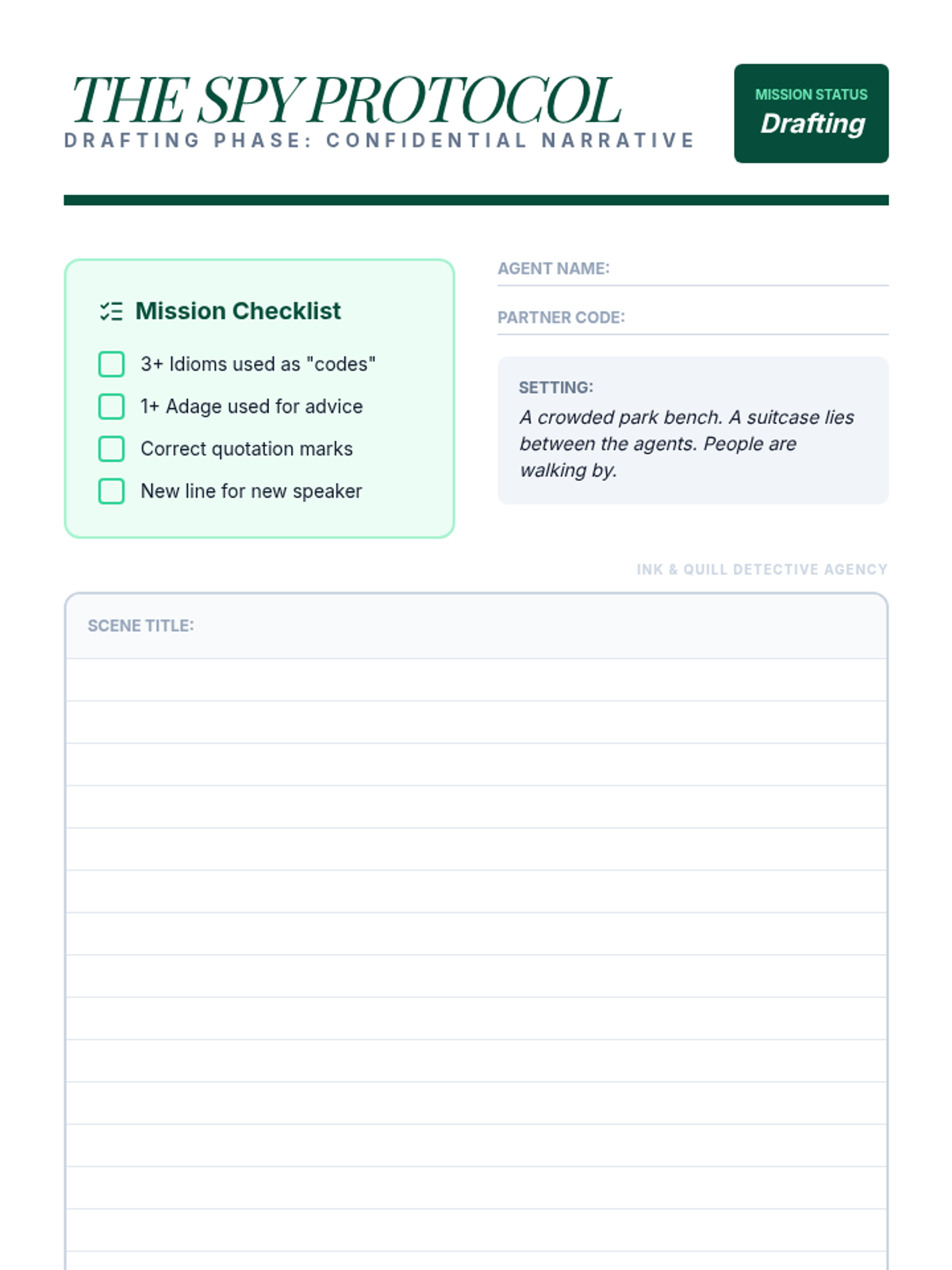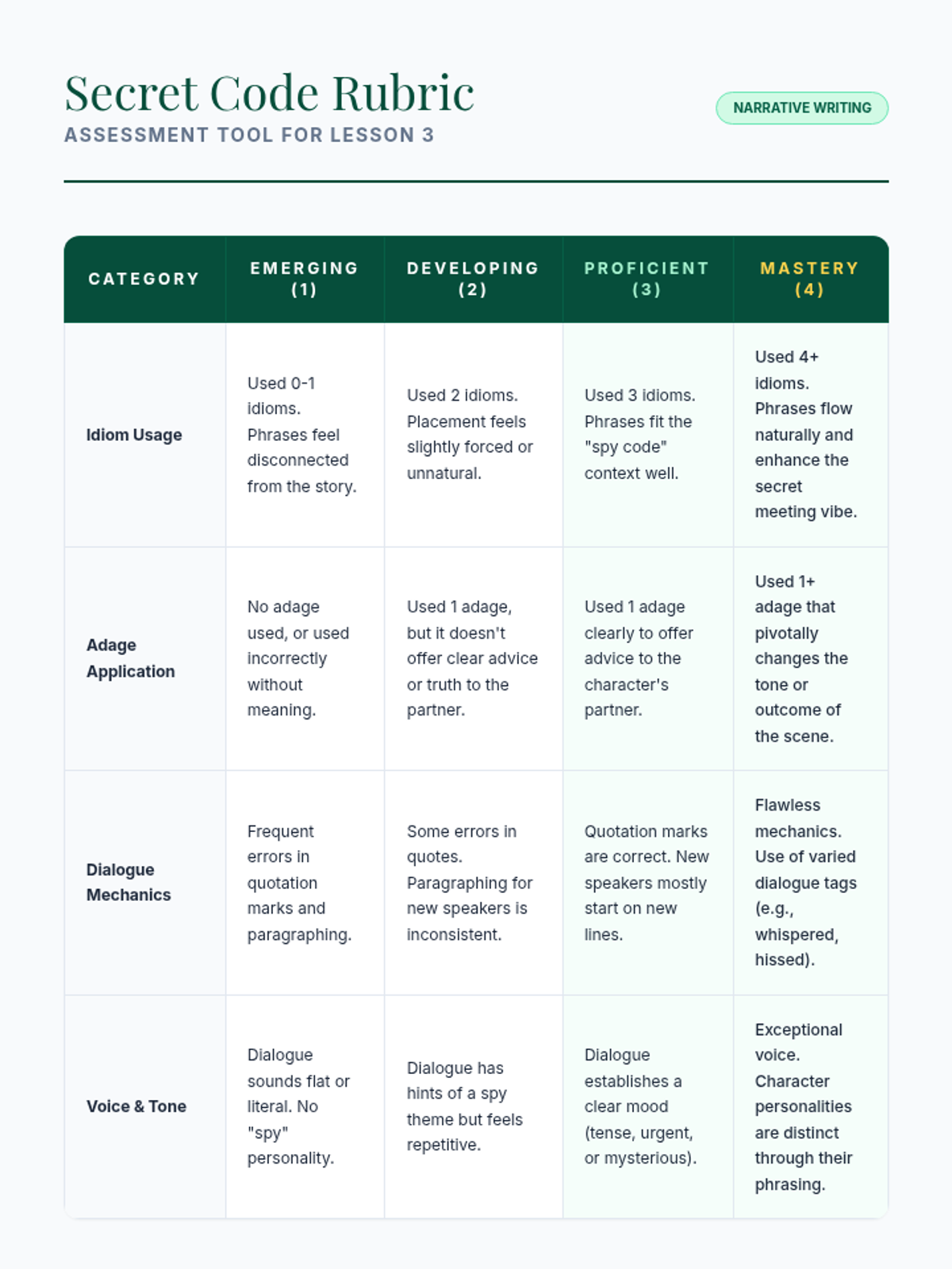 A 5th-grade ELA unit where students become 'language detectives' to investigate idioms and adages, eventually using them to craft vivid narrative dialogue and character voices.