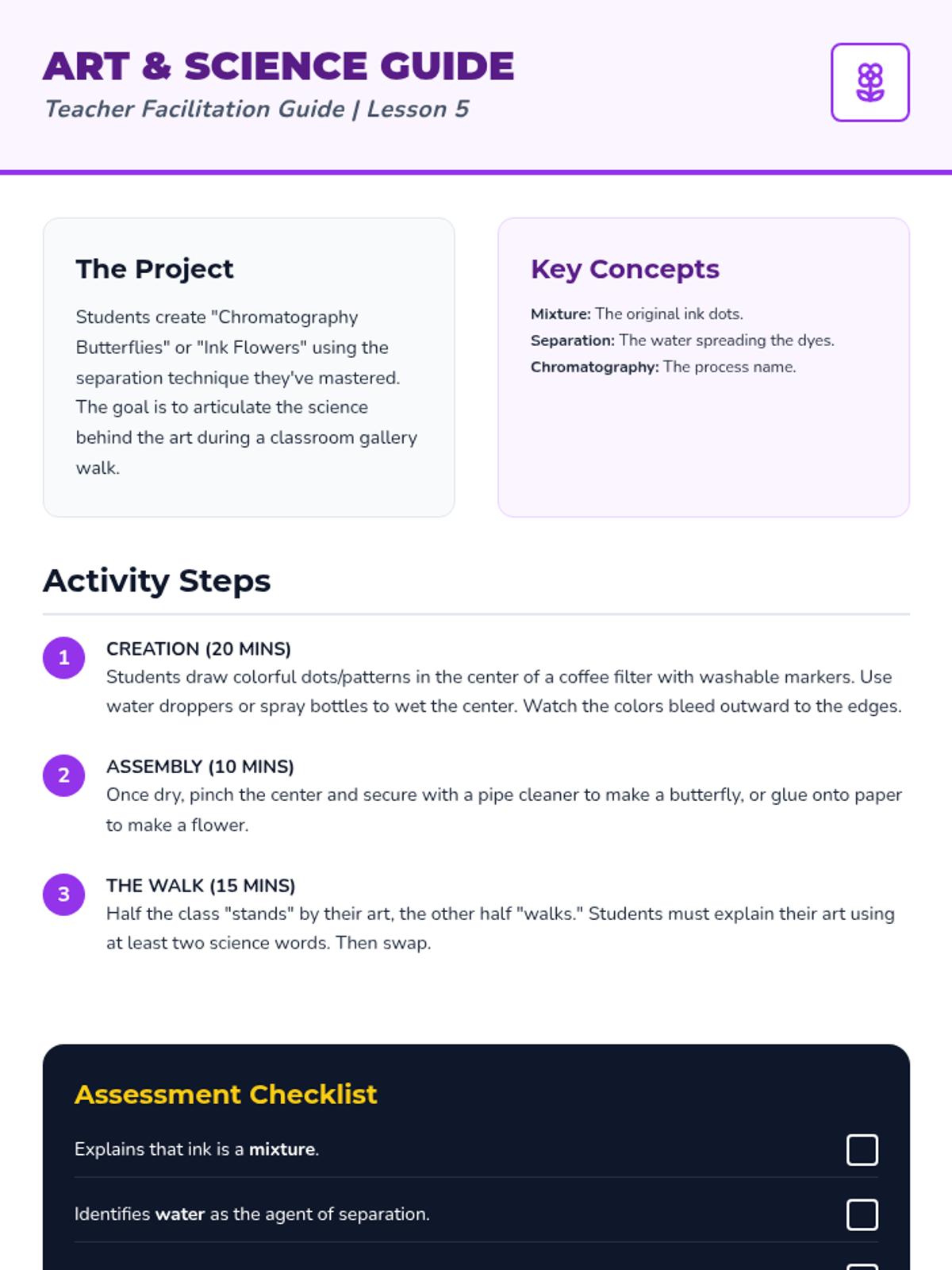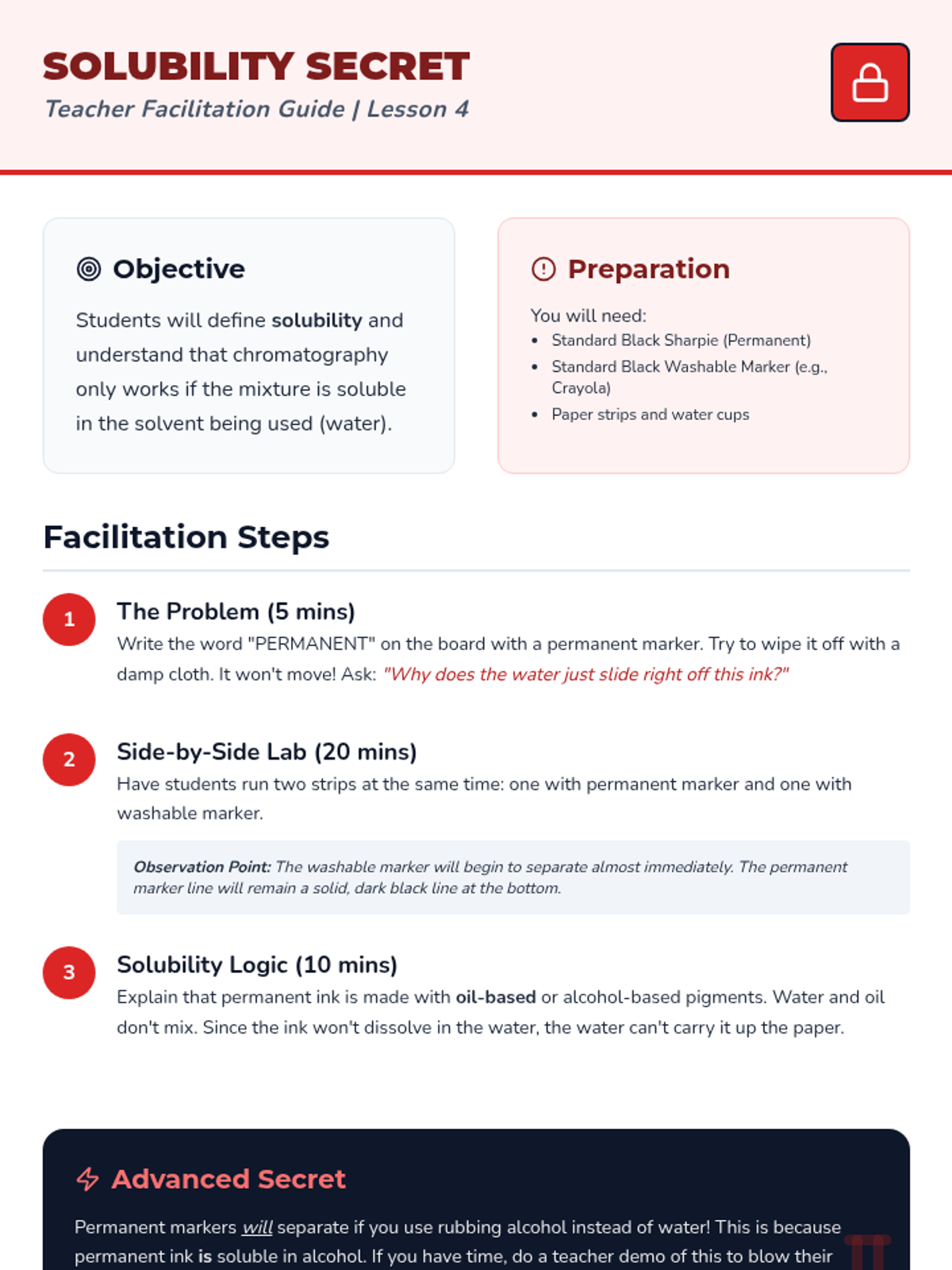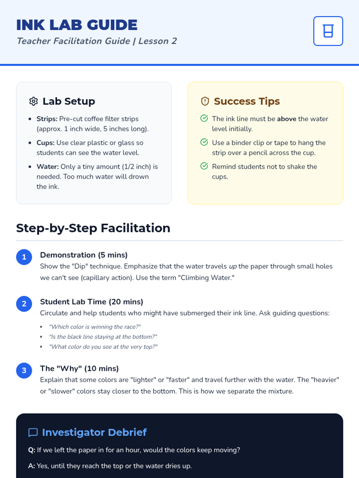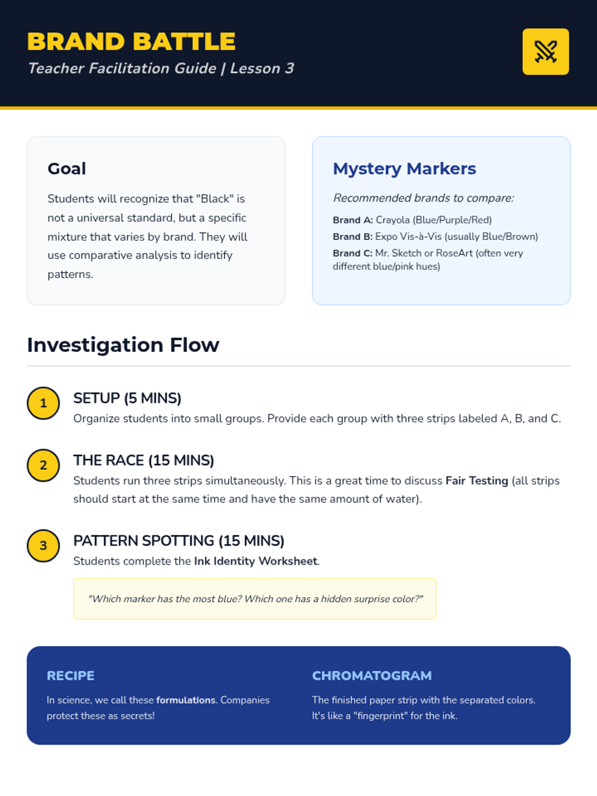 Students become 'Ink Investigators' to explore the science of mixtures through chromatography. They discover that black ink is often a combination of many colors and learn about solubility by testing different markers.