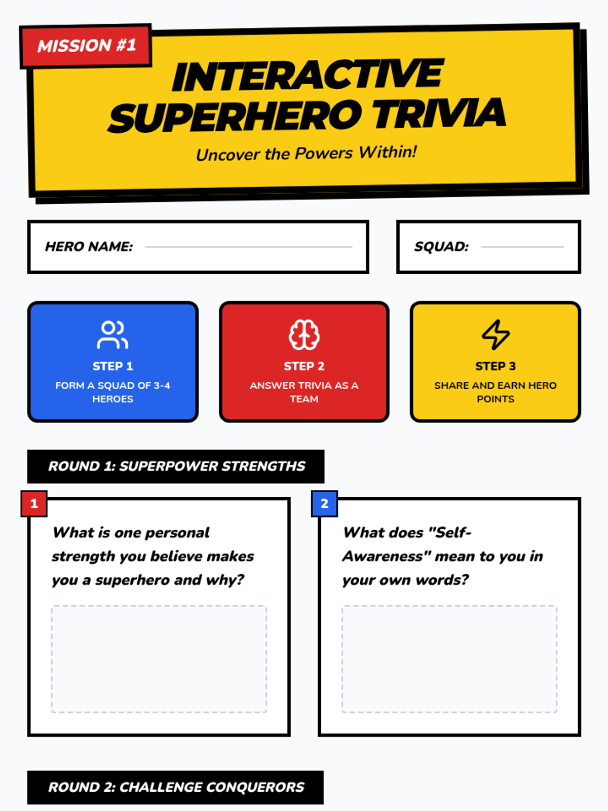 A two-session unit designed to help students explore self-awareness, identify personal strengths (superpowers), and apply them to goal setting and overcoming challenges. Through mindfulness, interactive games, and reflective journaling, students build a positive self-concept.