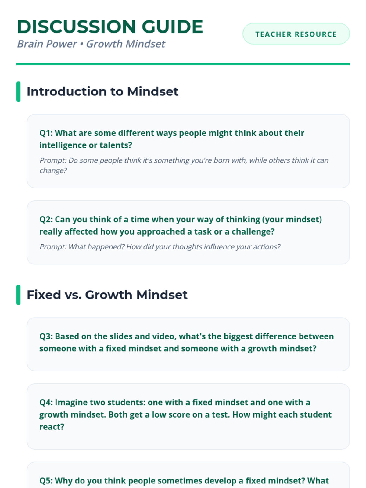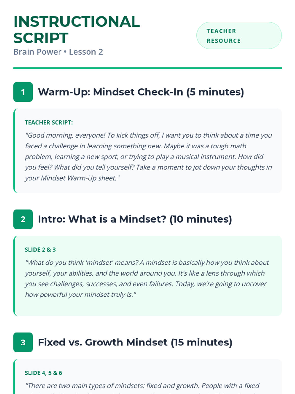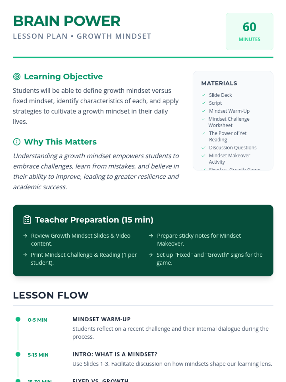 A two-lesson sequence for middle school students focusing on emotional intelligence and growth mindset. Students learn to identify and manage their emotions before exploring how their brains can learn and grow through effort and persistence.