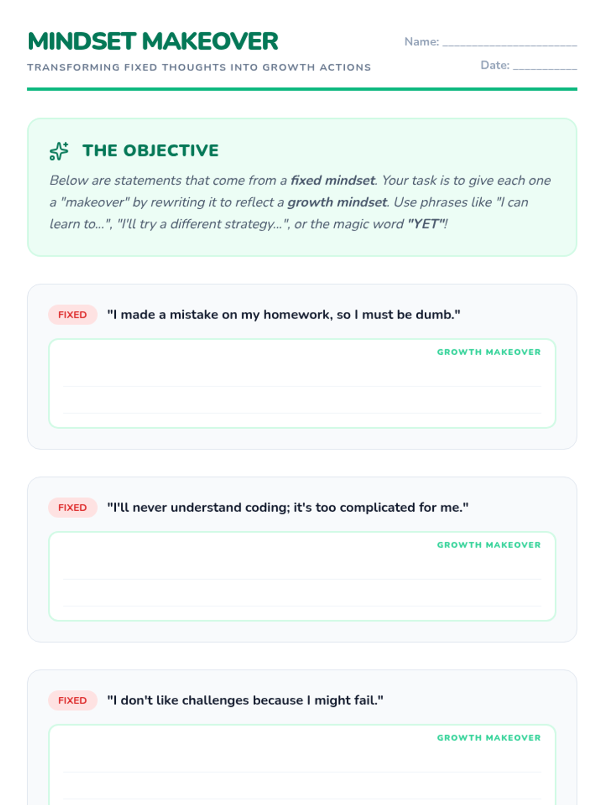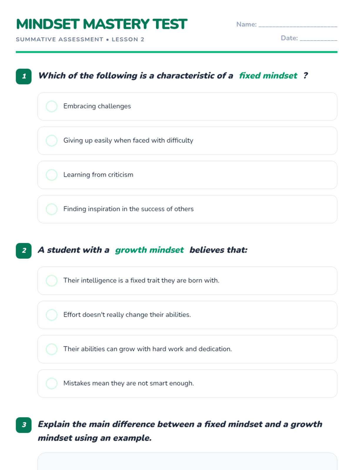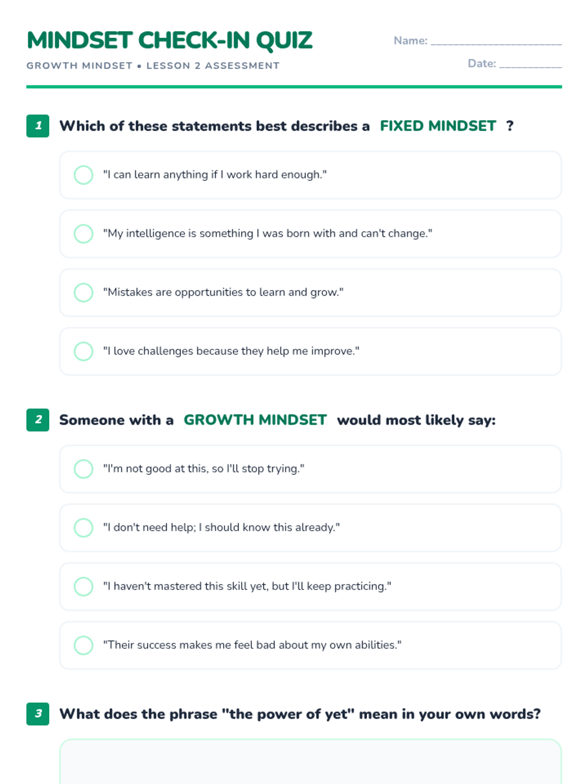 A two-lesson sequence for middle school students focusing on emotional intelligence and growth mindset. Students learn to identify and manage their emotions before exploring how their brains can learn and grow through effort and persistence.