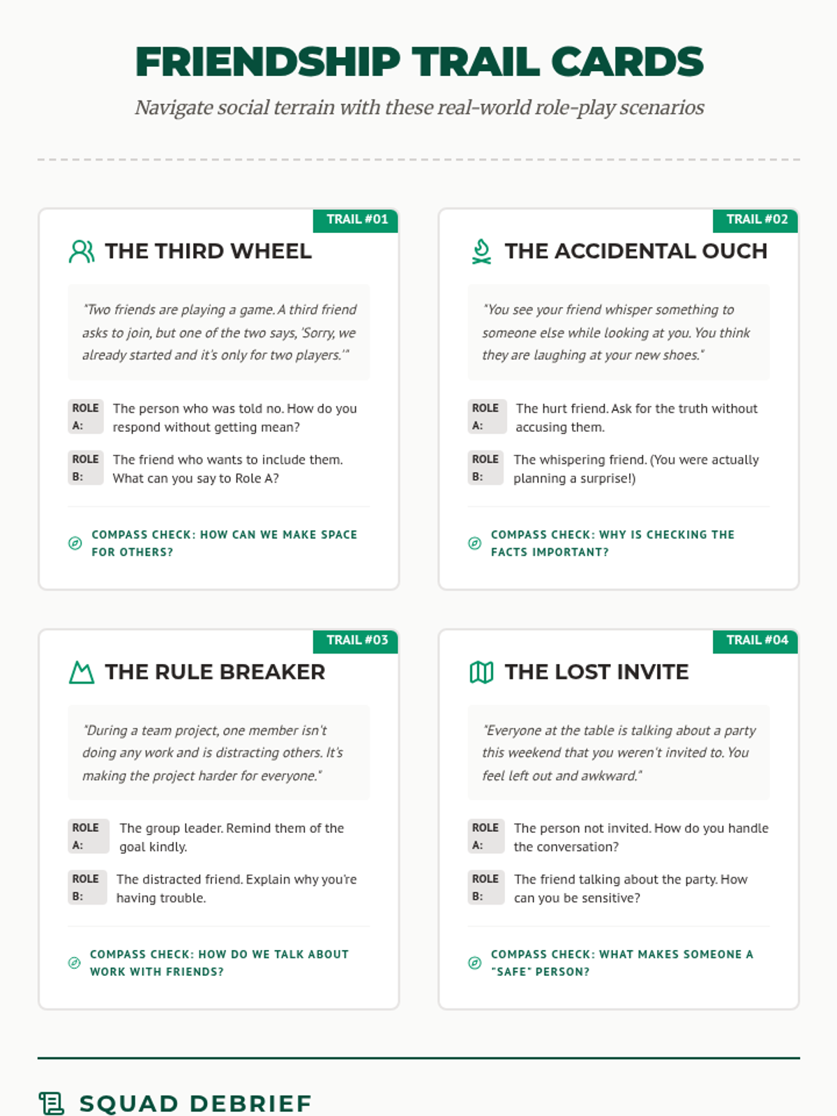 A comprehensive collection of social-emotional learning resources designed to help students navigate big feelings, life changes, and social dynamics. This 'field guide' style kit provides practical tools for mindfulness, coping, friendship, and self-worth.