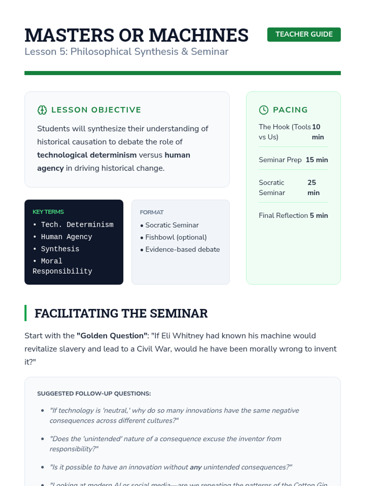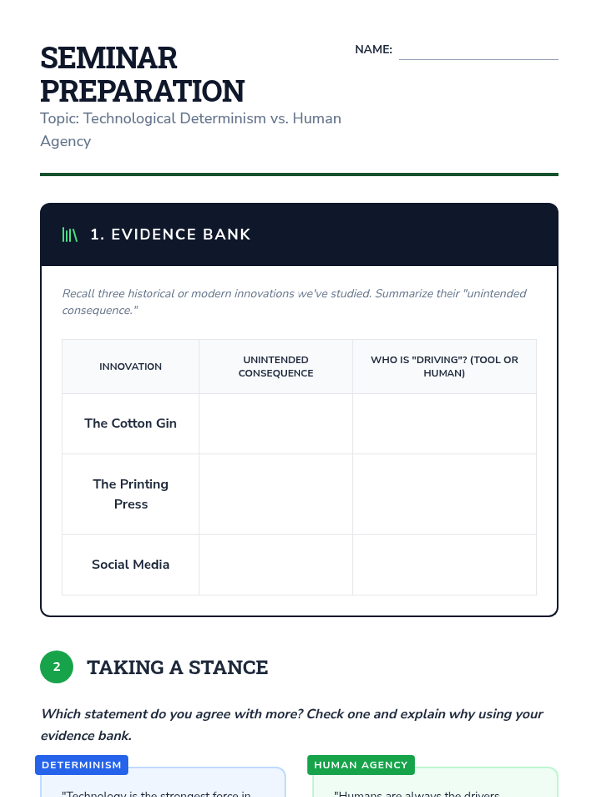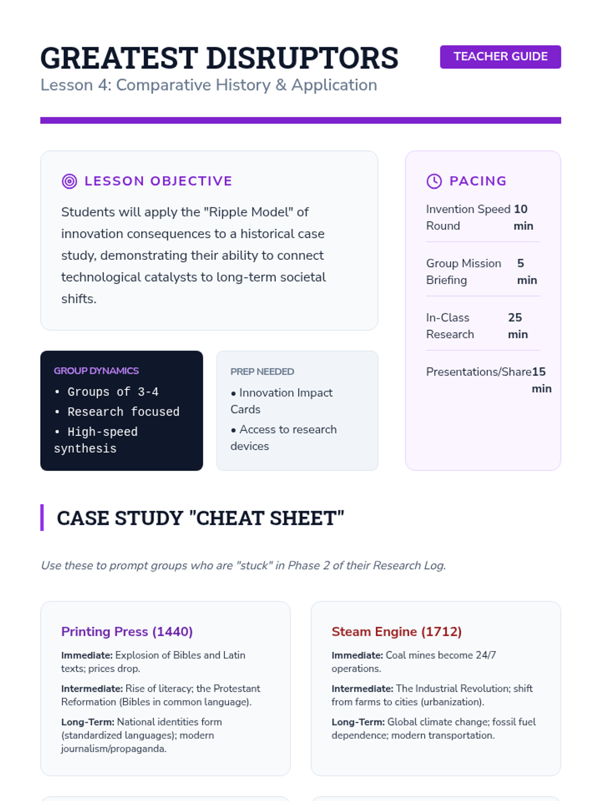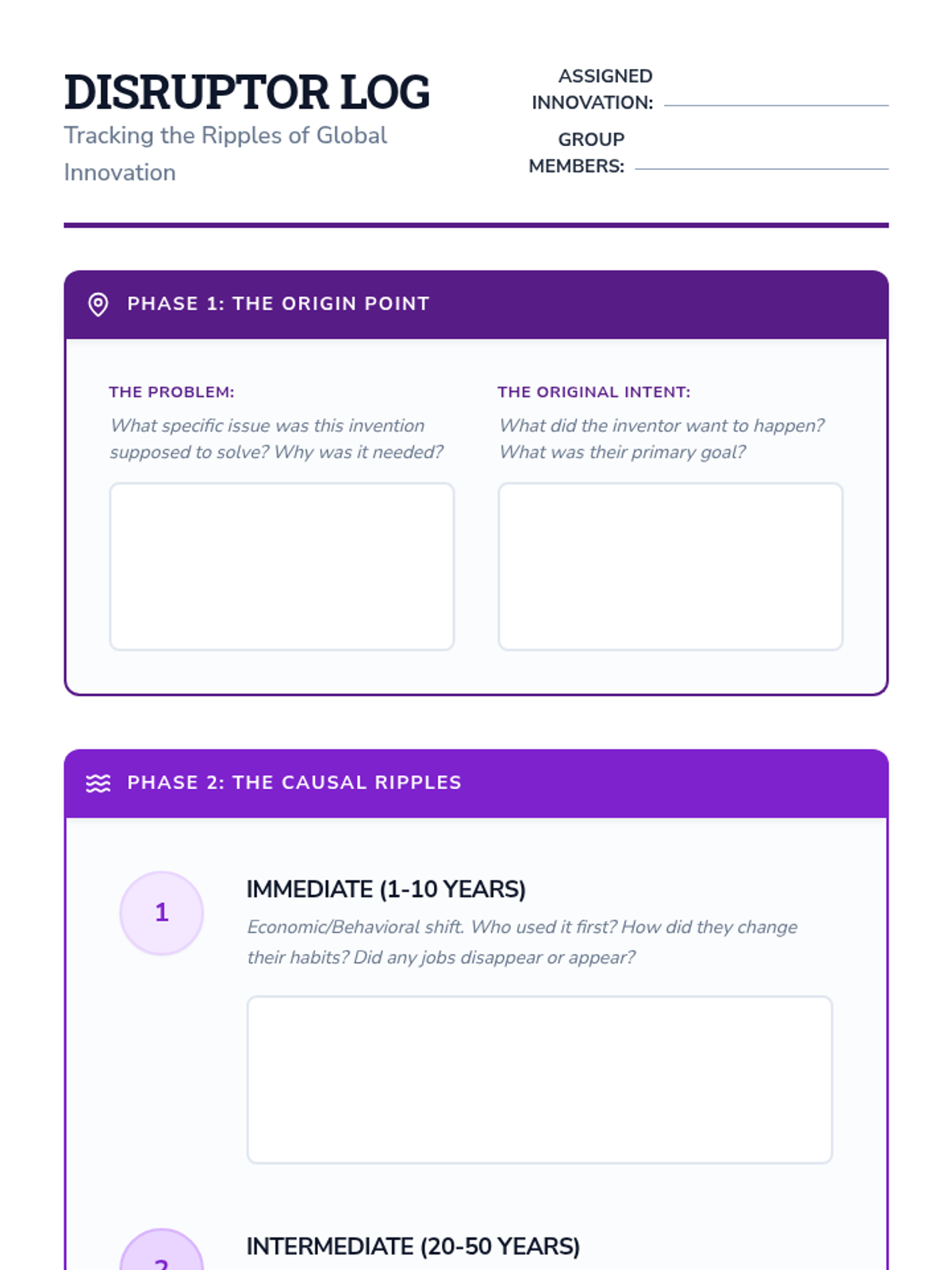 A 9th-grade Social Studies unit exploring how technological and social innovations act as catalysts for multi-century change, distinguishing between intended outcomes and unintended consequences through historical and modern case studies.