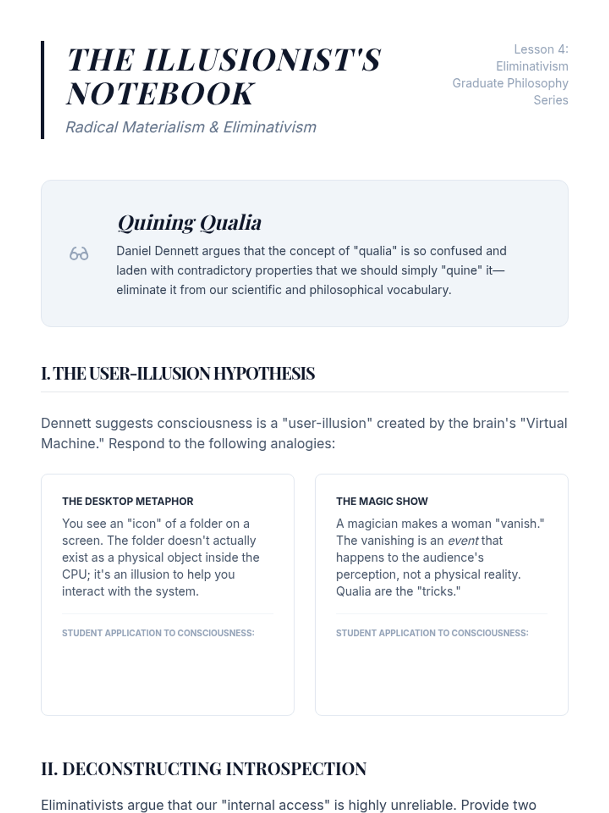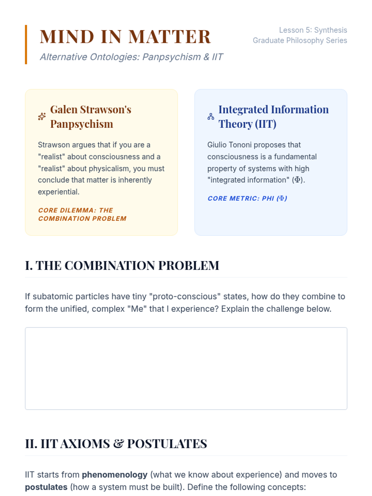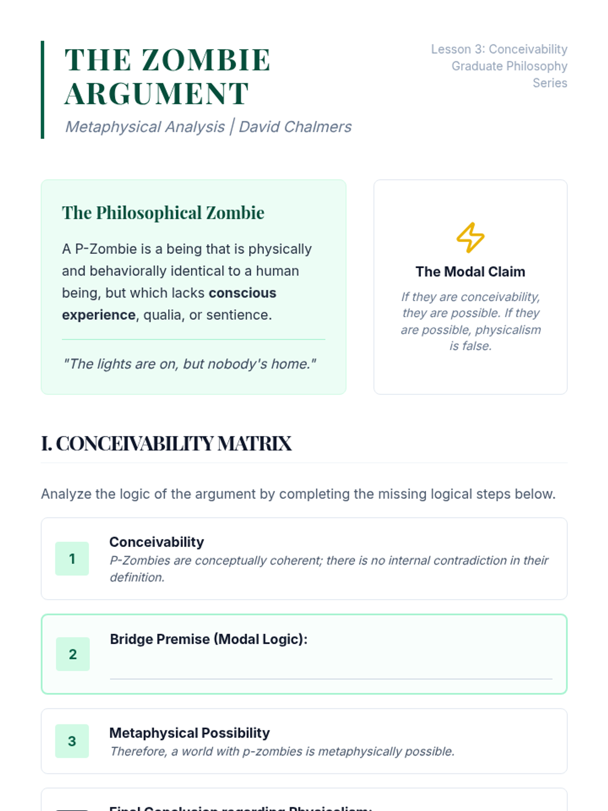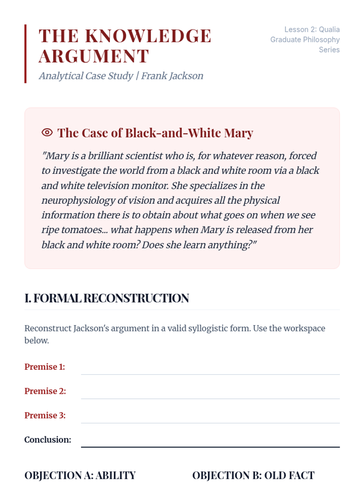 A graduate-level exploration of the 'Hard Problem' of consciousness, focusing on the gap between physicalism and phenomenal experience through thought experiments and contemporary theories.