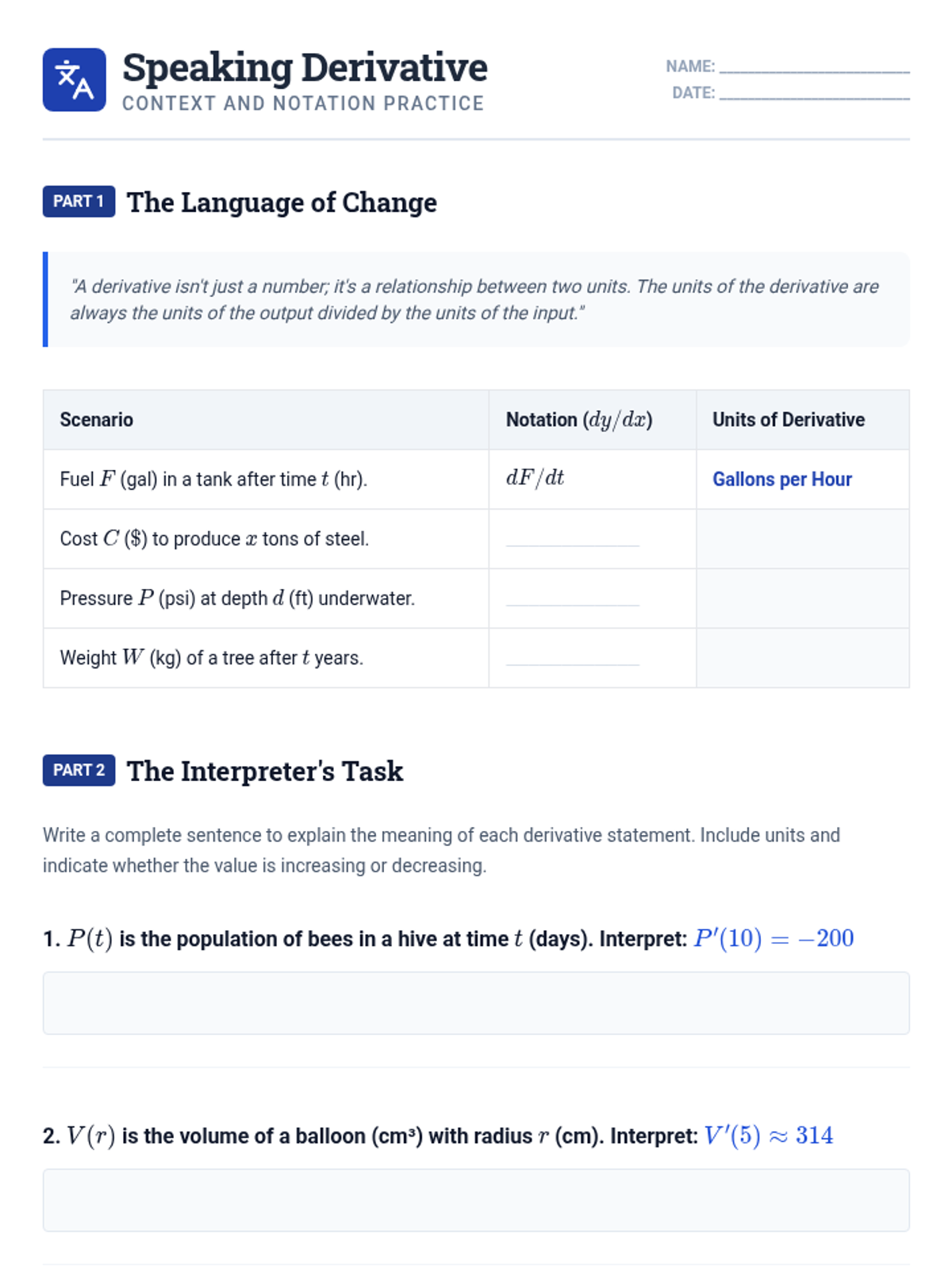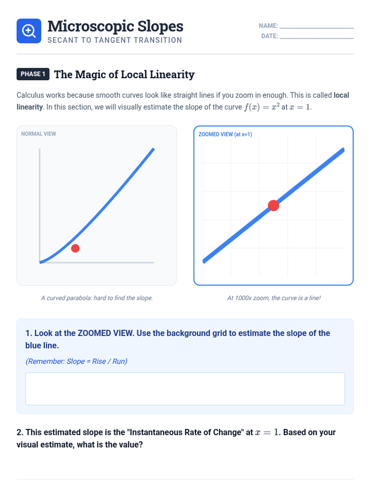A foundational calculus unit bridging average and instantaneous rates of change. Students move from physical motion data to geometric visualization and numerical estimation, culminating in the qualitative sketching of derivative graphs and interpretation of notation in real-world contexts.