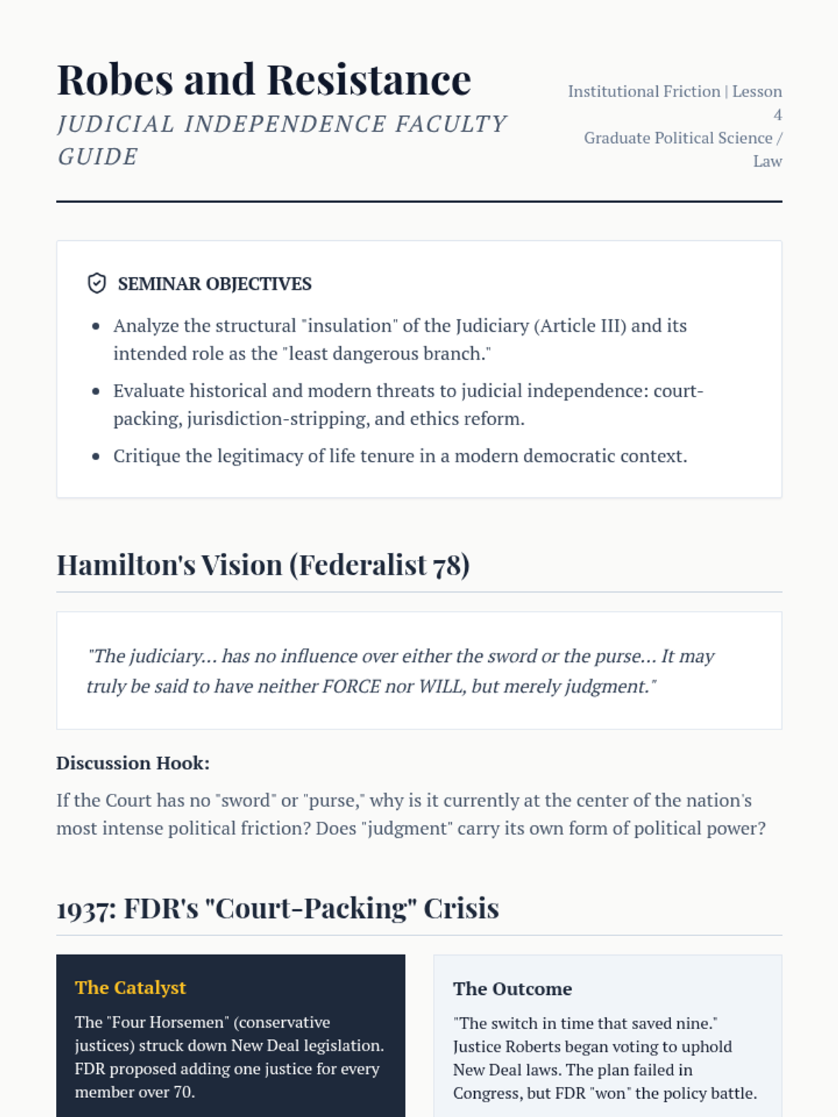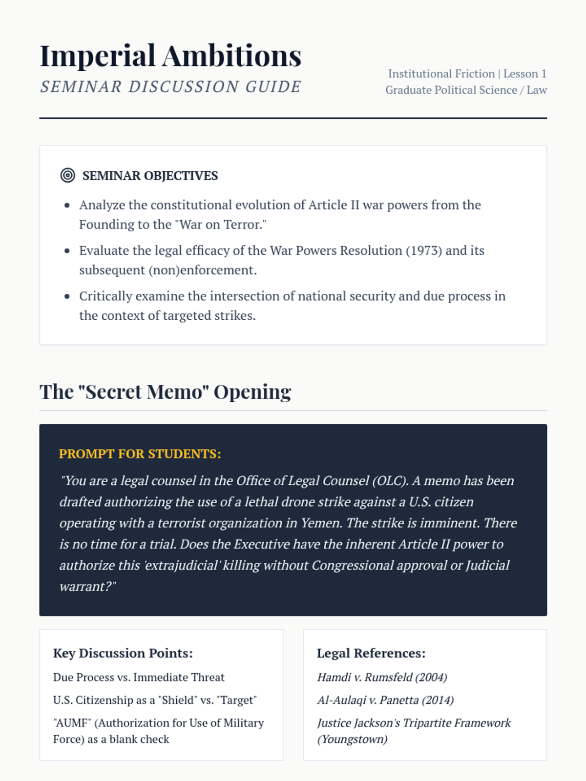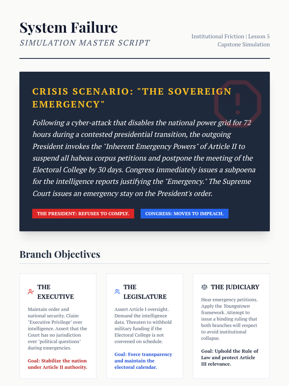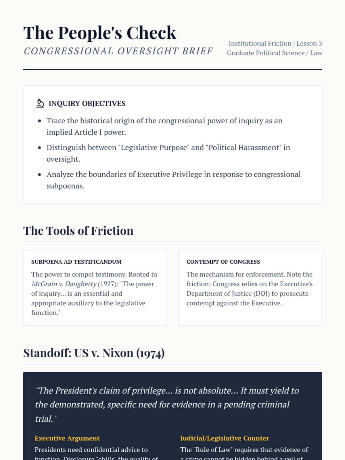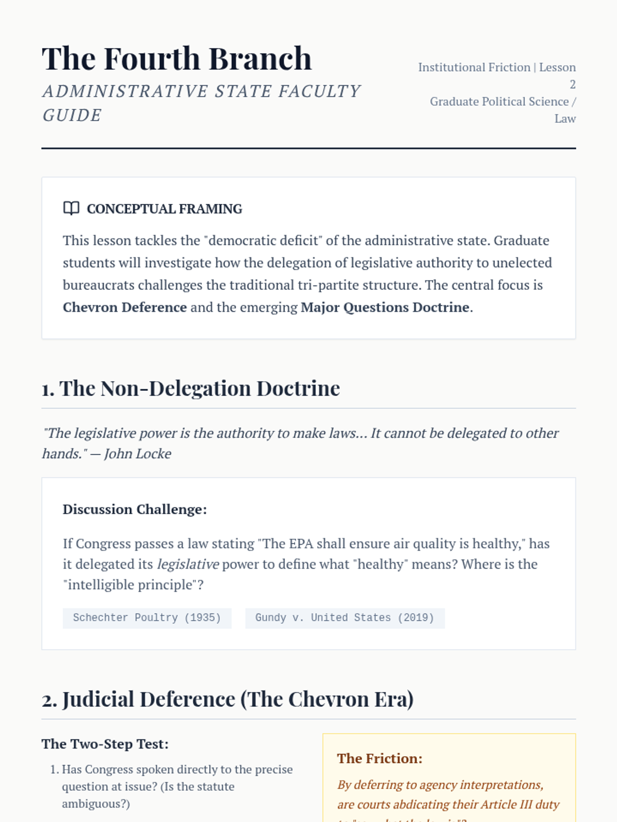 A graduate-level exploration of the systemic friction in the U.S. separation of powers, focusing on executive expansion, the administrative state, and the efficacy of constitutional checks in the modern era.
