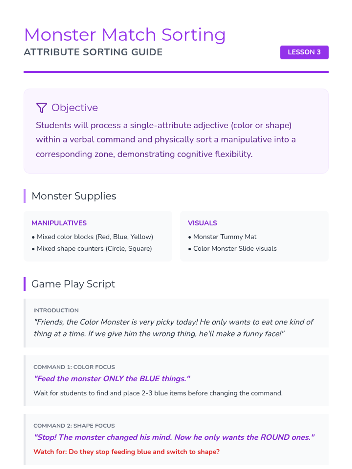 A Pre-K sequence focused on working memory and auditory processing through single-step directions using table-top manipulatives. Students develop fine motor skills and inhibitory control while following specific verbal commands in a hands-on workshop environment.