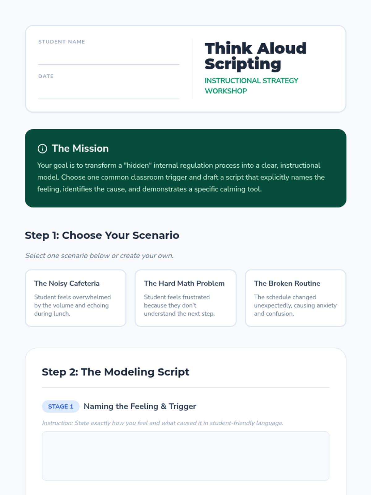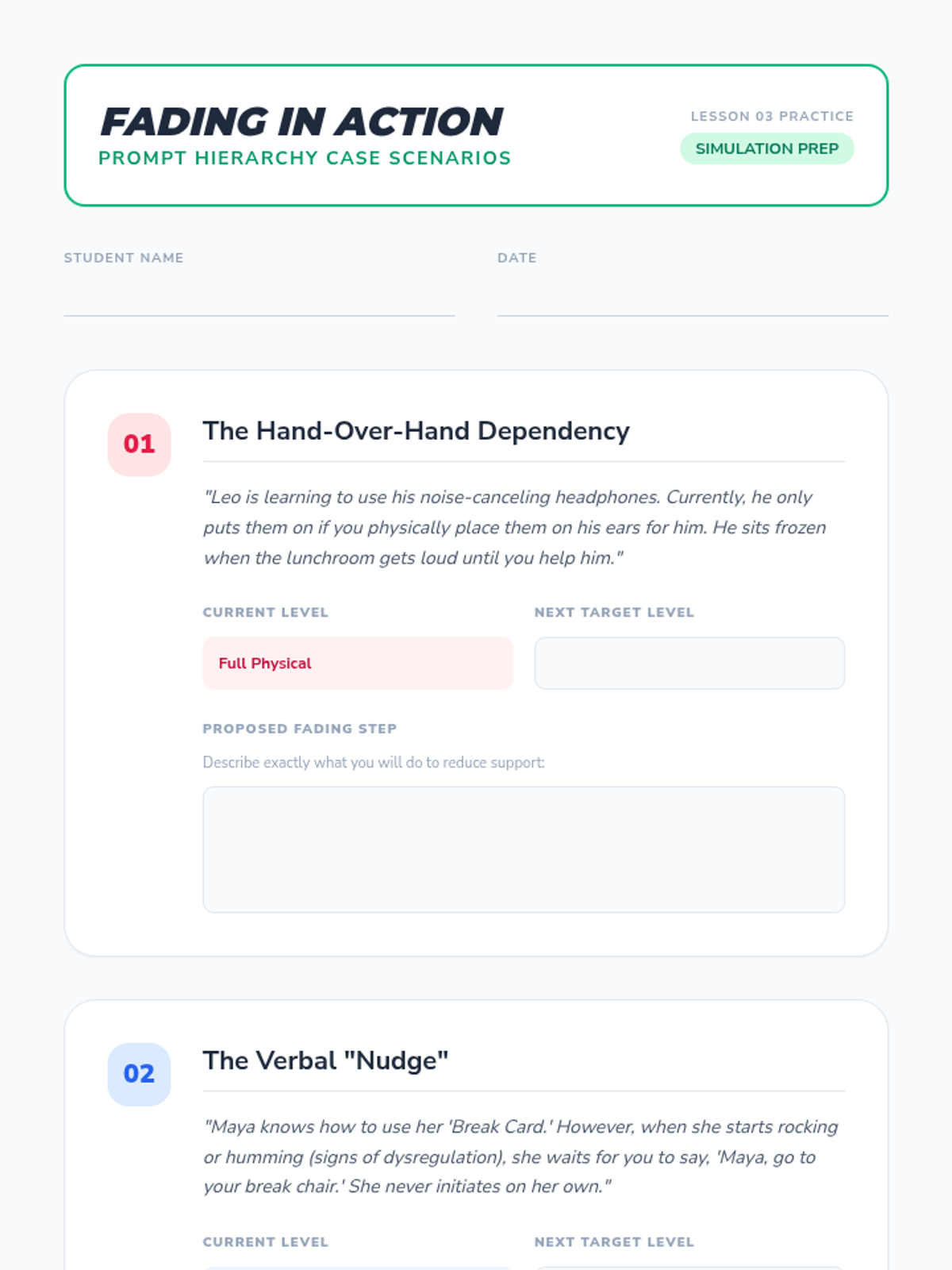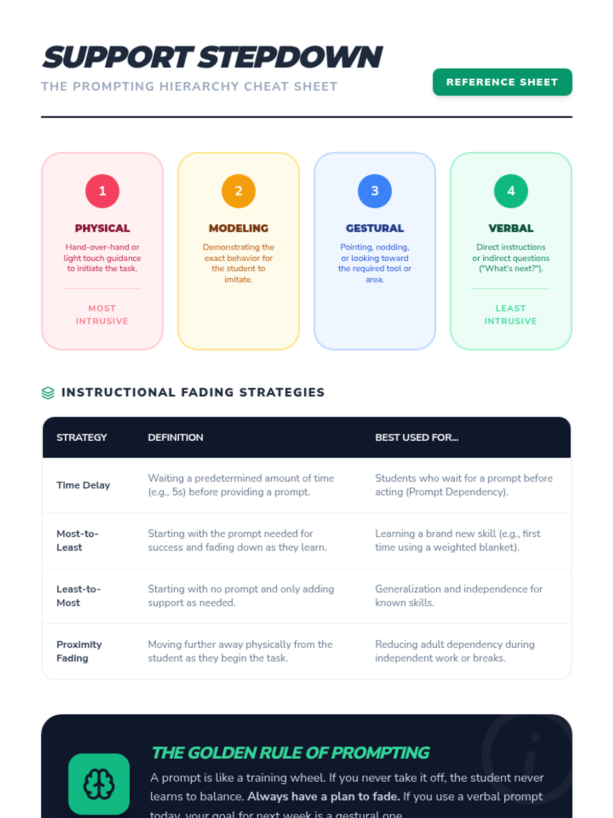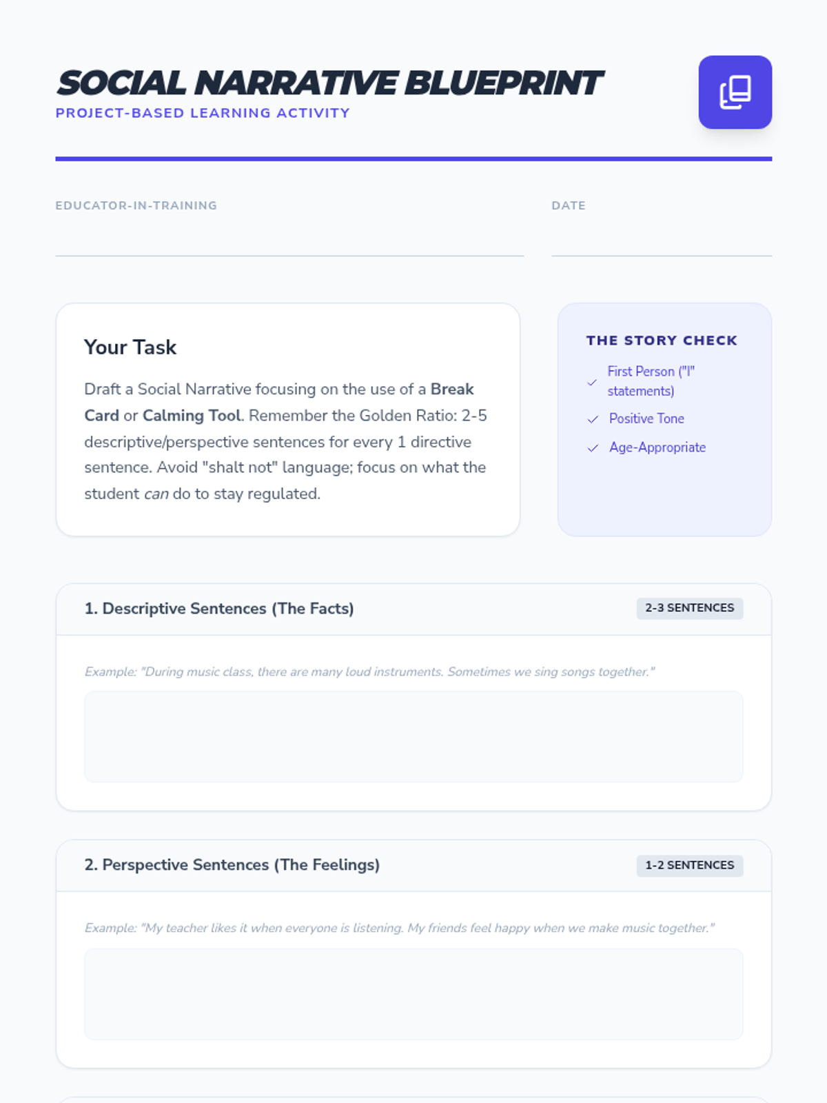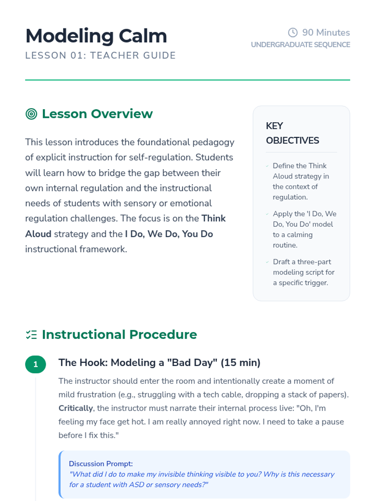 A comprehensive sequence for undergraduate special education students focusing on the instructional pedagogy of self-regulation. Students move from understanding explicit modeling and social narratives to mastering prompting hierarchies, co-regulation techniques, and generalization strategies across school environments.