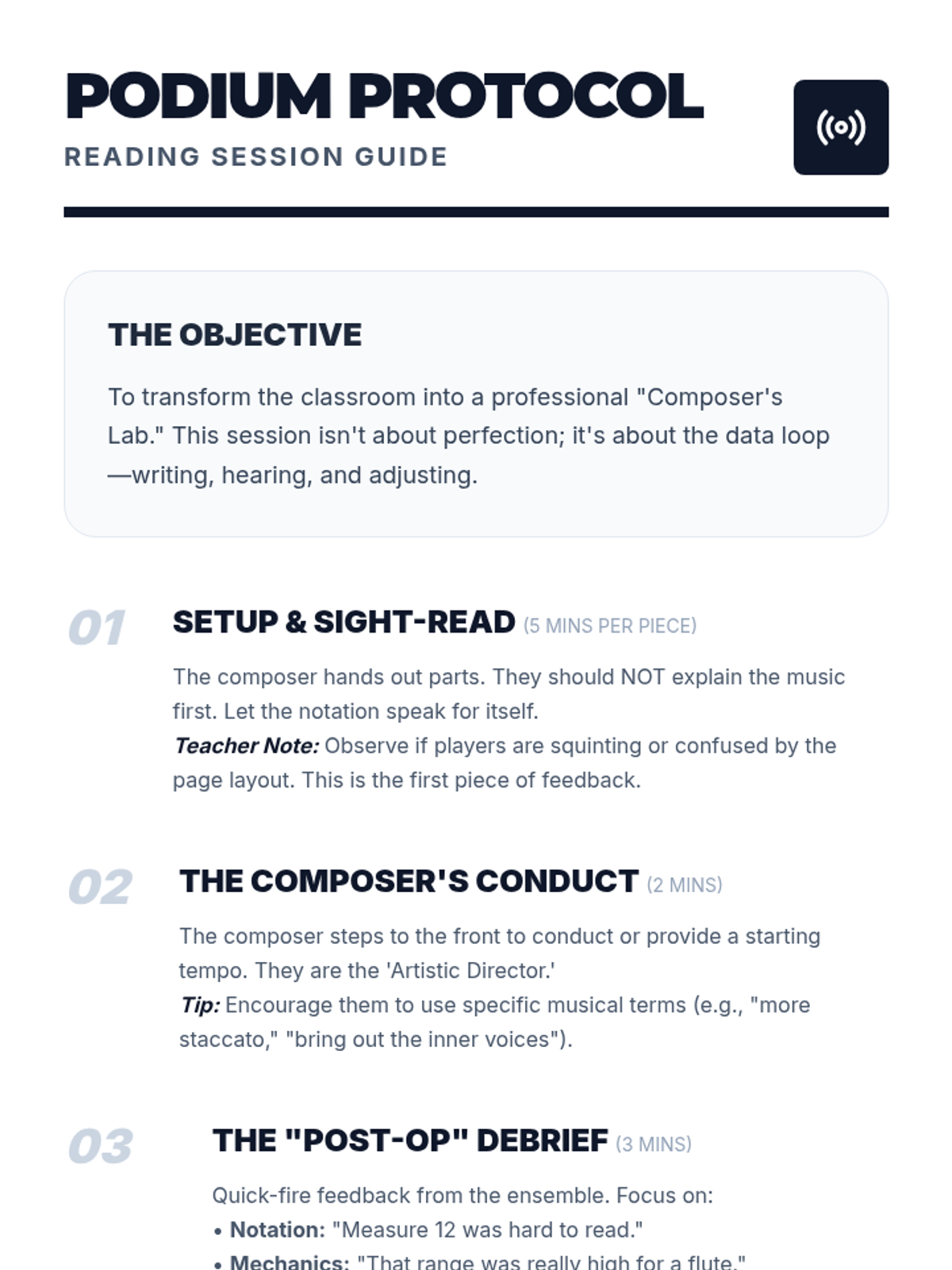 A project-based unit where 10th-grade students master the mechanics of instrumental arranging. Students progress from basic range and clef literacy to producing a professionally notated ensemble score ready for live performance.