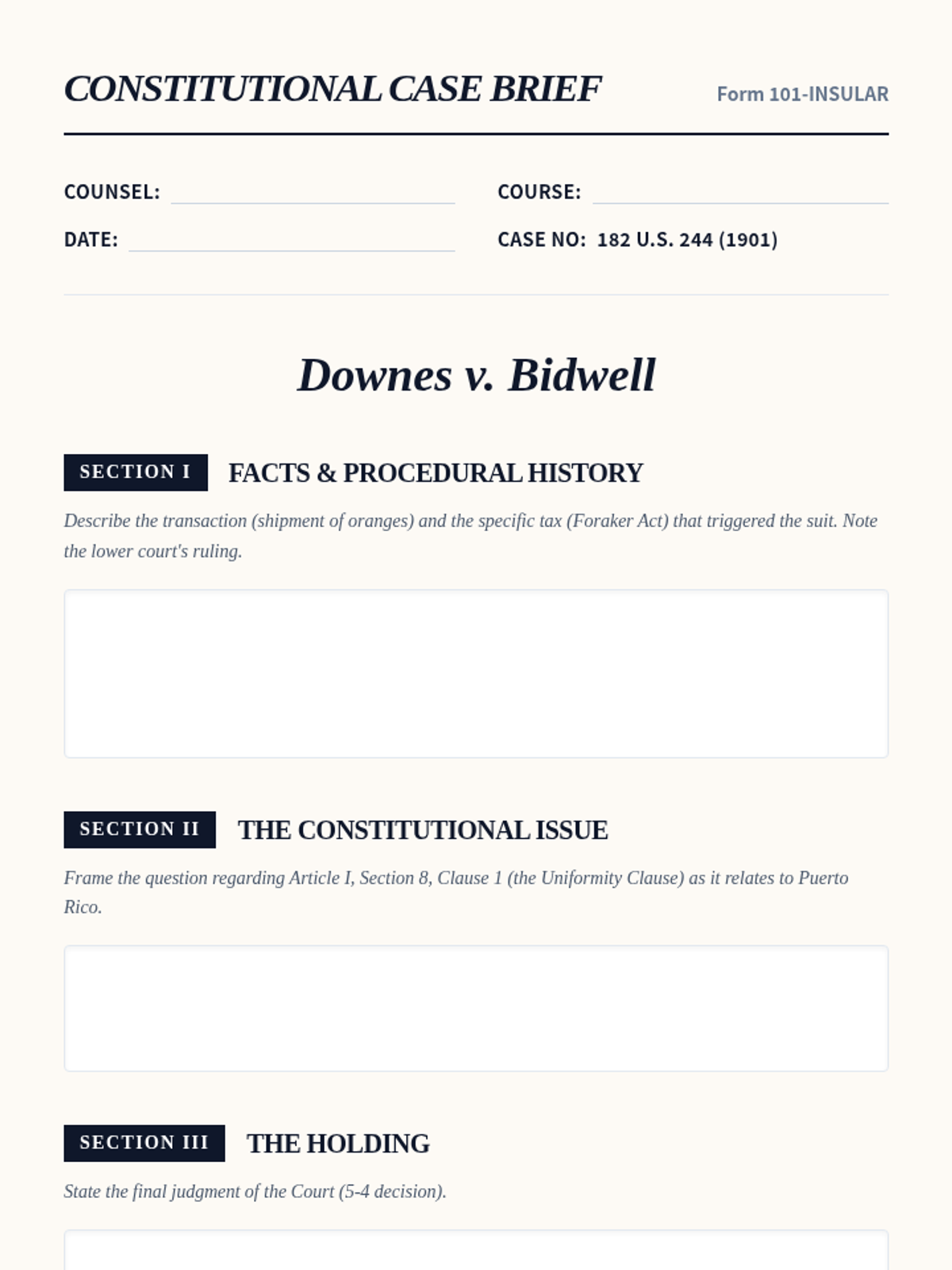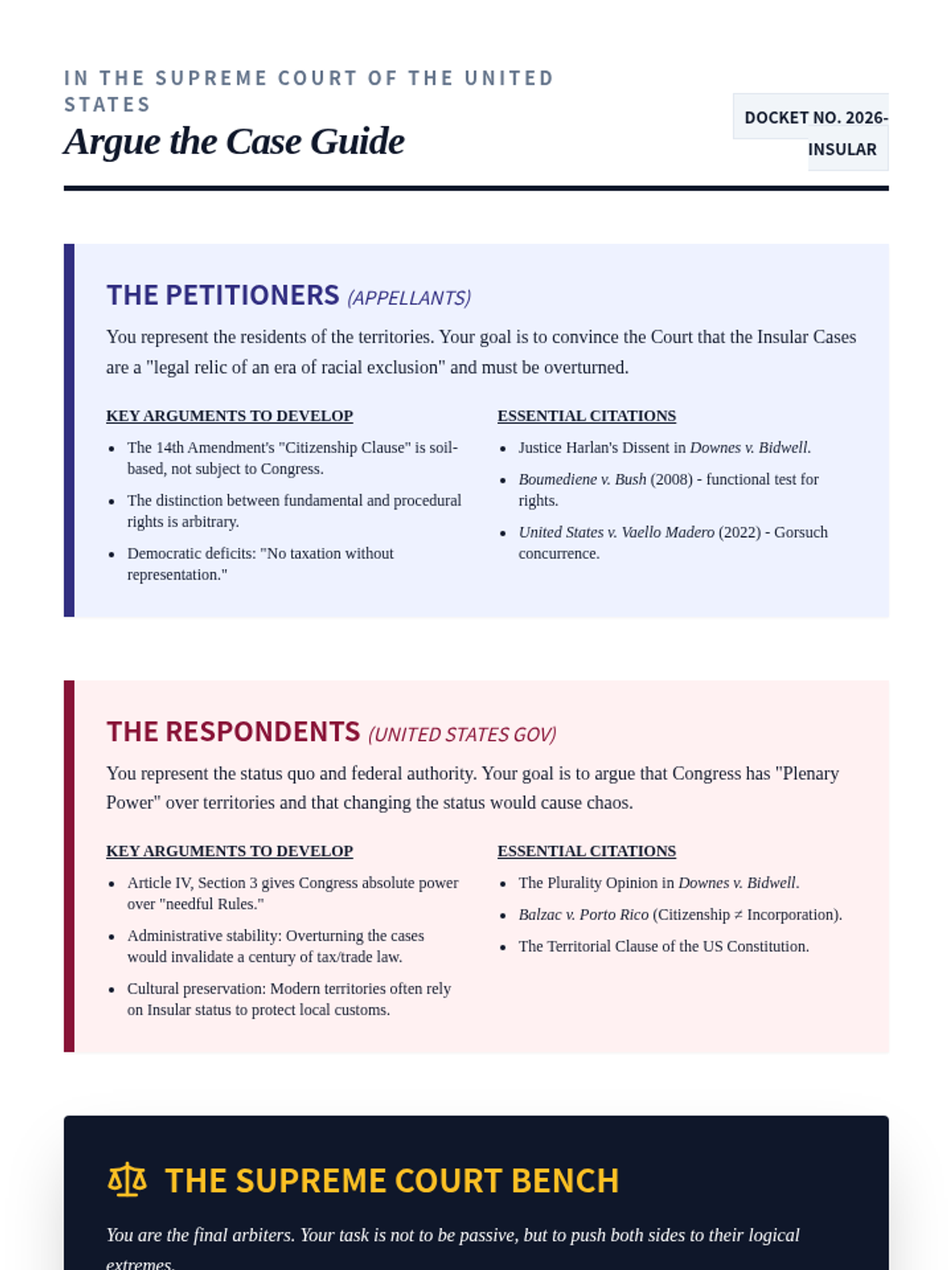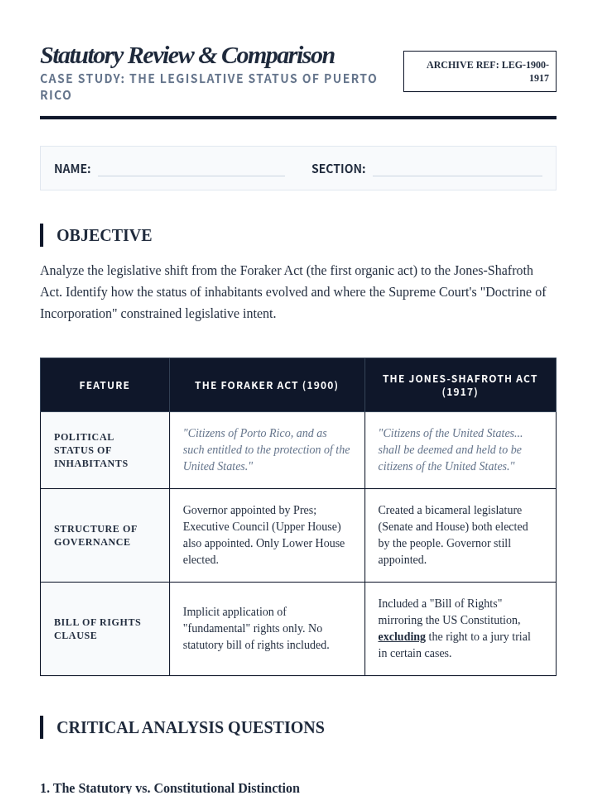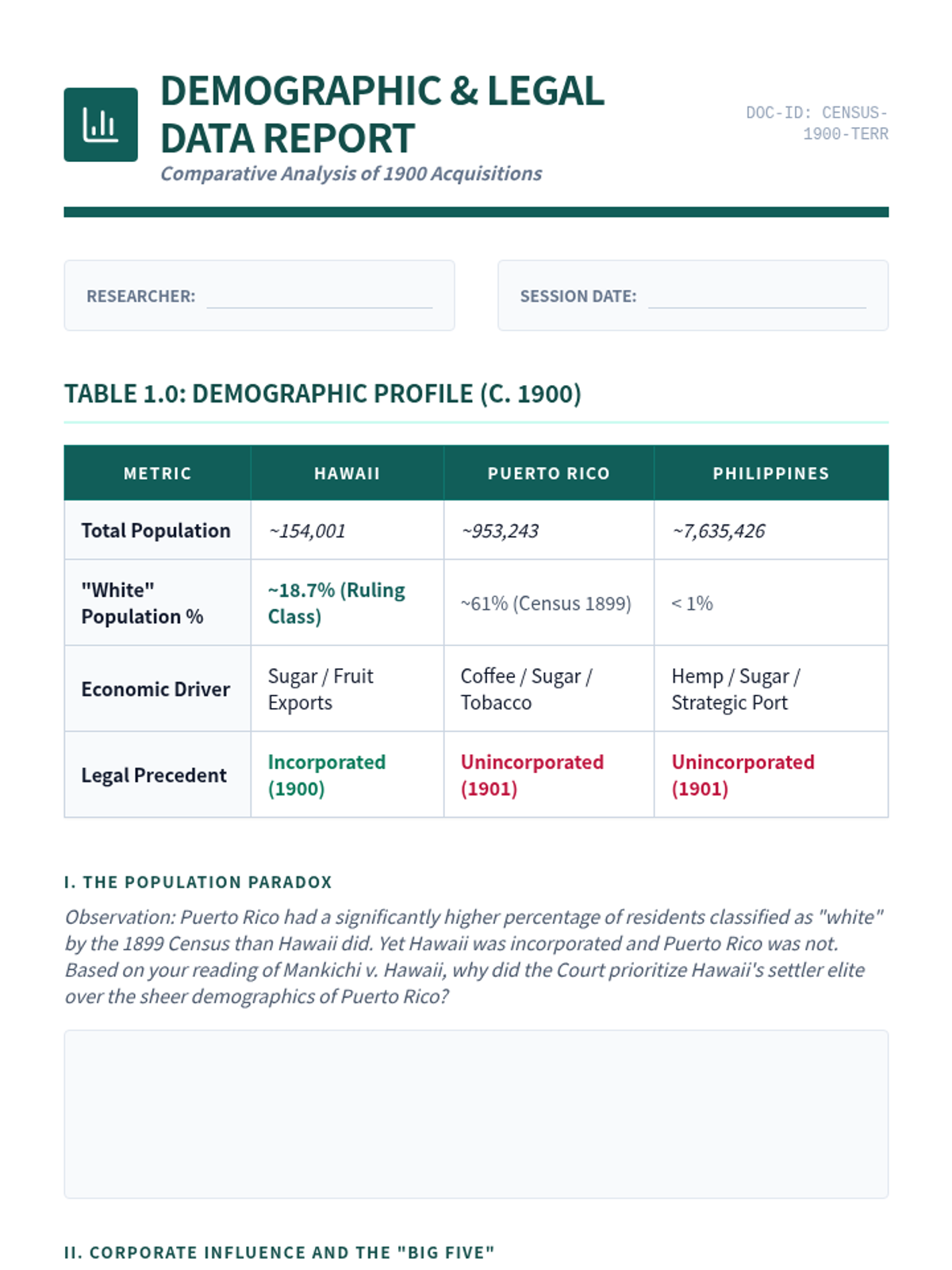 A graduate-level exploration of the legal and constitutional frameworks established by the Insular Cases, focusing on the construction of the 'unincorporated territory' and the status of citizenship under US imperialism.