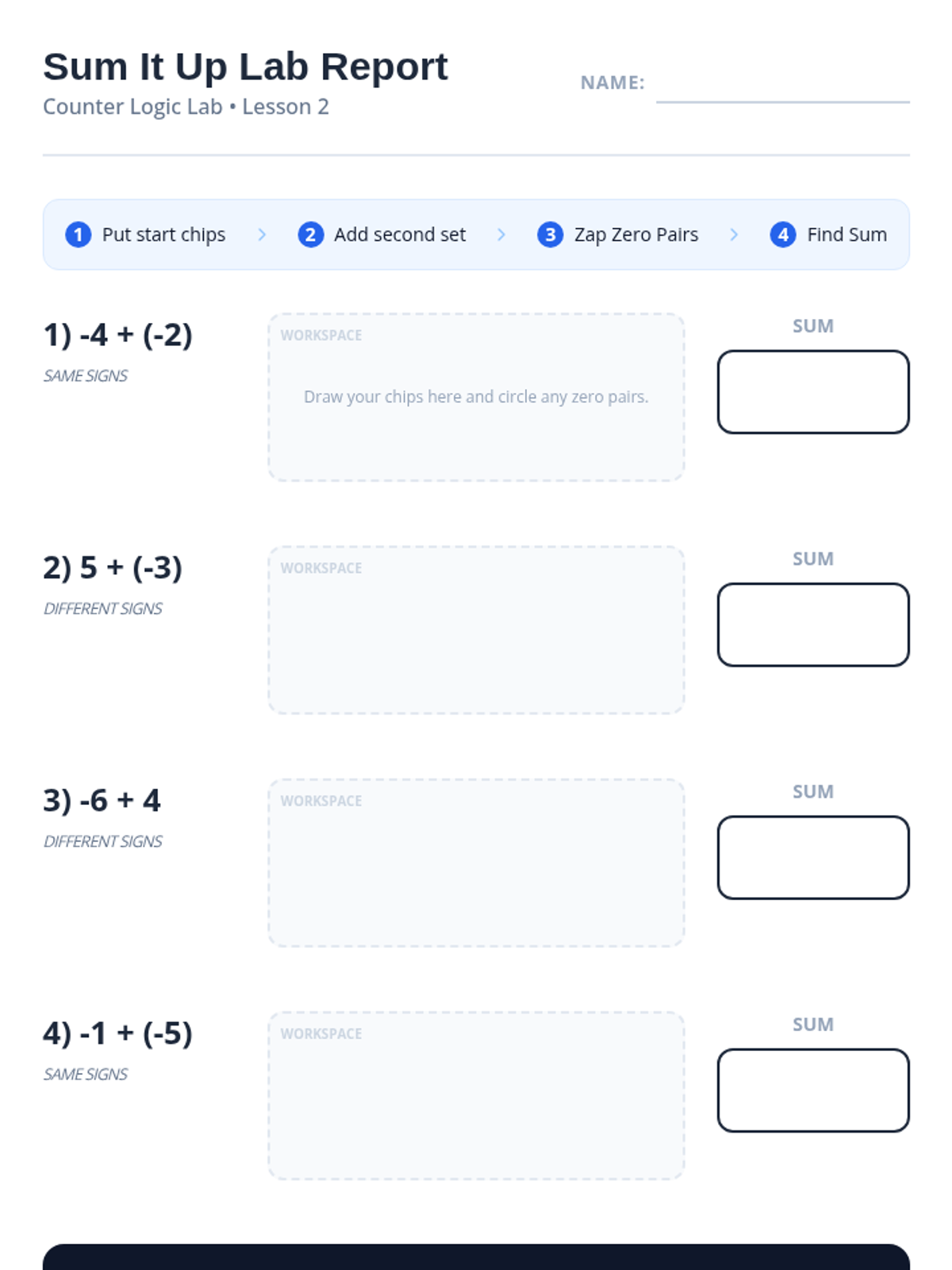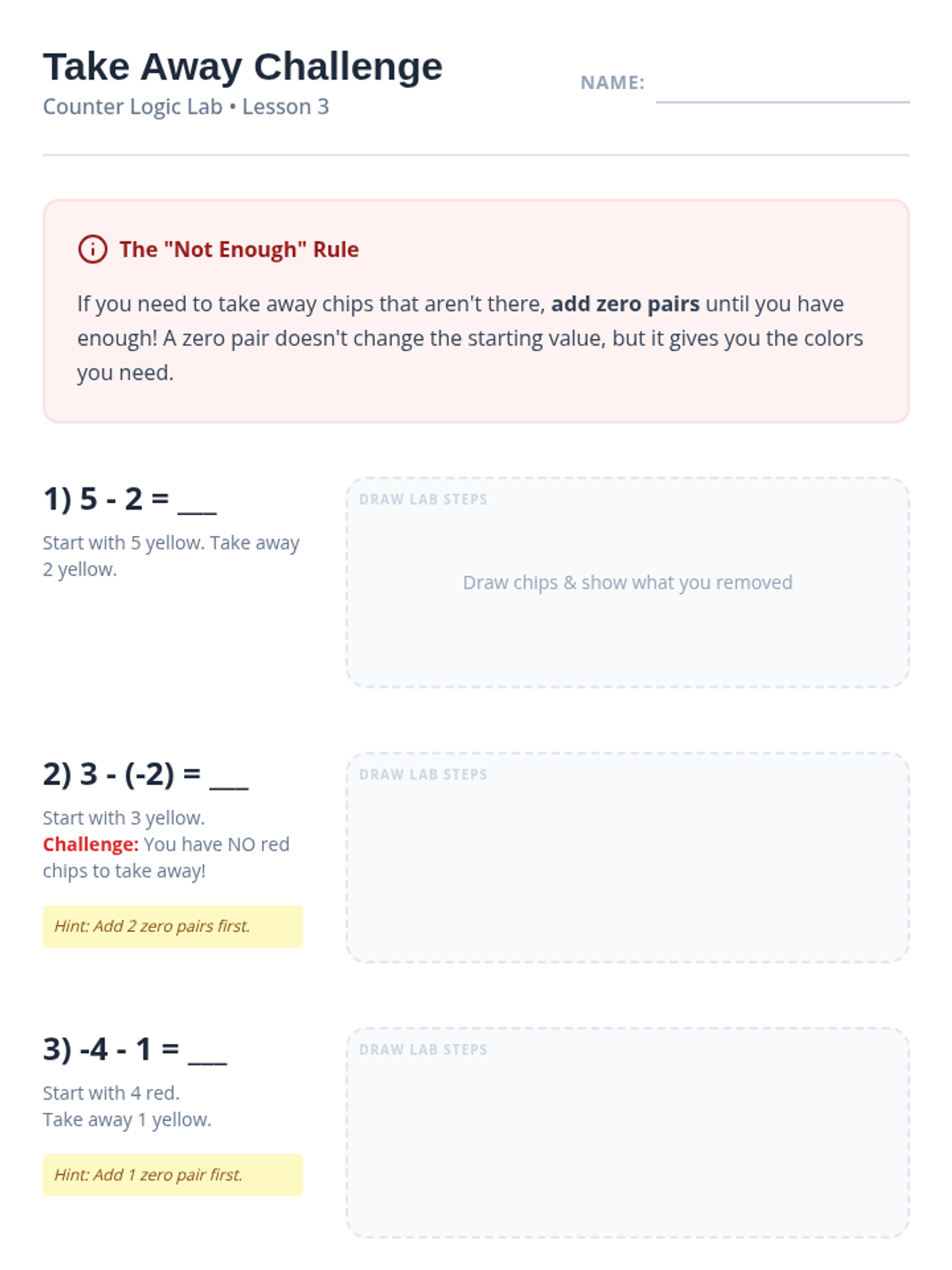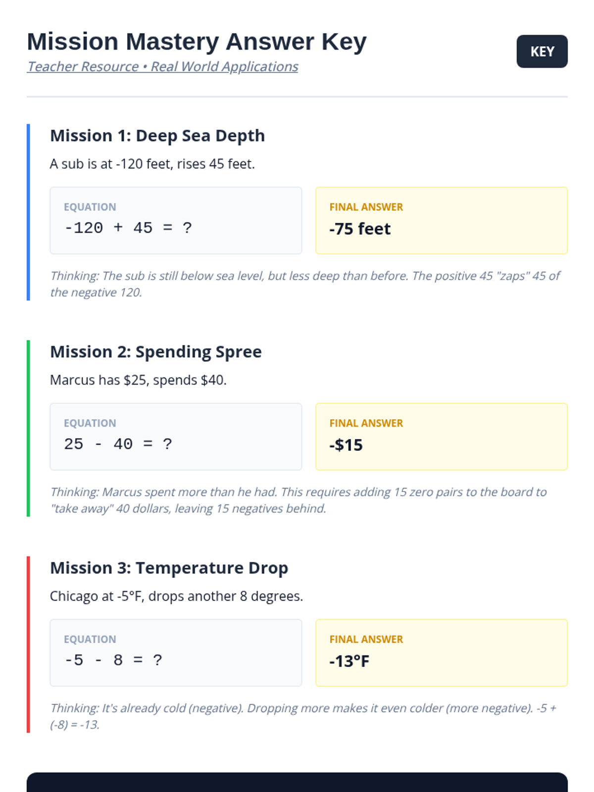 A comprehensive sequence for 7th-grade students, particularly those requiring academic support, to master integer operations using two-color counters. The sequence moves from concrete manipulation (counters) to representational (drawings) and finally to abstract rules and real-world application.