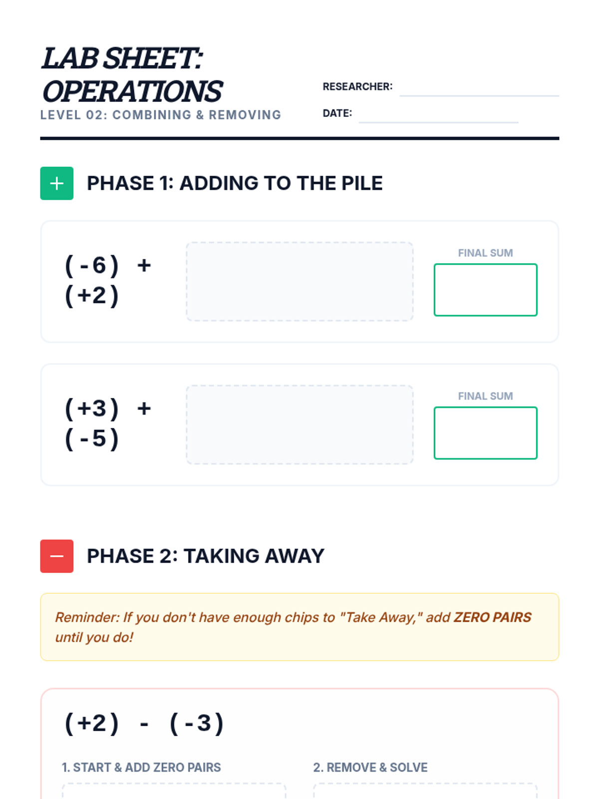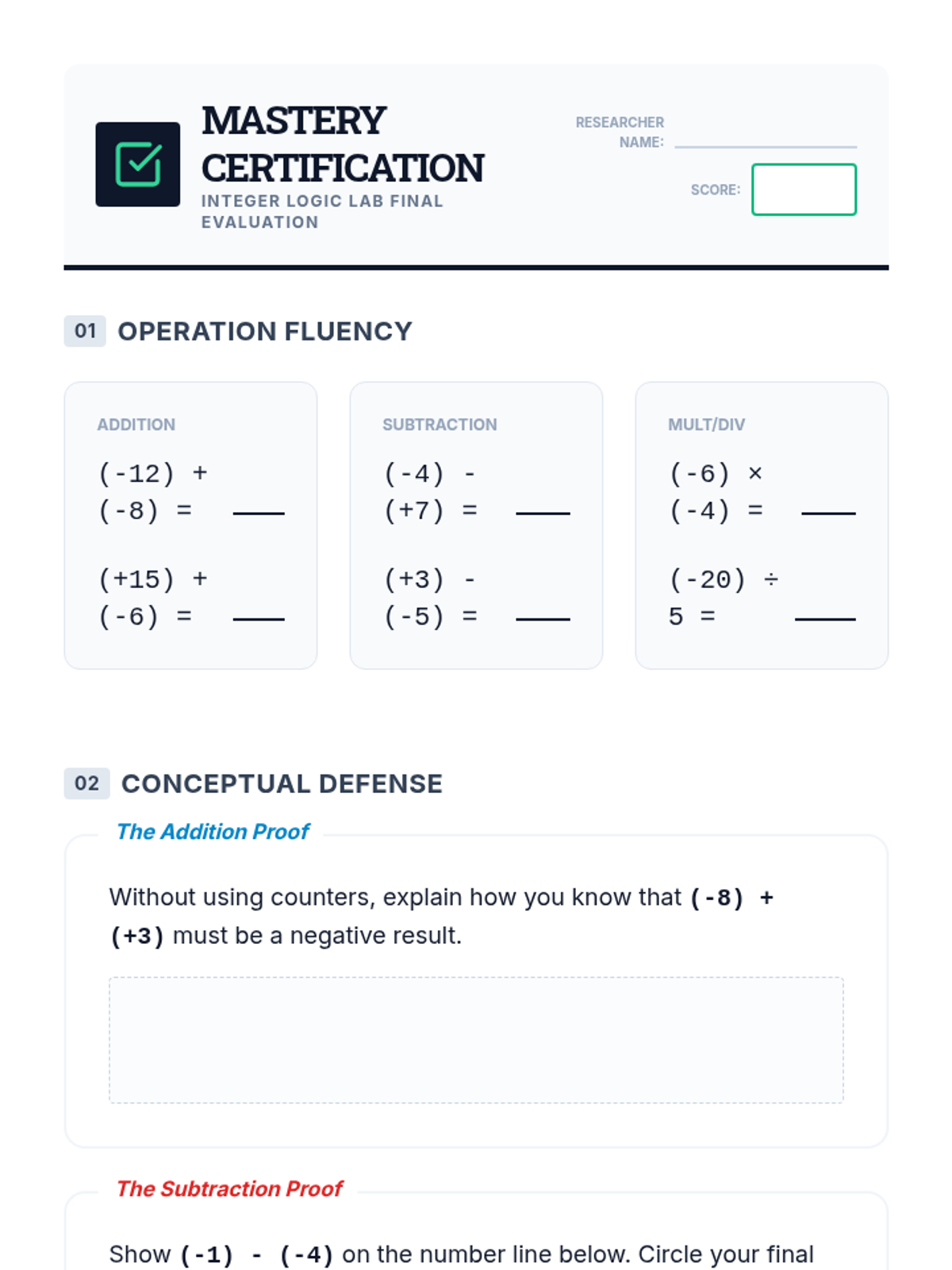 A comprehensive sequence designed to remediate integer operation deficits for 9th-grade students using concrete manipulatives, representational models, and abstract rule derivation. Students move from physical two-color counters to number line vectors, ultimately mastering integer fluency through conceptual understanding.