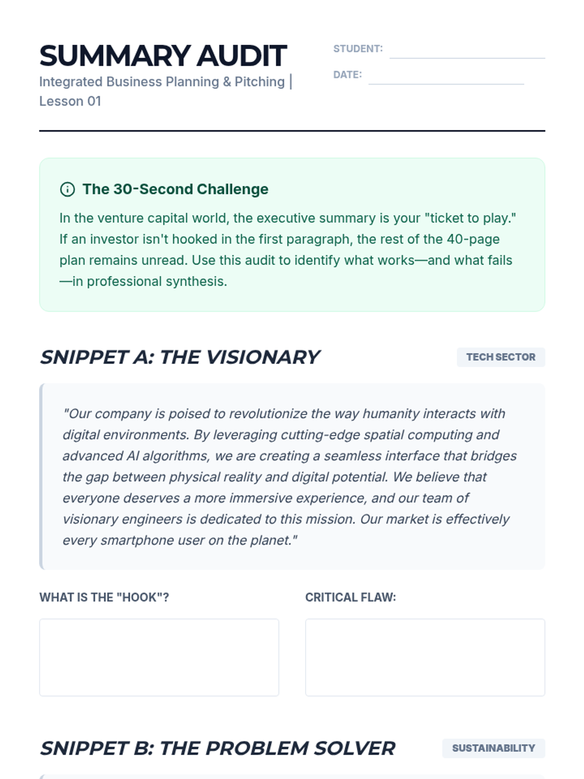 A comprehensive sequence for graduate students to synthesize technical business data into compelling narratives and persuasive pitches for investors.