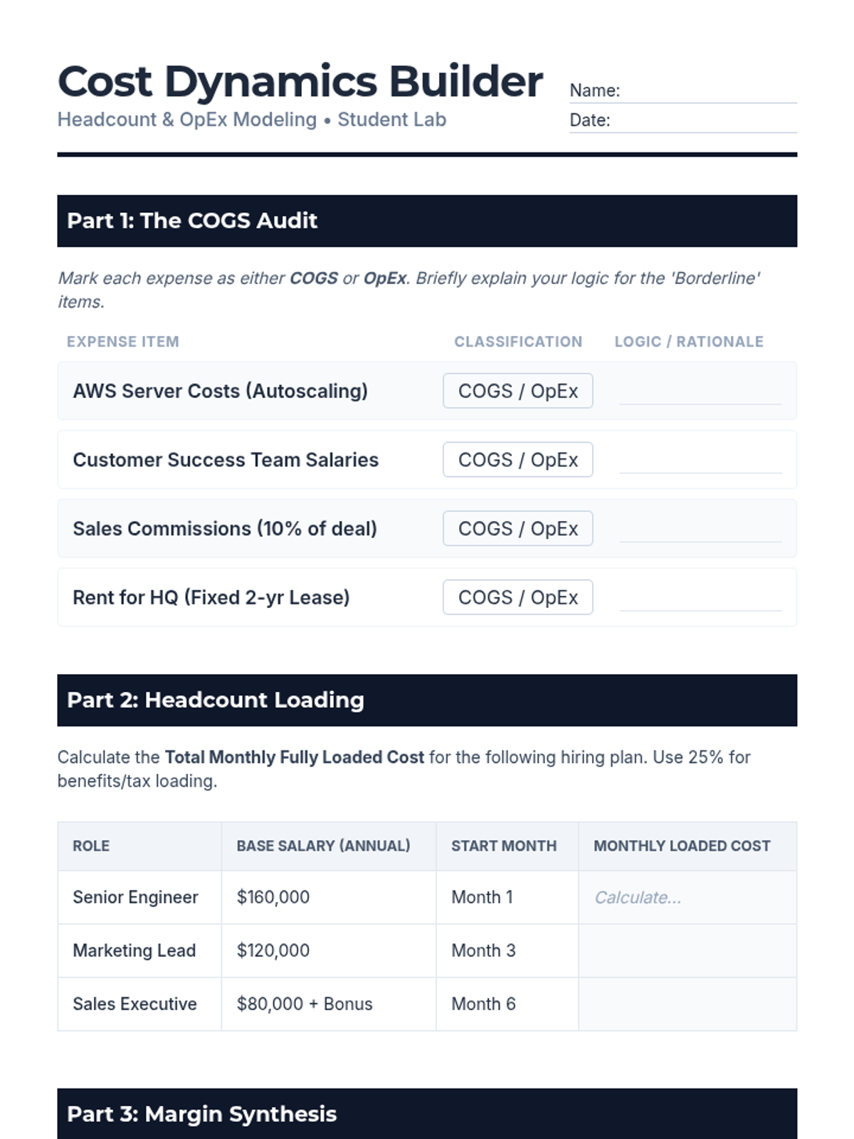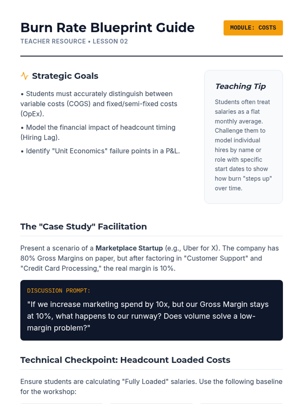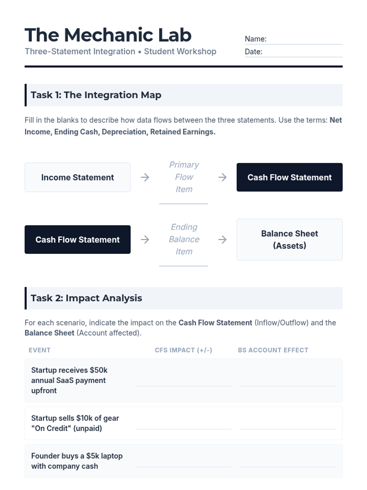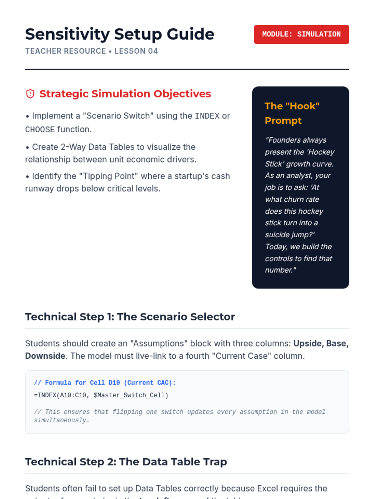 A comprehensive technical sequence for graduate students to master the construction of integrated three-statement financial models for startups, moving from assumption-building to investor-ready dashboards.