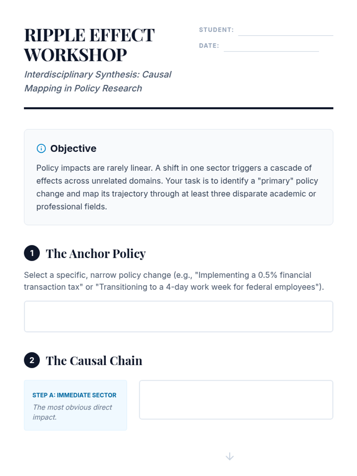 A graduate-level exploration of interdisciplinary research for policy debate, focusing on systems thinking, economic modeling, geopolitical forecasting, and ethical synthesis.