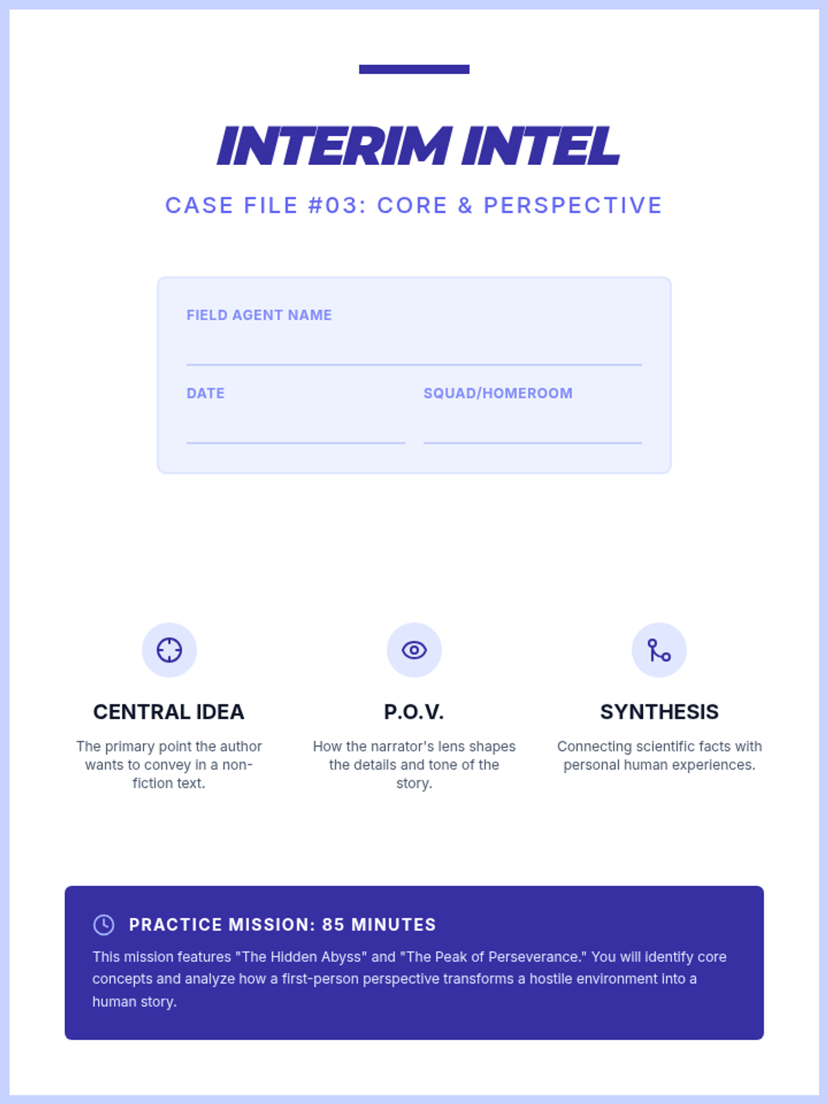 A comprehensive 4-part review series designed to prepare 8th-grade students for the NY ELA Interim Assessment. Each session focuses on specific high-leverage standards and text analysis skills using authentic assessment passages.