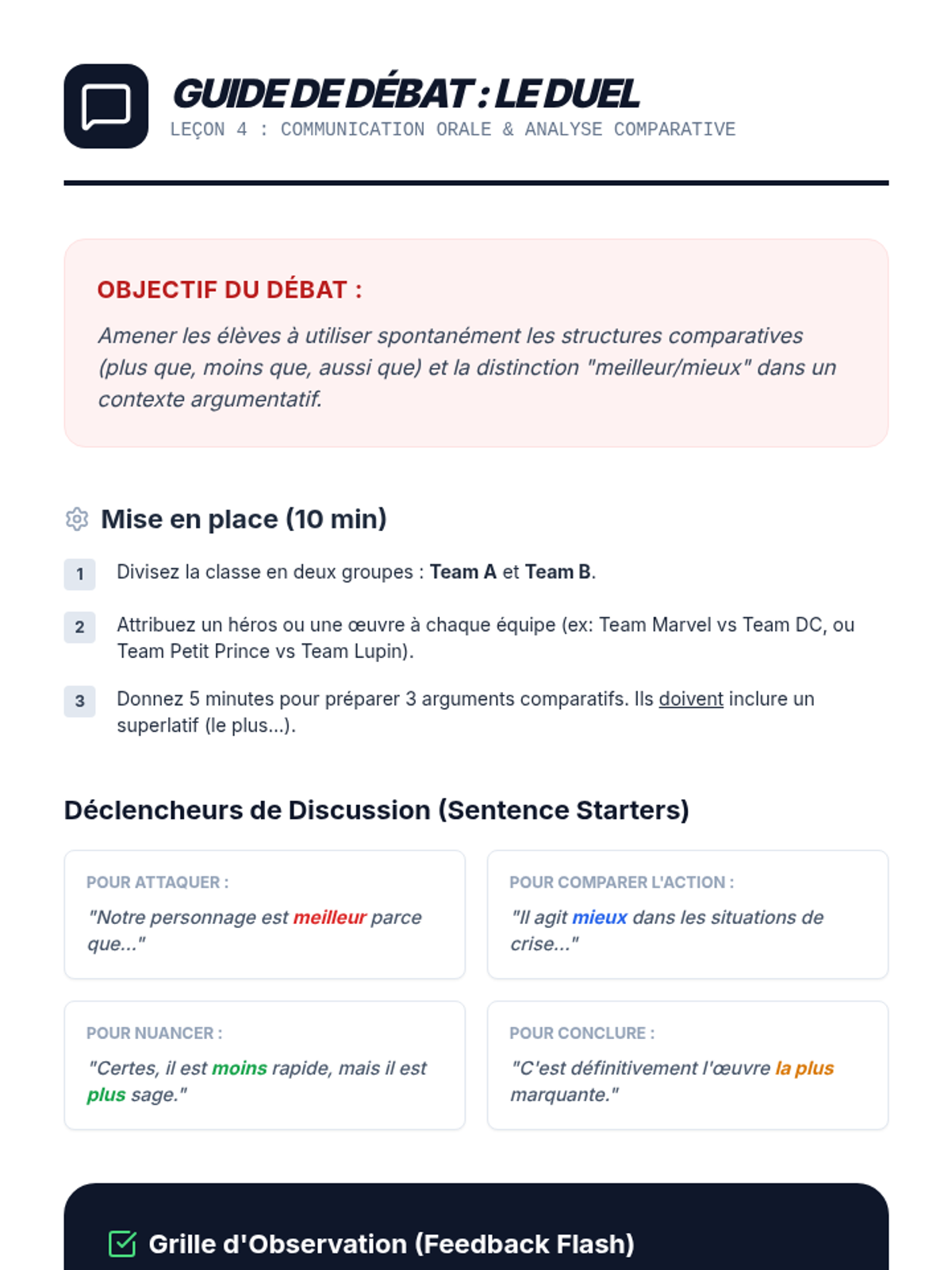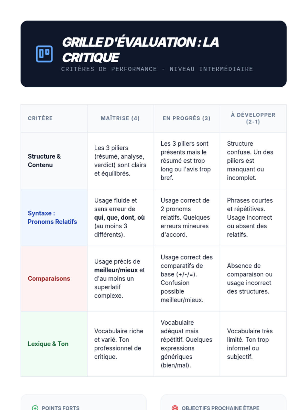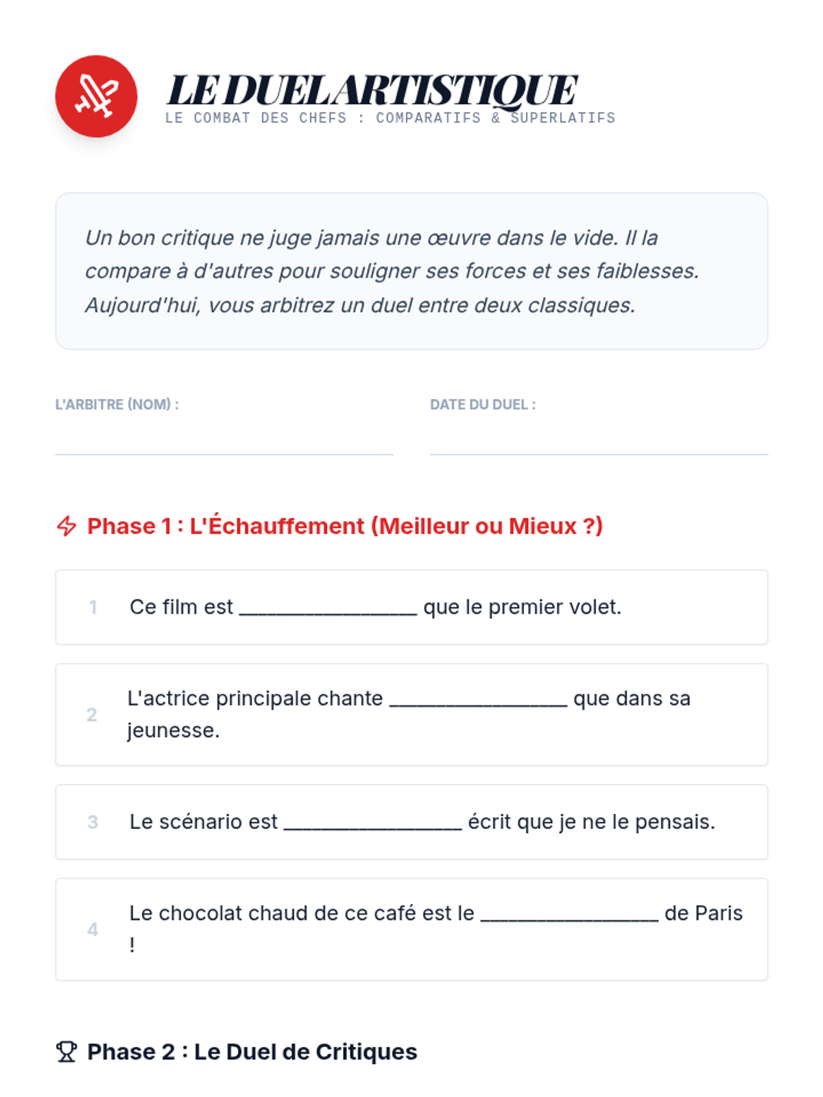 This sequence refines intermediate French students' ability to write sophisticated reviews of cultural products. By mastering relative pronouns (qui, que, dont, où) and comparative structures, students move beyond simple sentence patterns to create mature, professional-style critiques for a school blog or magazine.
