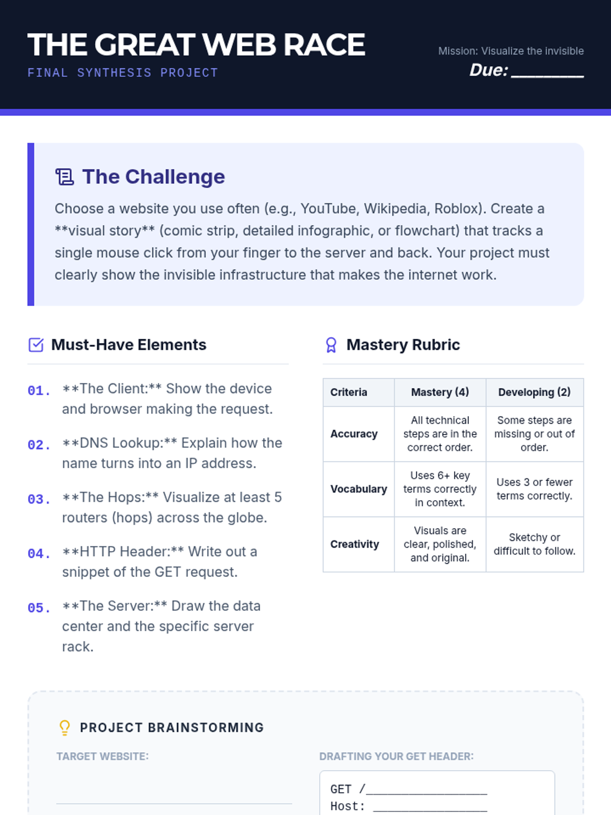 This sequence explores the technical relationship between users and the web through the Client-Server model, HTTP protocols, physical infrastructure, and the journey of a web request.