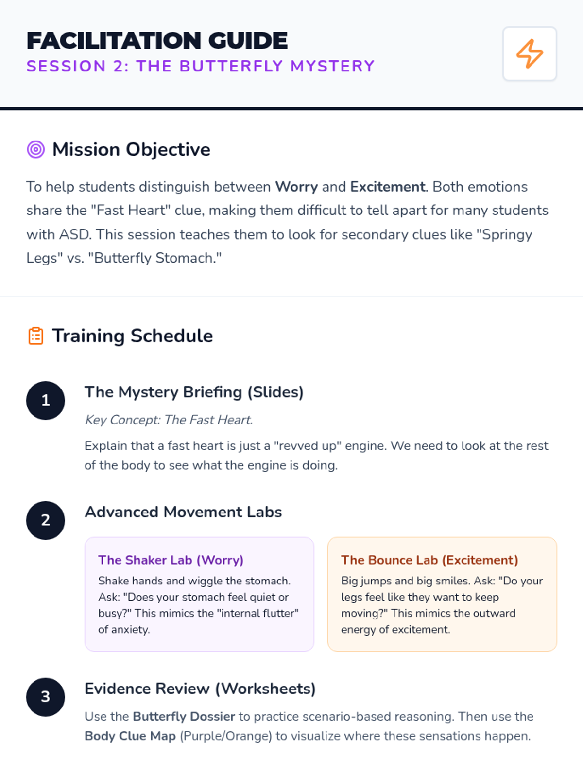 A comprehensive detective-themed curriculum designed to help students with ASD develop interoceptive awareness. Students learn to identify physical clues for a wide range of emotions through movement, visual mapping, and scenario-based problem solving.