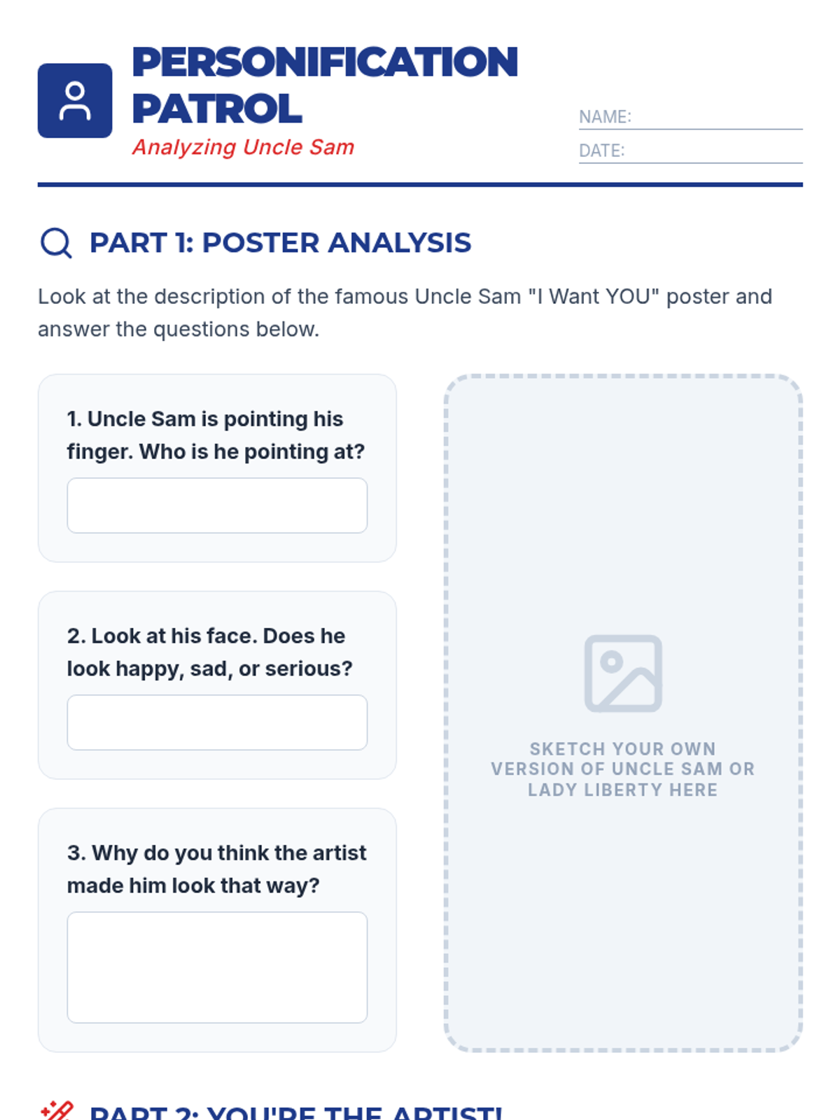 A 13-day journey through modern American history, from the Industrial Revolution to the present day, focusing on key historical figures and major conflicts as outlined in the 5th Grade TEKS. Each lesson is designed for a quick 30-minute block, integrating multimedia and primary source analysis.
