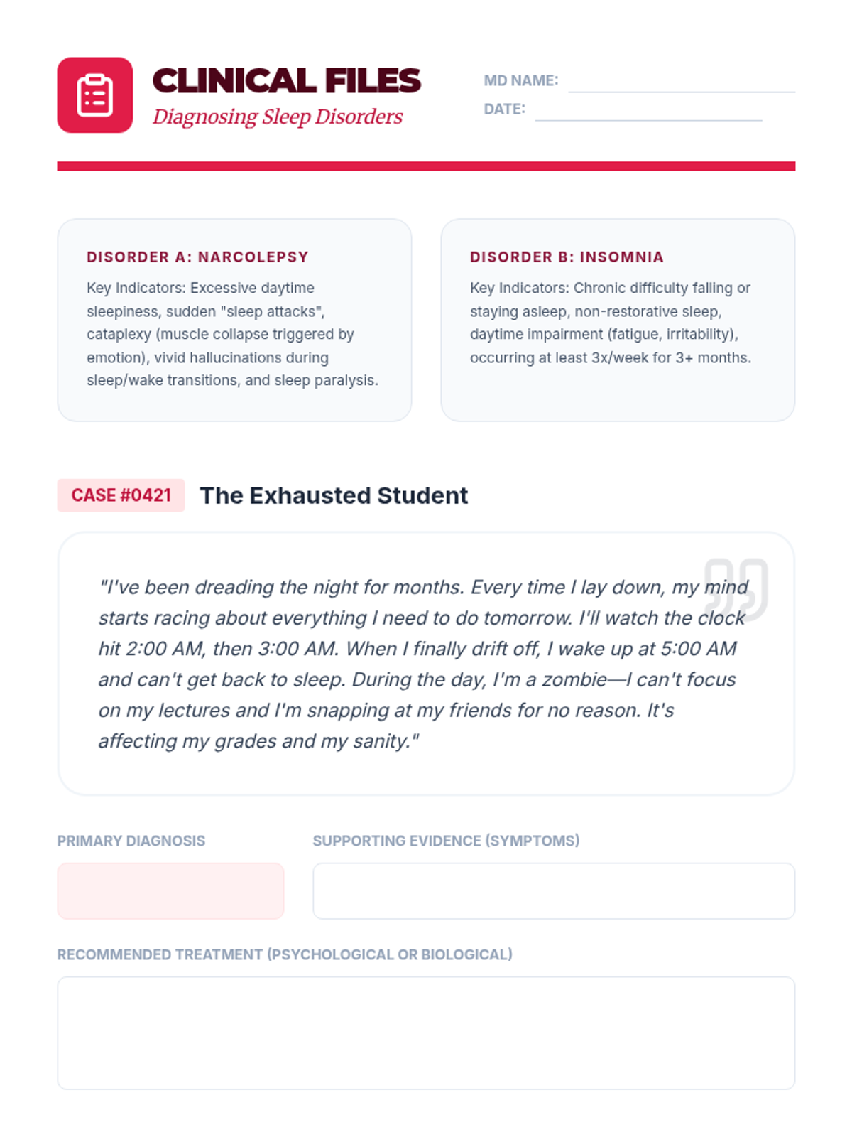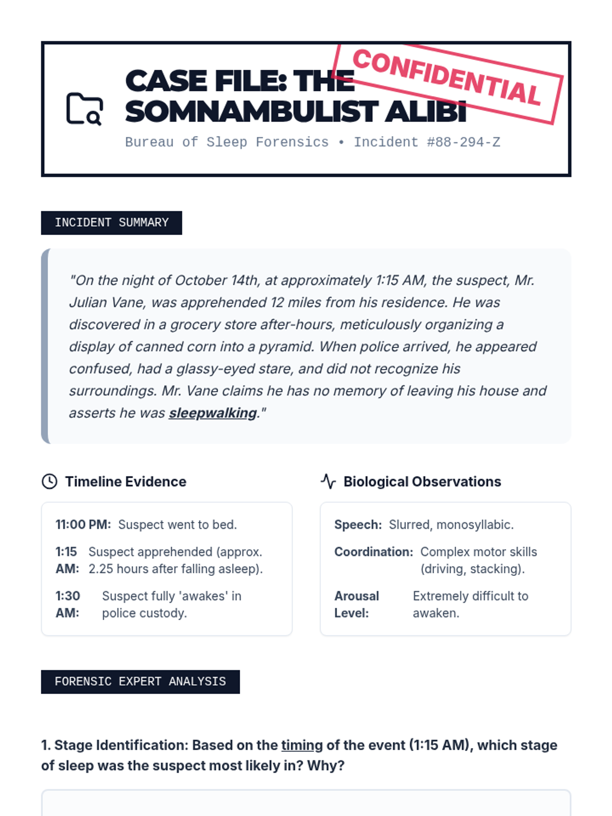 A high school psychology unit exploring the subjective experience of dreams and the biological malfunctions of sleep. Students move from psychoanalytic interpretations to neurobiological theories, ending with the diagnosis of sleep disorders and the creation of evidence-based sleep hygiene plans.