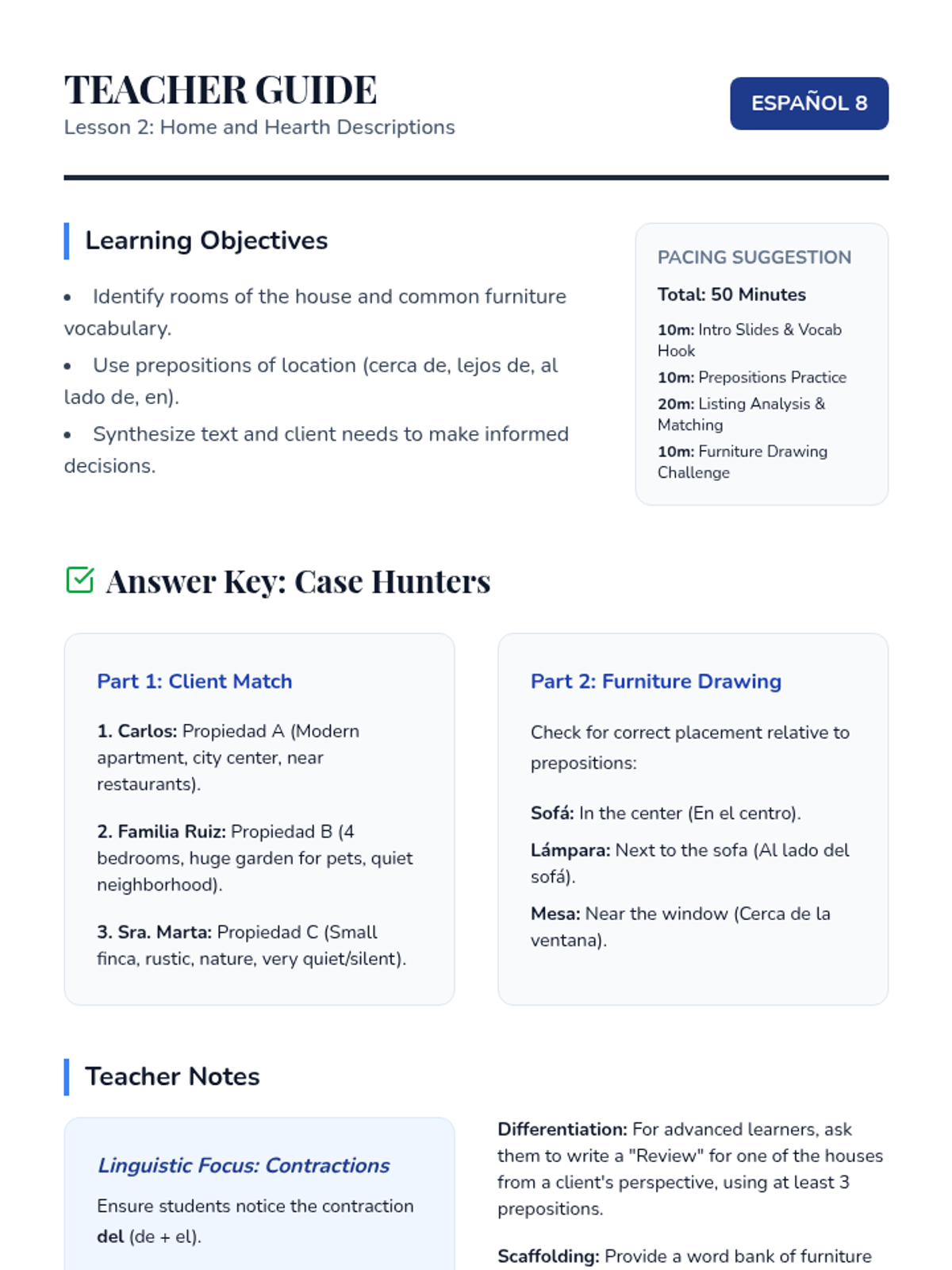 A comprehensive 8th-grade Spanish unit focusing on reading comprehension through the lens of family, home life, and cultural traditions. Students engage in inquiry-based tasks to reconstruct family dynamics and narratives.