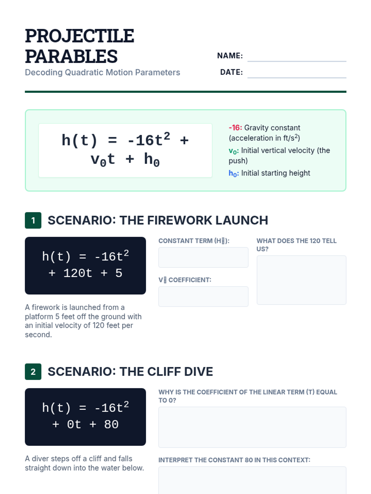 A comprehensive Algebra II unit on quadratic functions, covering parent functions, graphing, key features (vertex, intercepts, AOS), and solving via factoring and the quadratic formula, with a focus on real rational roots.