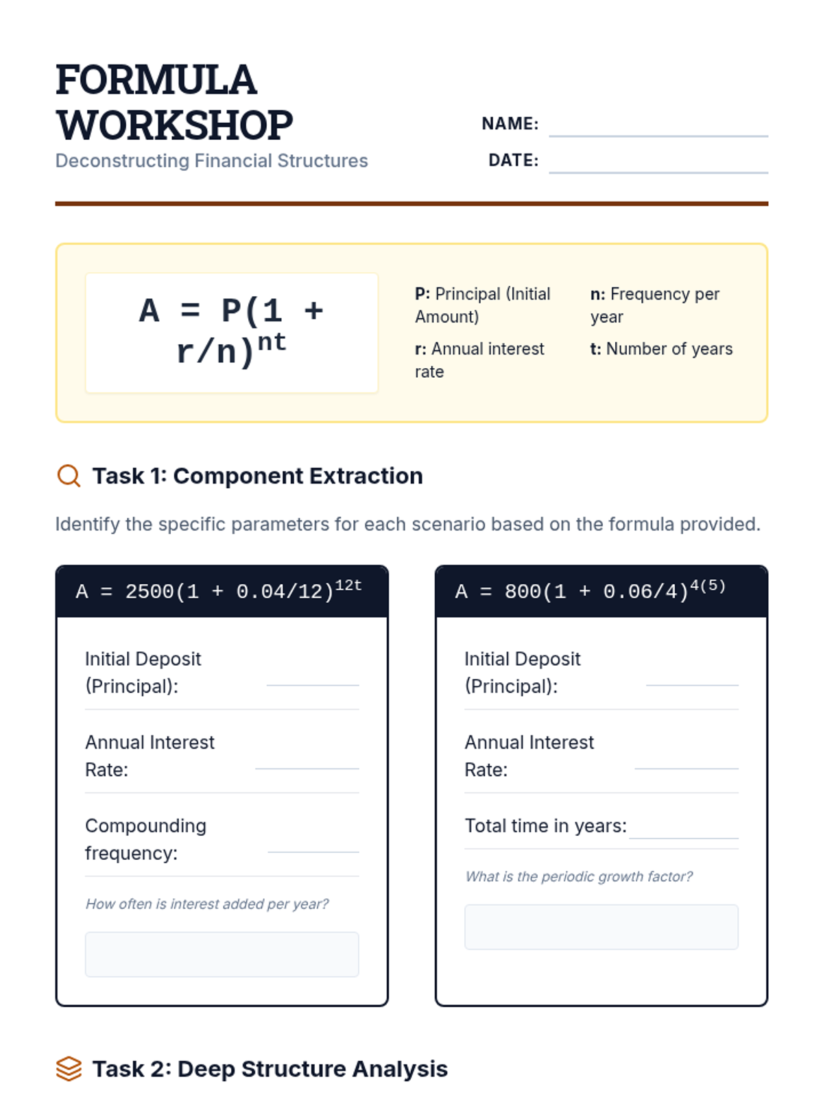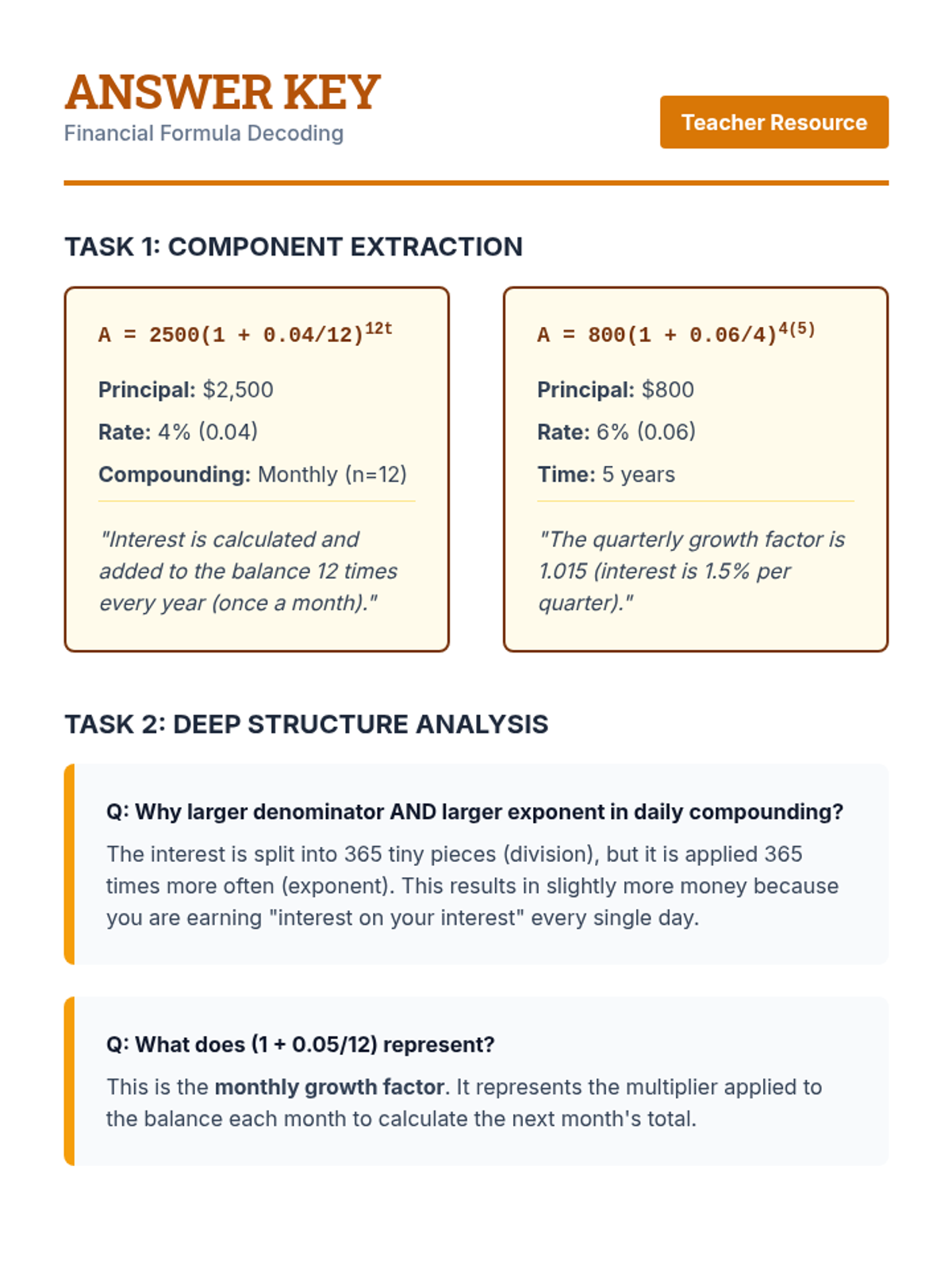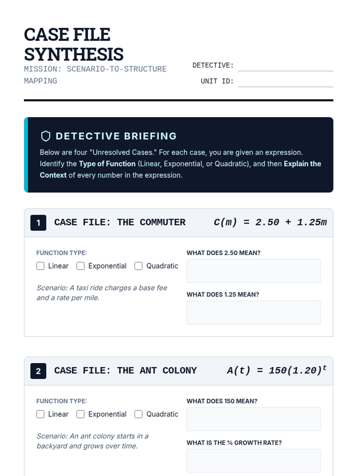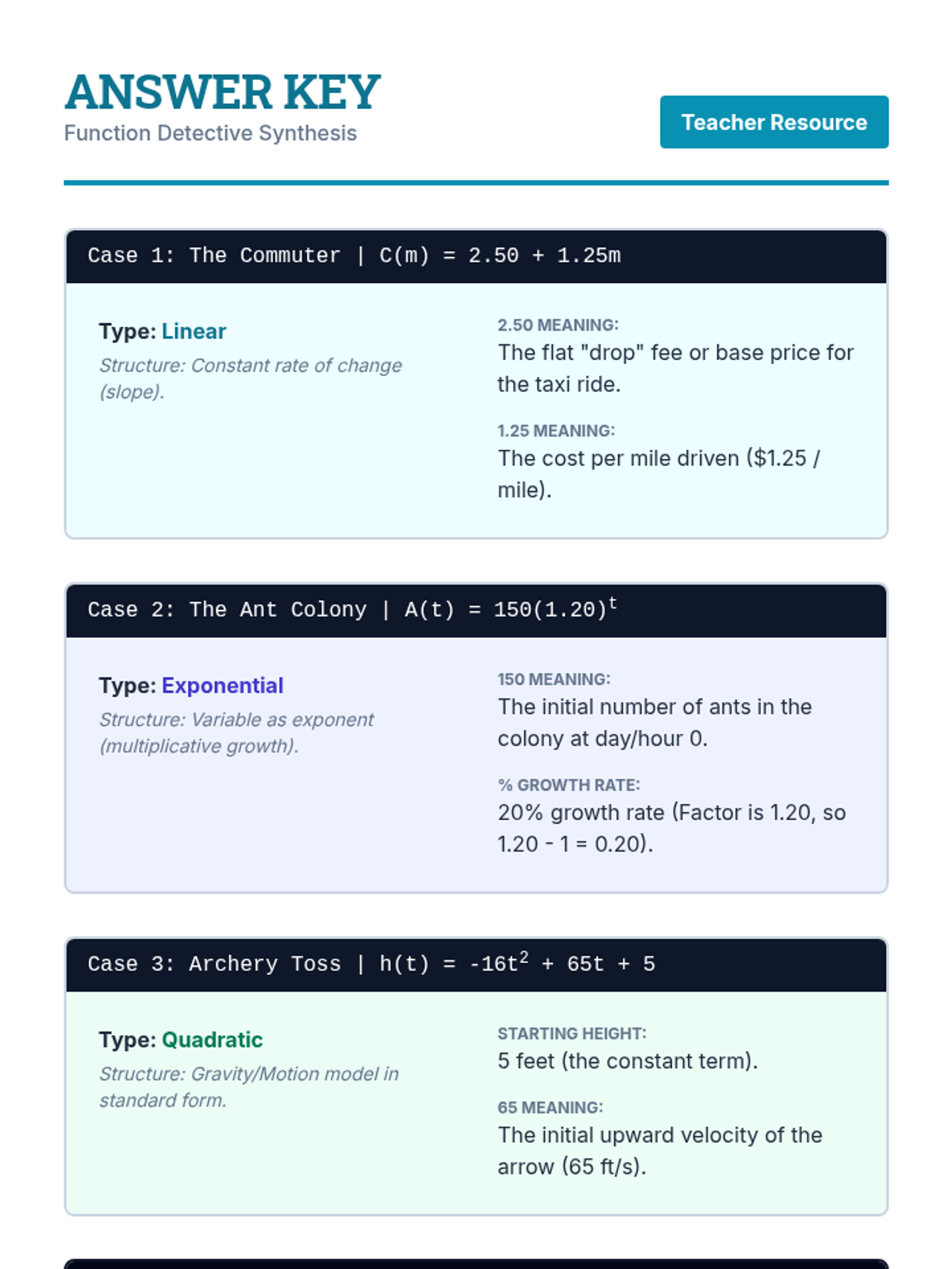 A comprehensive 5-lesson unit for 10th-grade math focused on interpreting the structure and components of linear, exponential, quadratic, and financial function expressions in real-world contexts.