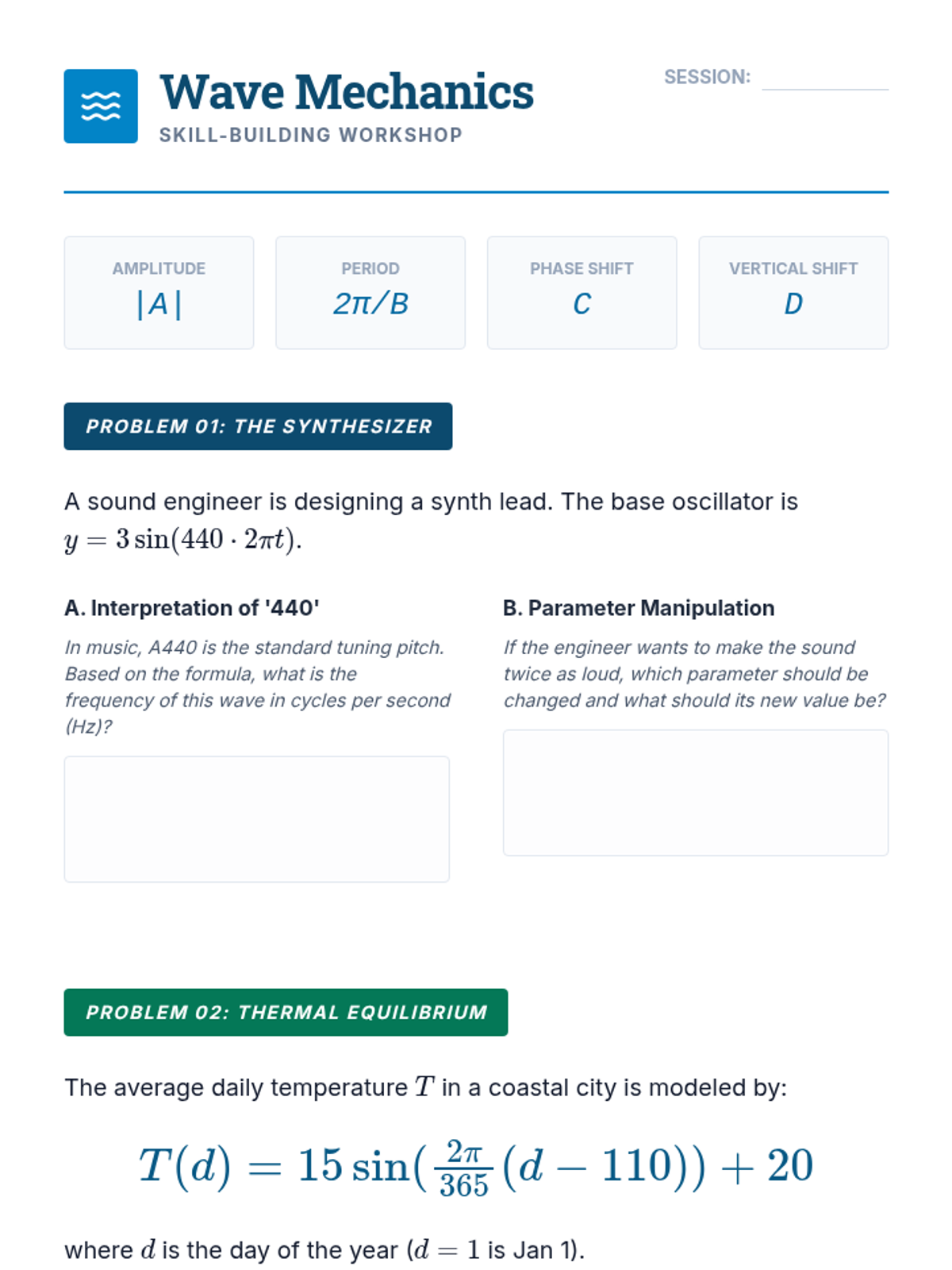 Trigonometry and Wave Functions unit exploring sine and cosine transformations.