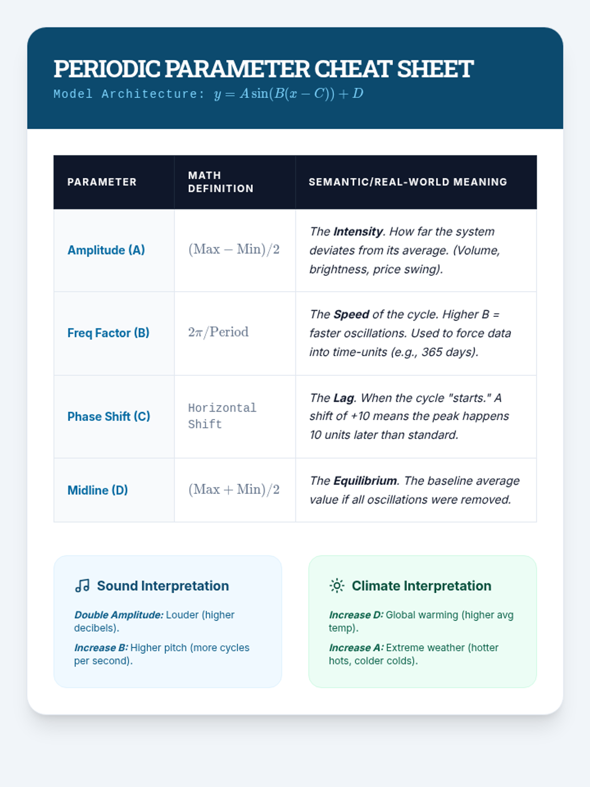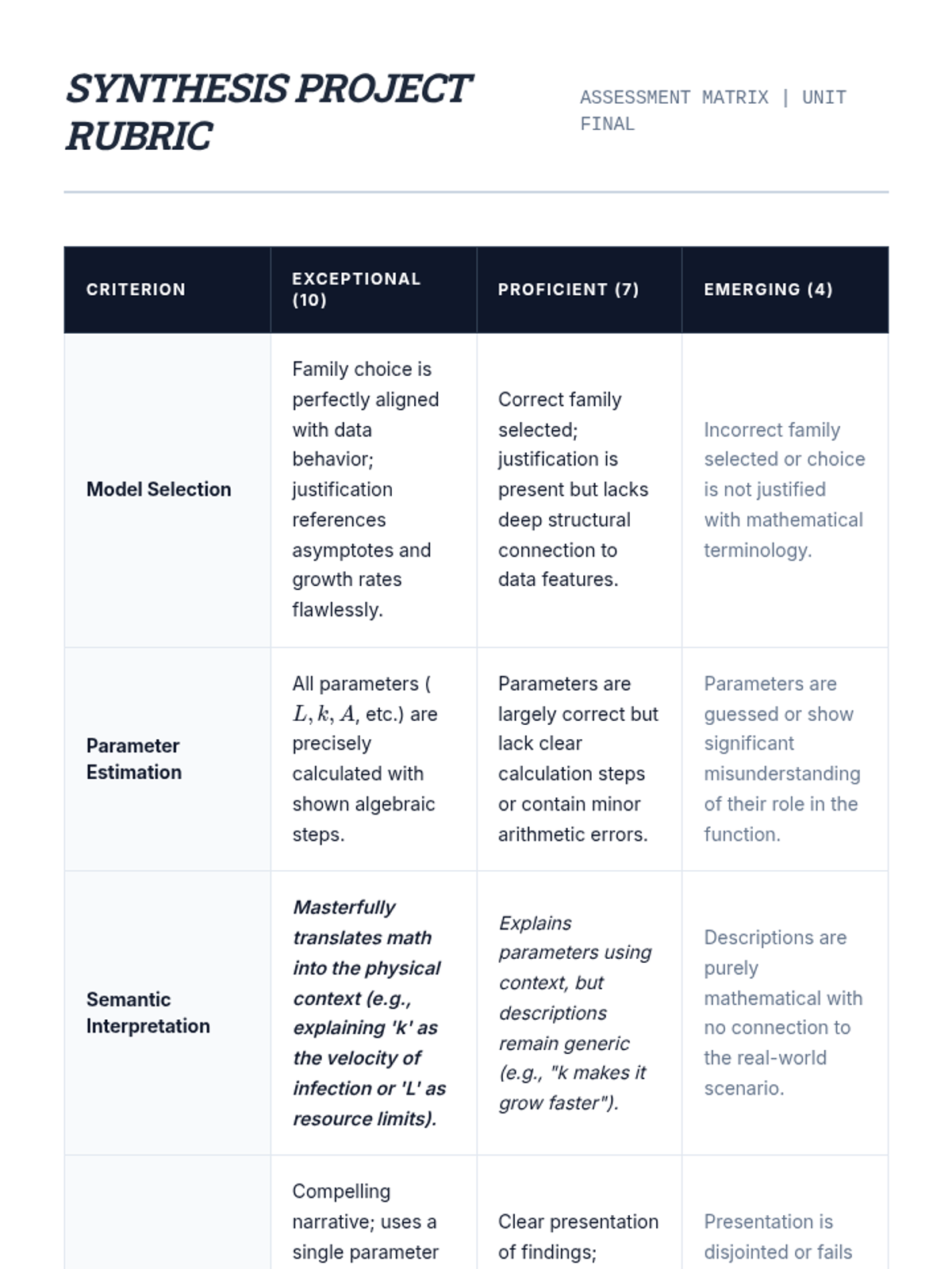 A comprehensive sequence for undergraduate students focusing on the semantic interpretation of parameters in mathematical models, spanning linear, quadratic, exponential, logistic, and periodic functions.