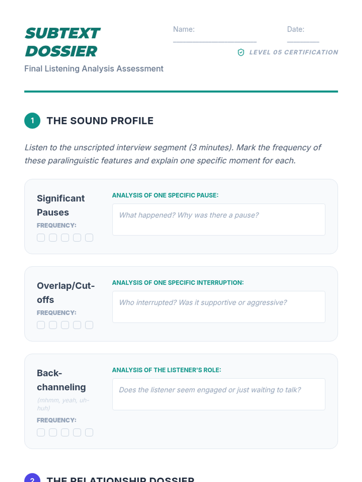 An intermediate ESL sequence focused on mastering the complexities of natural spoken English. Students explore connected speech, reductions, idioms, and prosodic features to decode meaning beyond literal definitions in authentic media contexts like podcasts and interviews.