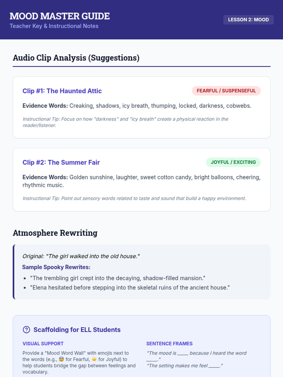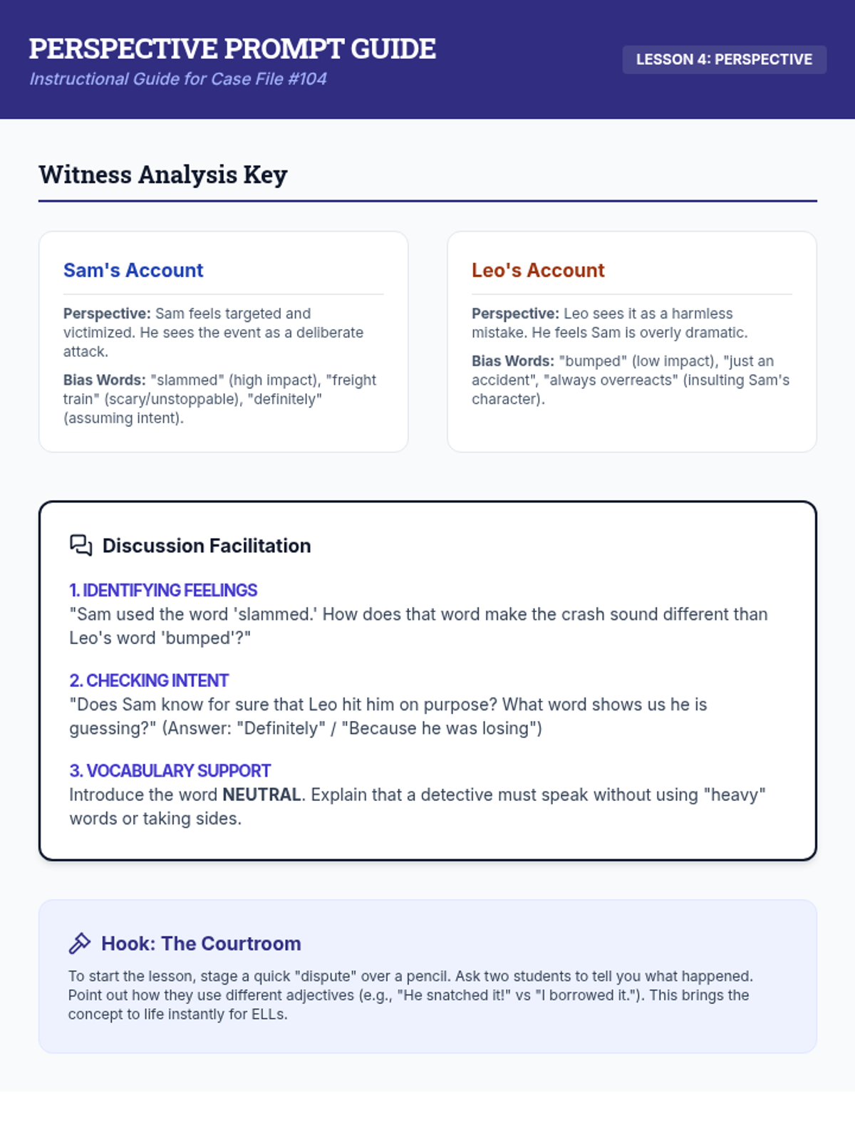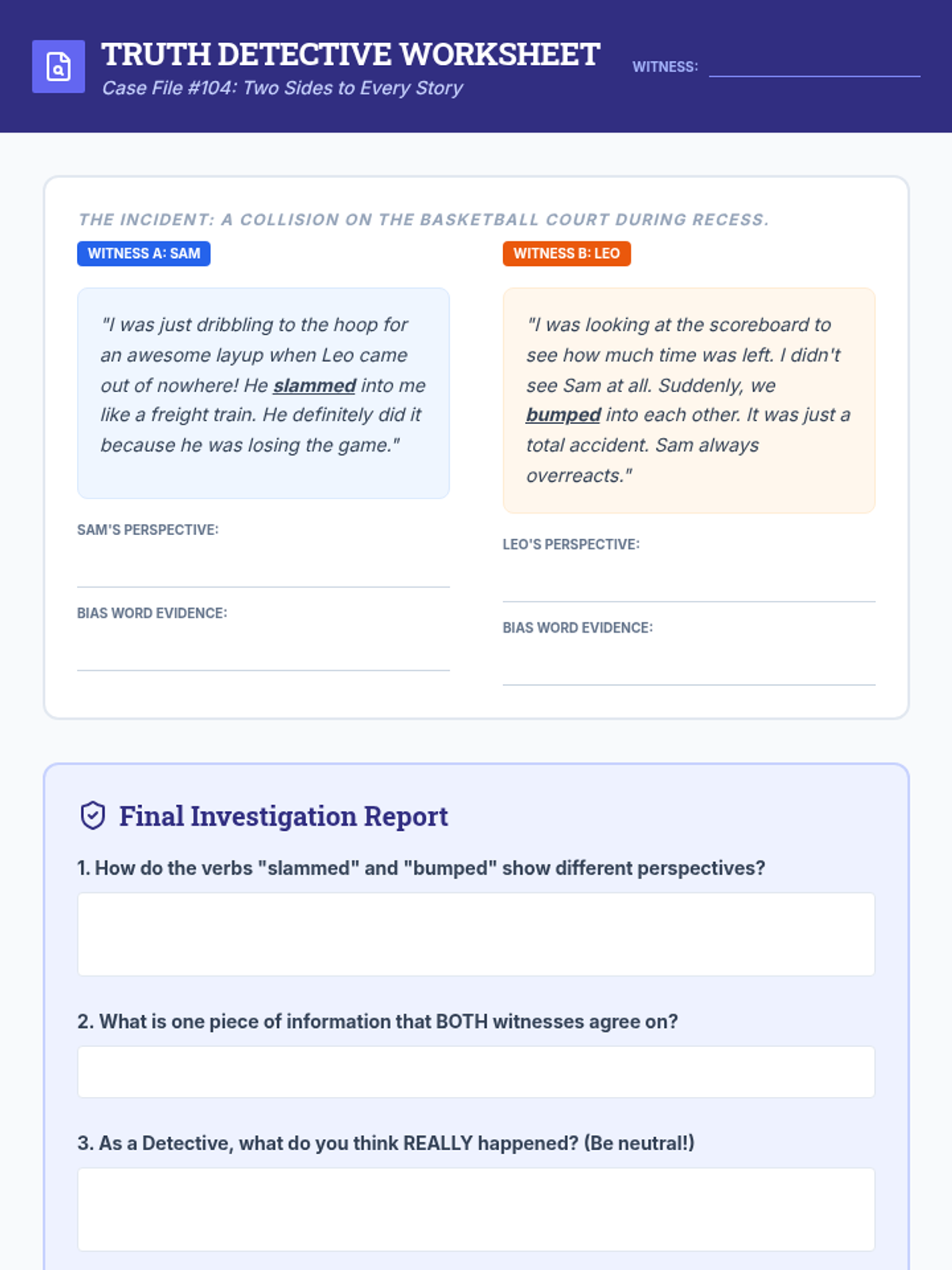 A 4th-grade sequence focused on interpreting tone, mood, and perspective through the lens of a detective agency. Students learn to analyze word choice, identify literary atmosphere, determine author's purpose, and recognize bias across various texts.